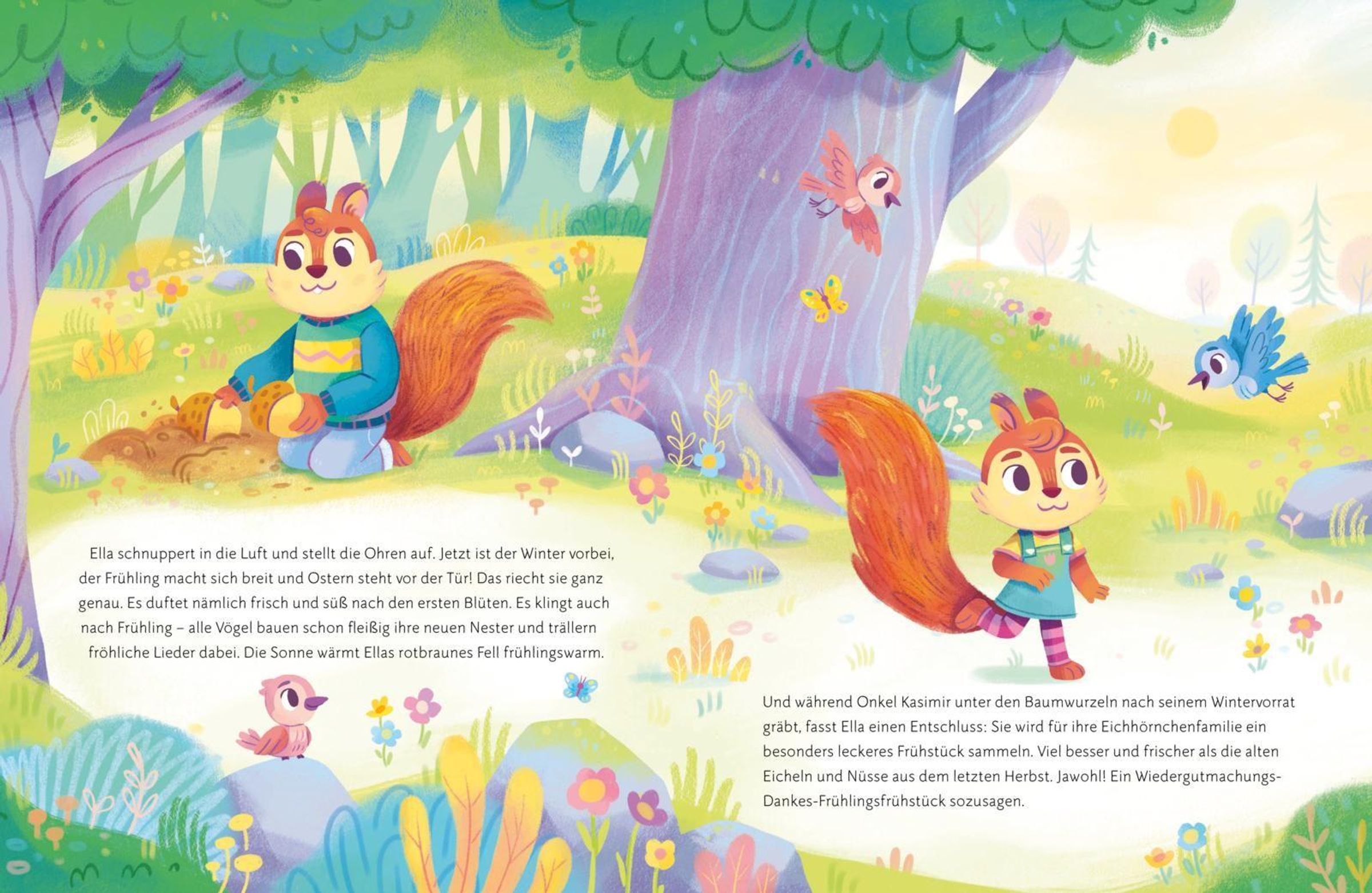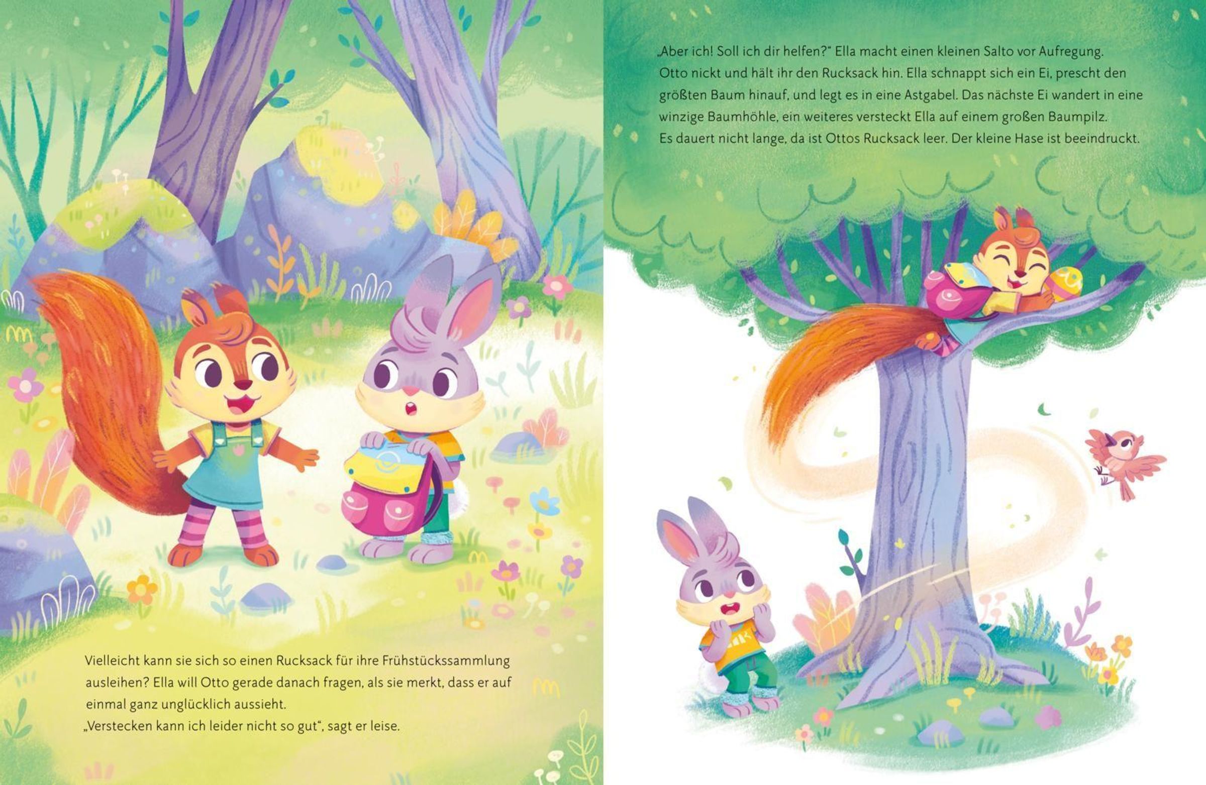 Ella Eichhörnchen ist die beste Versteckfinderin im ganzen Wald. Nur leider vergisst sie immer, wo ihre Nüsse am Ende gelandet sind! Und genau das passiert auch, als sie im Frühling ein Frühstück für ihre Familie sammeln will. Zwischen all den Bäumen verliert sie völlig die Orientierung - und den Weg nach Hause. Zum Glück trifft sie den kleinen Hasen Otto, einen Osterhasenschüler, der sich im Wald richtig gut auskennt. Gemeinsam entdecken die beiden, dass Ellas Kletterkünste perfekt fürs Eierverstecken sind. So wird aus dem vergesslichen Eichhörnchen das allererste EiHörnchen!