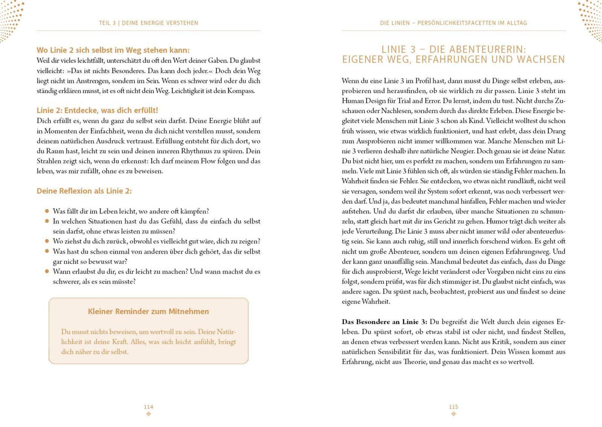 Statt starrer Regeln und vorgefertigter Antworten lädt Miriam Reißig dazu ein, Human Design ganz individuell zu entdecken. Mit ihrem lebensnahen, undogmatischen Stil wird dieses Buch zum idealen Einstieg für alle, die Human Design von Grund auf verstehen und direkt im Alltag anwenden möchten. Eine inspirierende Einladung, die eigene Energie neu zu erleben - Tag für Tag, mitten im echten Leben.
