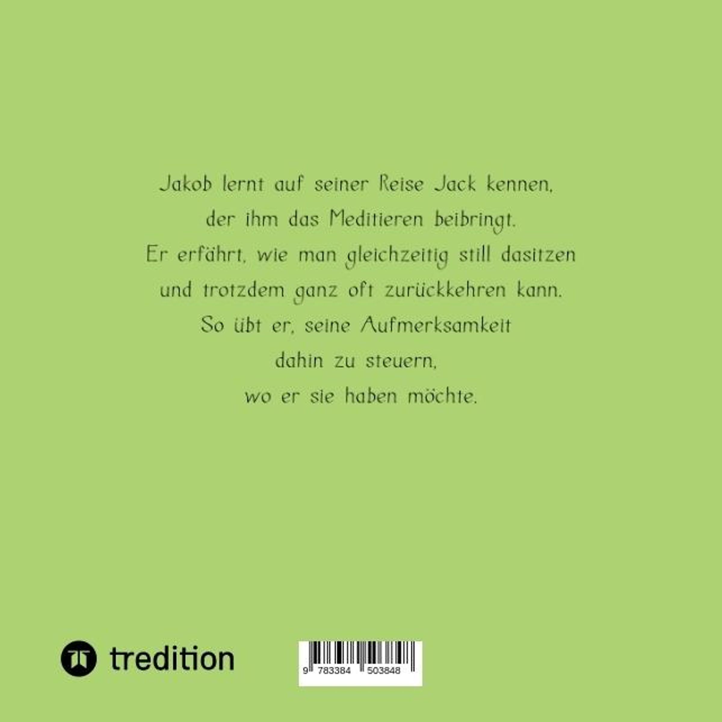 Jakob Schildkröt lernt zu meditieren. Er übt, bei der Meditation seine Aufmerksamkeit zu konzentrieren. Obwohl er stillsitzt muss er trotzdem ganz oft zur Konzentration zurückkehren.