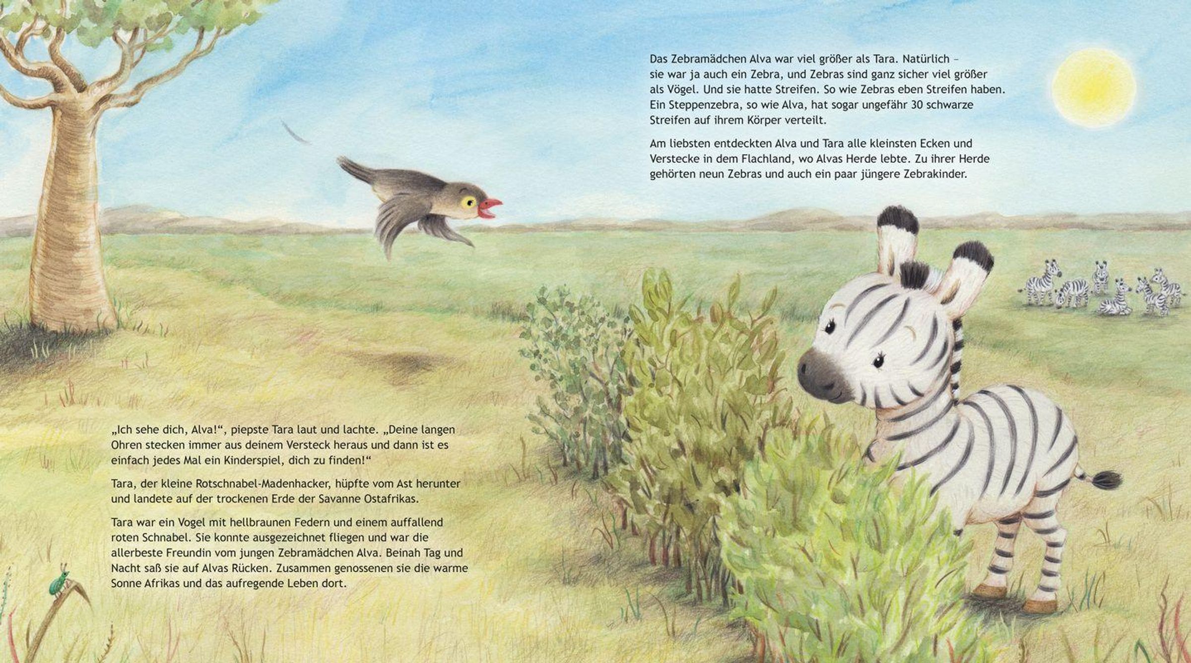 Alva, das kleine Zebramädchen, weiß genau, was sie antworten soll, wenn Mama fragt: "Wann habe ich dich lieb?" - "Iiiimmer!" Doch zwischen all den Zebras in der Herde zweifelt Alva daran, wirklich etwas Besonderes zu sein, und versucht, ihre Mutter stolz zu machen. Nach einem Streit läuft Alva davon und ist ganz unsicher: Hat Mama sie jetzt nicht mehr lieb? Als Alvas Mutter sie endlich findet, entdeckt das kleine Zebra eine wunderbare Wahrheit: Liebe muss man sich nicht verdienen. Sie bleibt - genau wie Gottes Liebe zu uns. Eine einfühlsame Geschichte über bedingungslose Liebe.