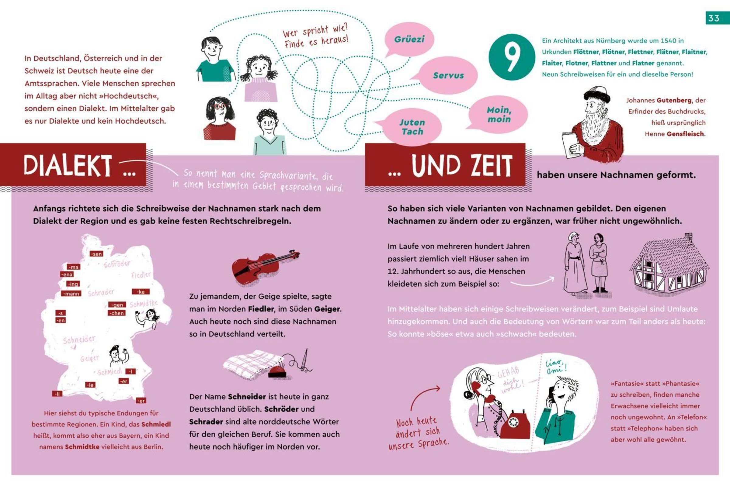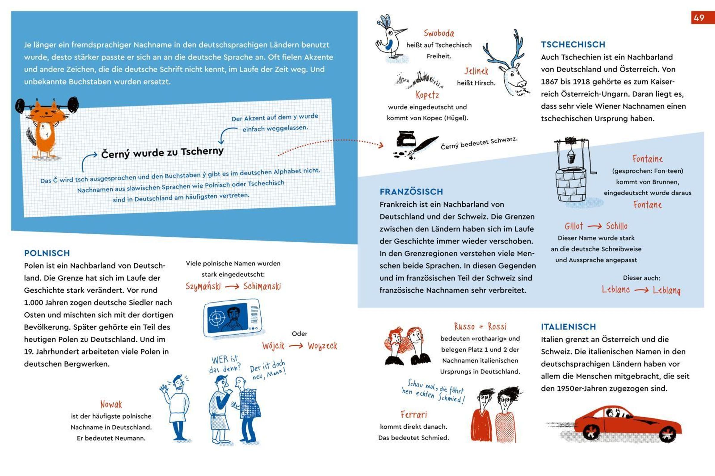 Erfahre, warum wir alle einen Nachnamen haben, welche Namen Menschen im Mittelalter trugen, warum es in Bayern andere Namen gibt als in Hamburg, welches die lustigsten, längsten und häufigsten Namen sind. Das alles steht in diesem Buch!