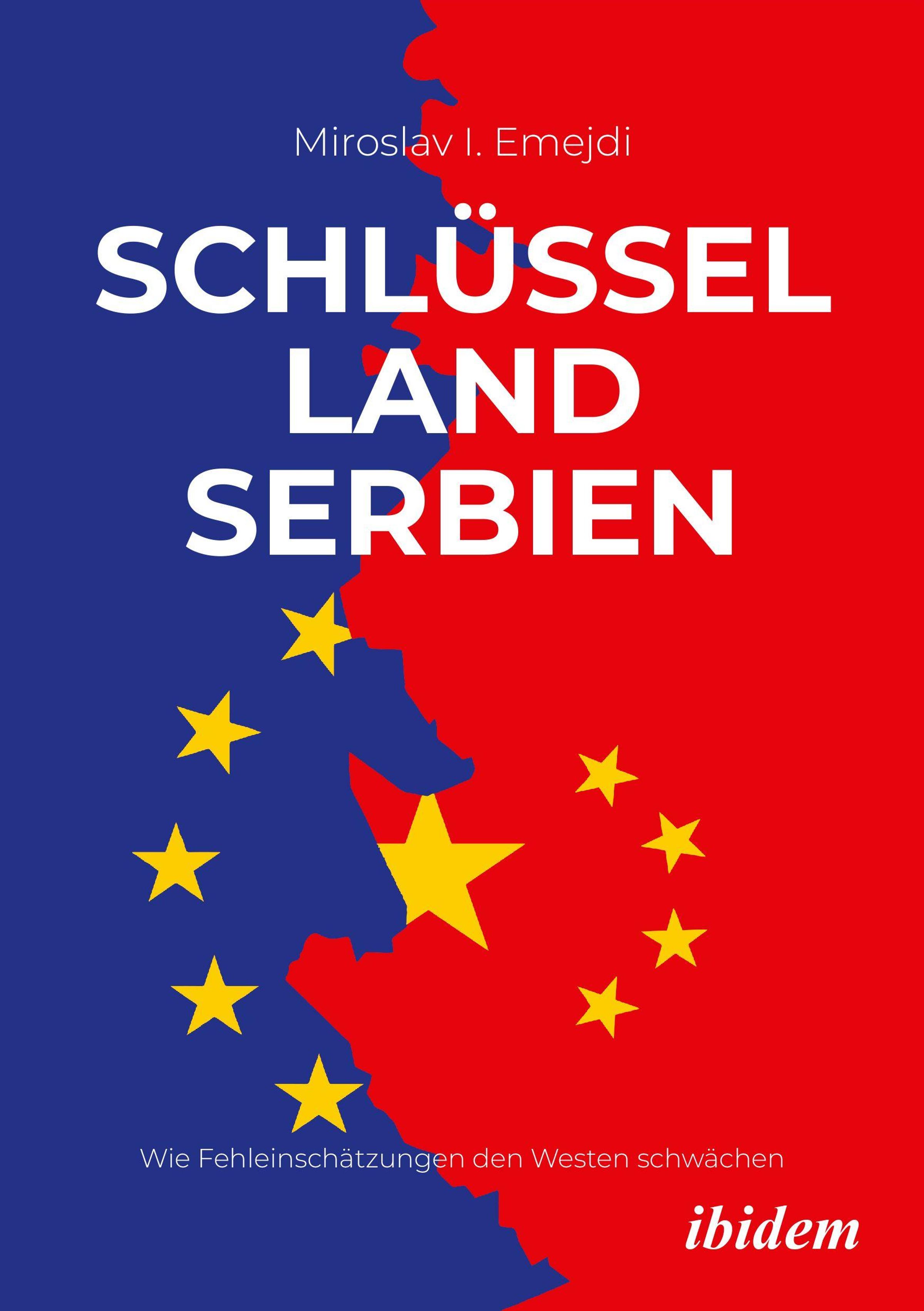 Titel: "SCHLÜSSELLAND SERBIEN". Autor: Miroslav I. Emejdi. Hintergrund mit EU- und China-Flaggenfarben., Buch