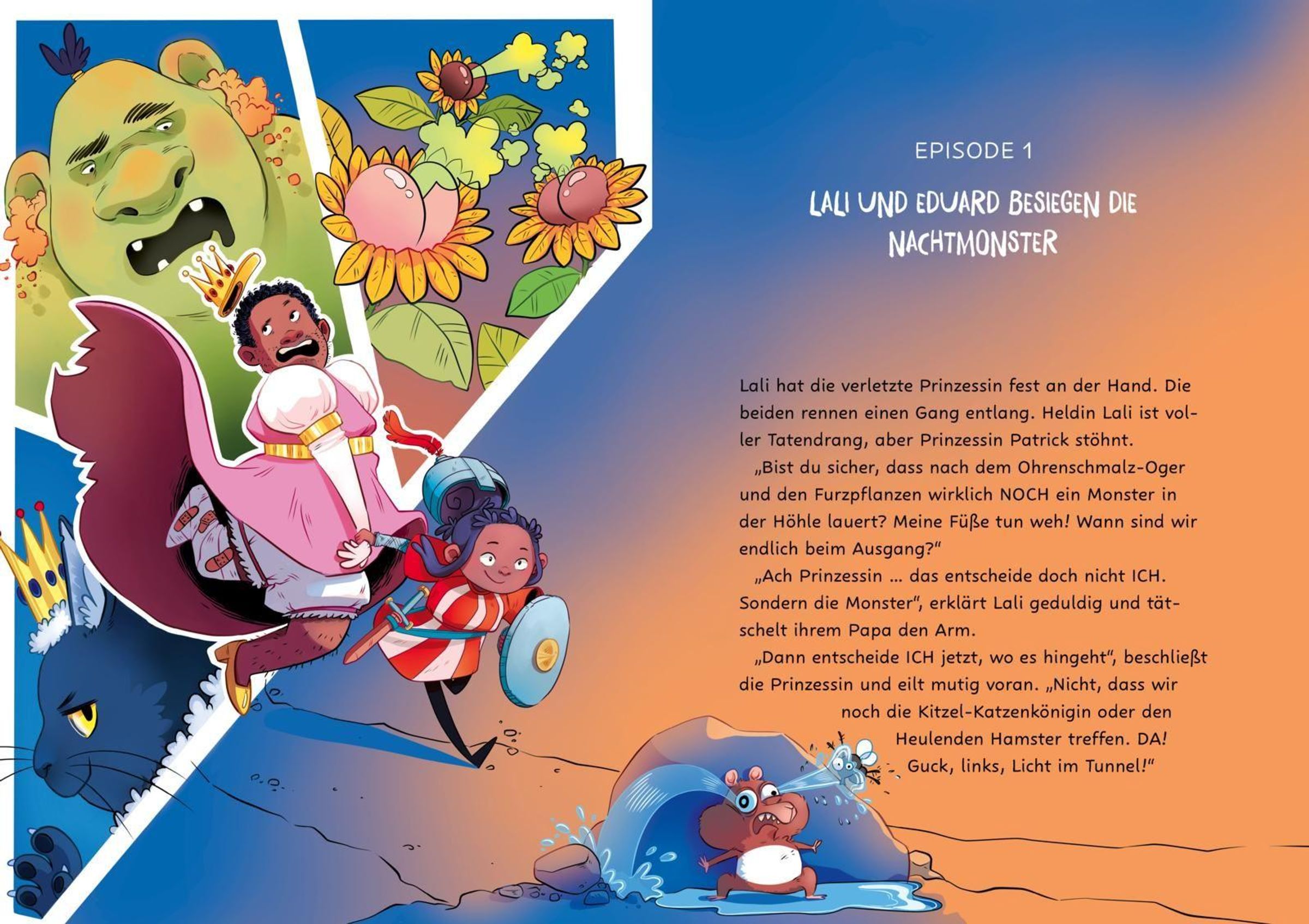Dieser Abend ist natürlich erst der Beginn einer wunderbaren Freundschaft . Eduard kann zwar ganz ernsthaft nach Monstern suchen, aber er macht dabei auch ganz schön ulkige Geräusche. Und Lali zum Lachen zu bringen könnte man fast als sein Hobby bezeichnen. Ob zuhause, in der Schule oder in Omas Baumhaus: Lali und Eduard haben immer den größten Spaß, wenn sie zusammen sind. Neben Angst kann der lustigste Lichtdrache der Welt nämlich auch Langeweile vertreiben ...
