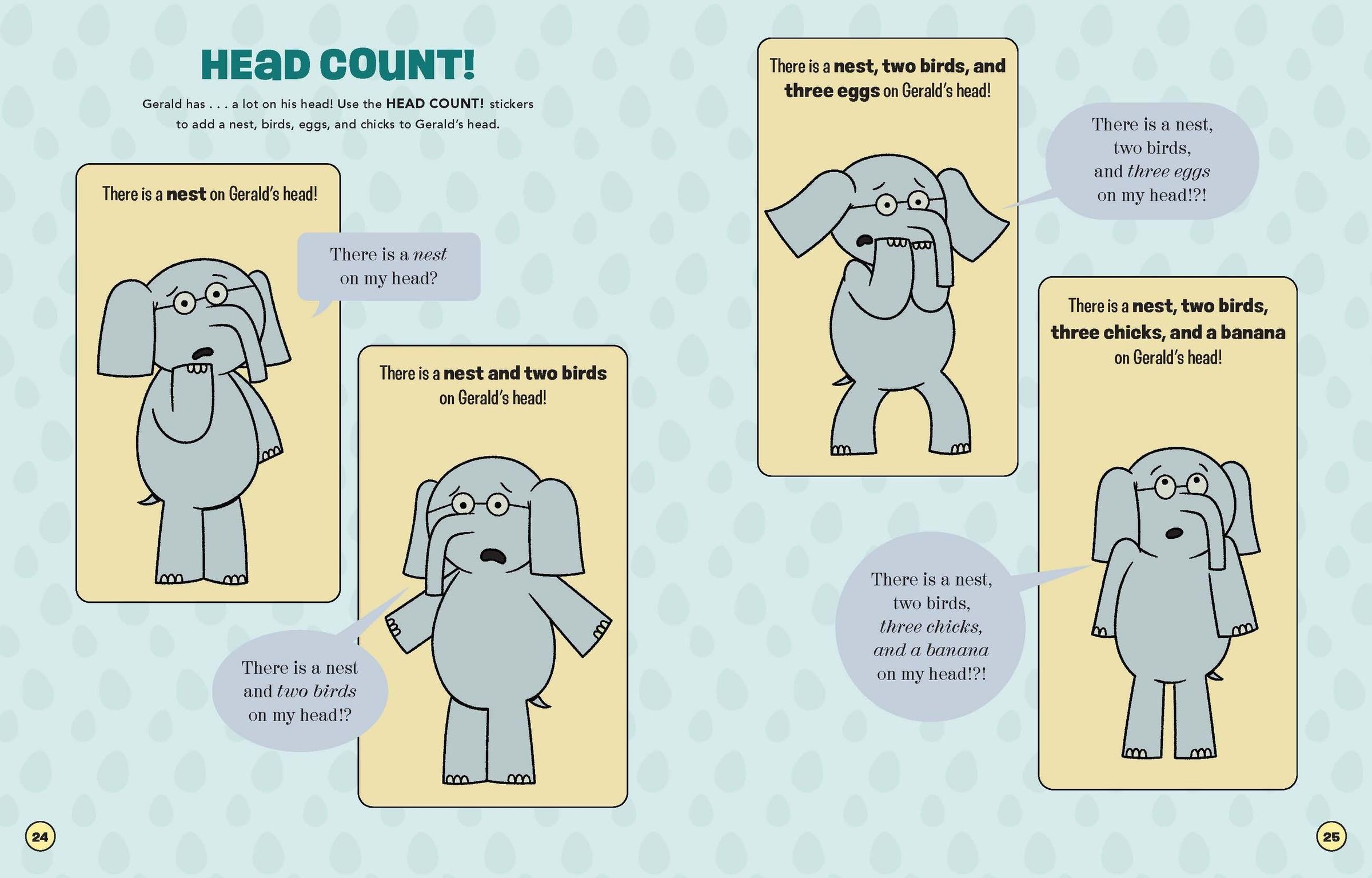 Elephant and Piggie stick together like only best friends can! This fun-filled sticker-scene book features favorite Elephant & Piggie adventures along with special guest appearances from a cast of pals including Snake, Bat, Whale, and Ice Cream Penguin. Dance with Gerald, play ball with Snake, make slop with Piggie, go for a drivey-drive-drive, and so much more!
