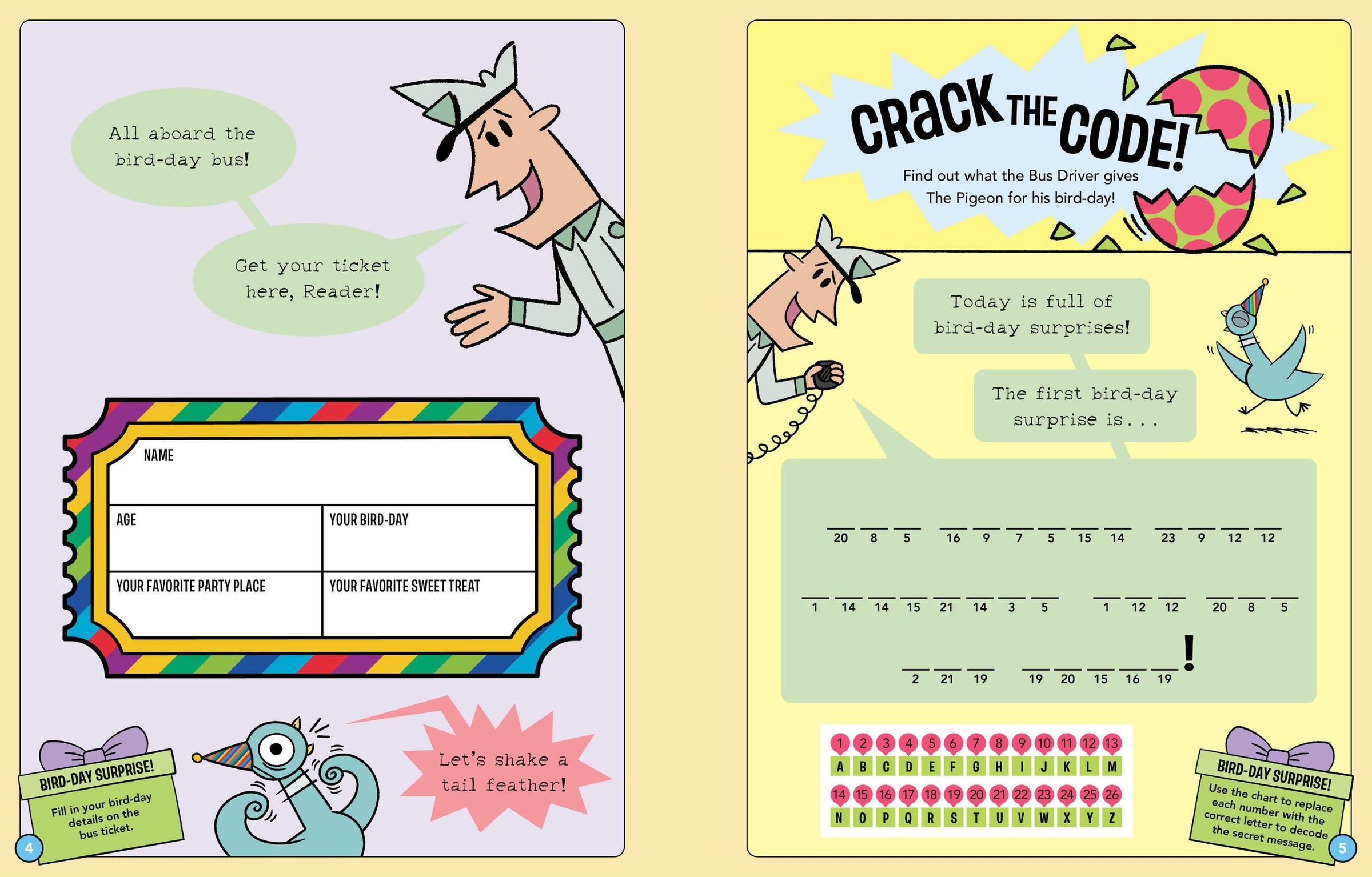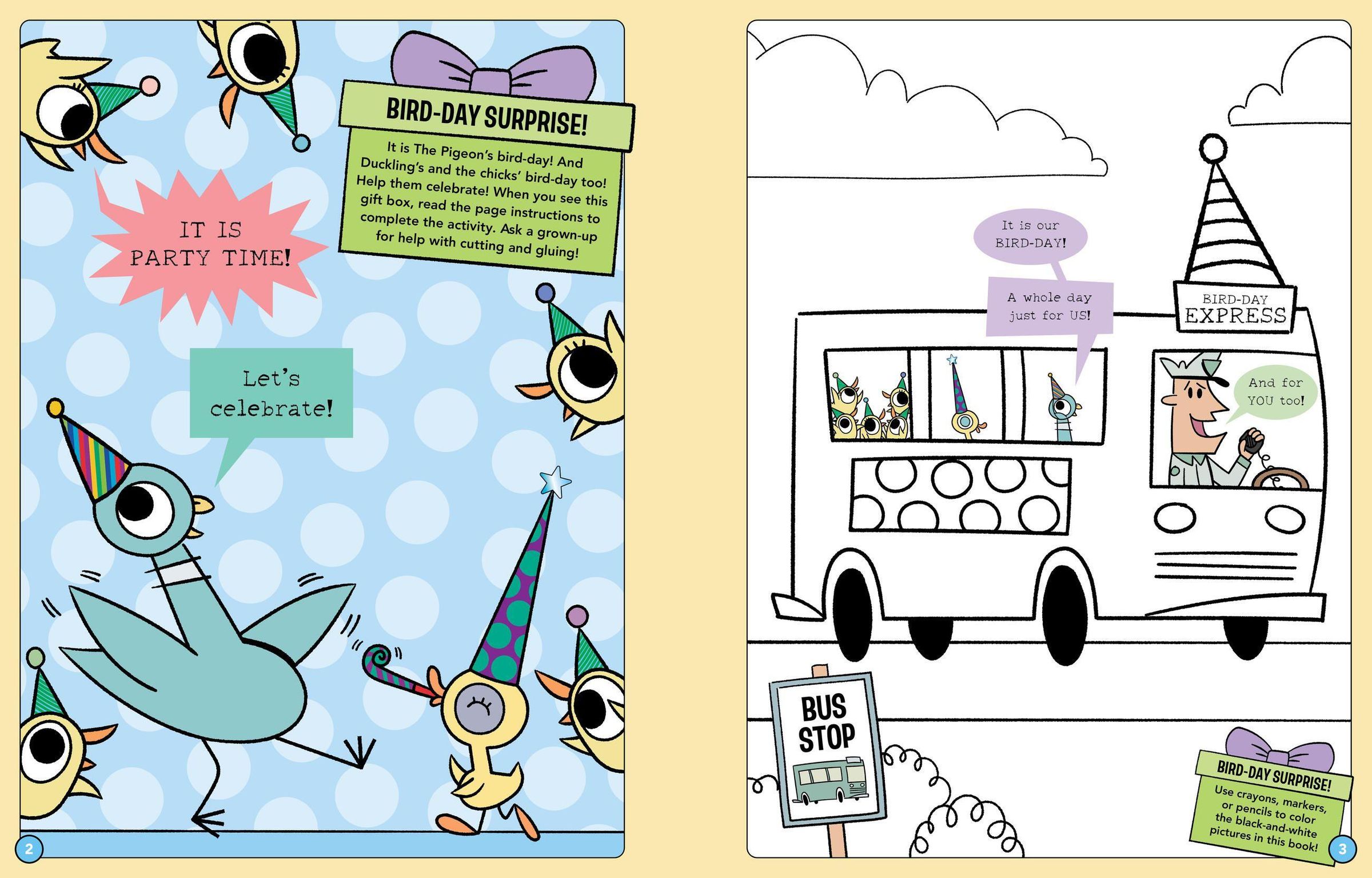 Get ready for a bird-day bonanza in this superfun activity book from Mo Willems Workshop packed with birthday games, puzzles, and coloring, plus DIY gifts, cards, decorations, a double-sided pullout poster, stickers, and plenty of bird-day surprises.