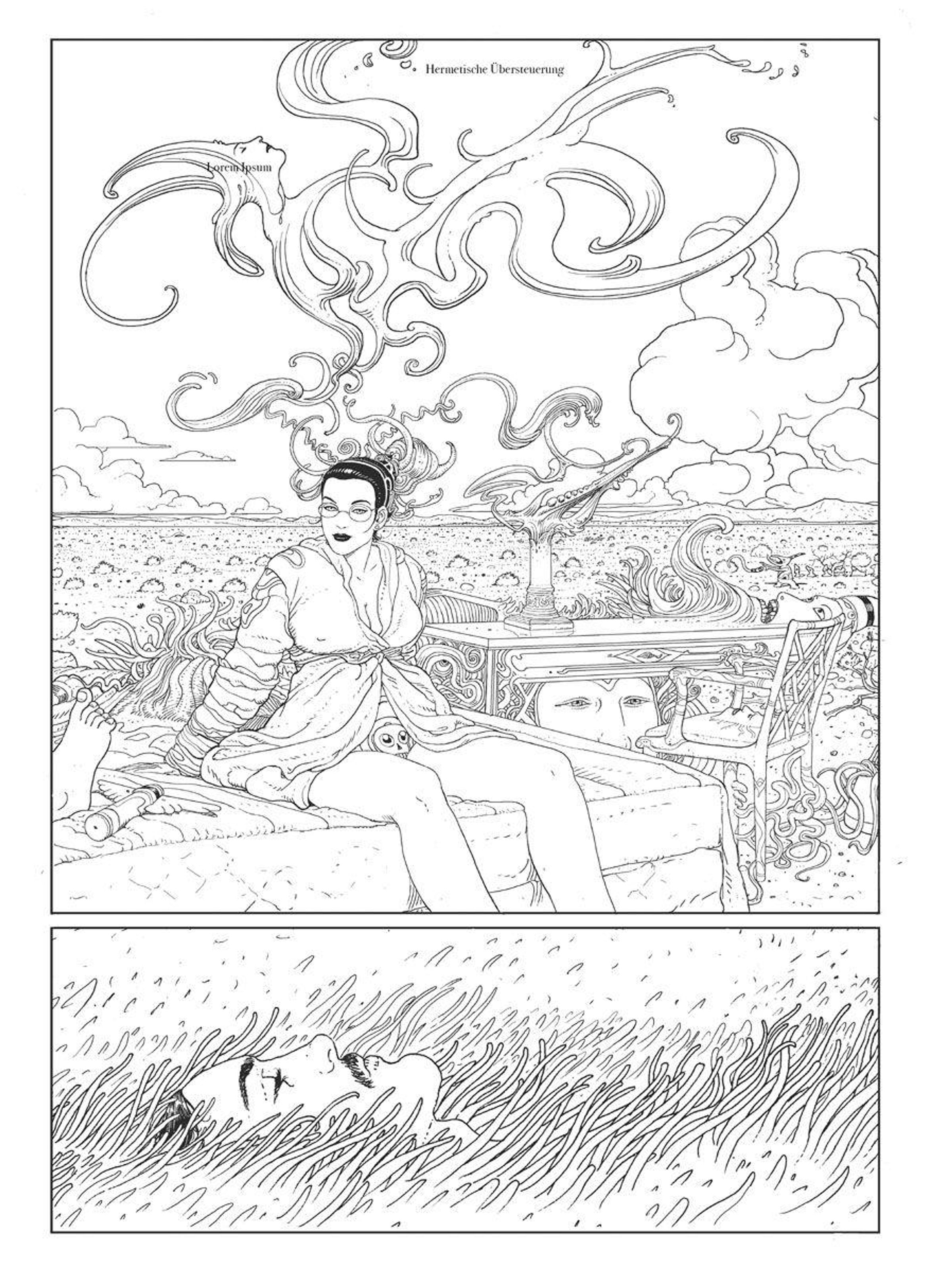 Die zwischen 2006 und 2008 entstandenen Seiten sind voll von fantastischen Bildern und eröffnen ein Universum, das Moebius mit seinem charakteristisch präzisen Federstrich zum Leben erweckt. Wunderschön gedruckt in sattem Schwarz auf dickem Papier.