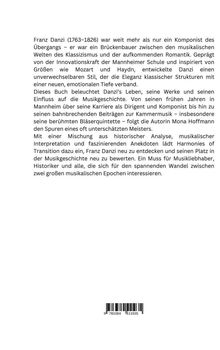 Mit einer Mischung aus historischer Analyse, musikalischer Interpretation und faszinierenden Anekdoten lädt Harmonies of Transition dazu ein, Franz Danzi neu zu entdecken und seinen Platz in der Musikgeschichte neu zu bewerten. Ein Muss für Musikliebhaber, Historiker und alle, die sich für den spannenden Wandel zwischen zwei großen musikalischen Epochen interessieren.