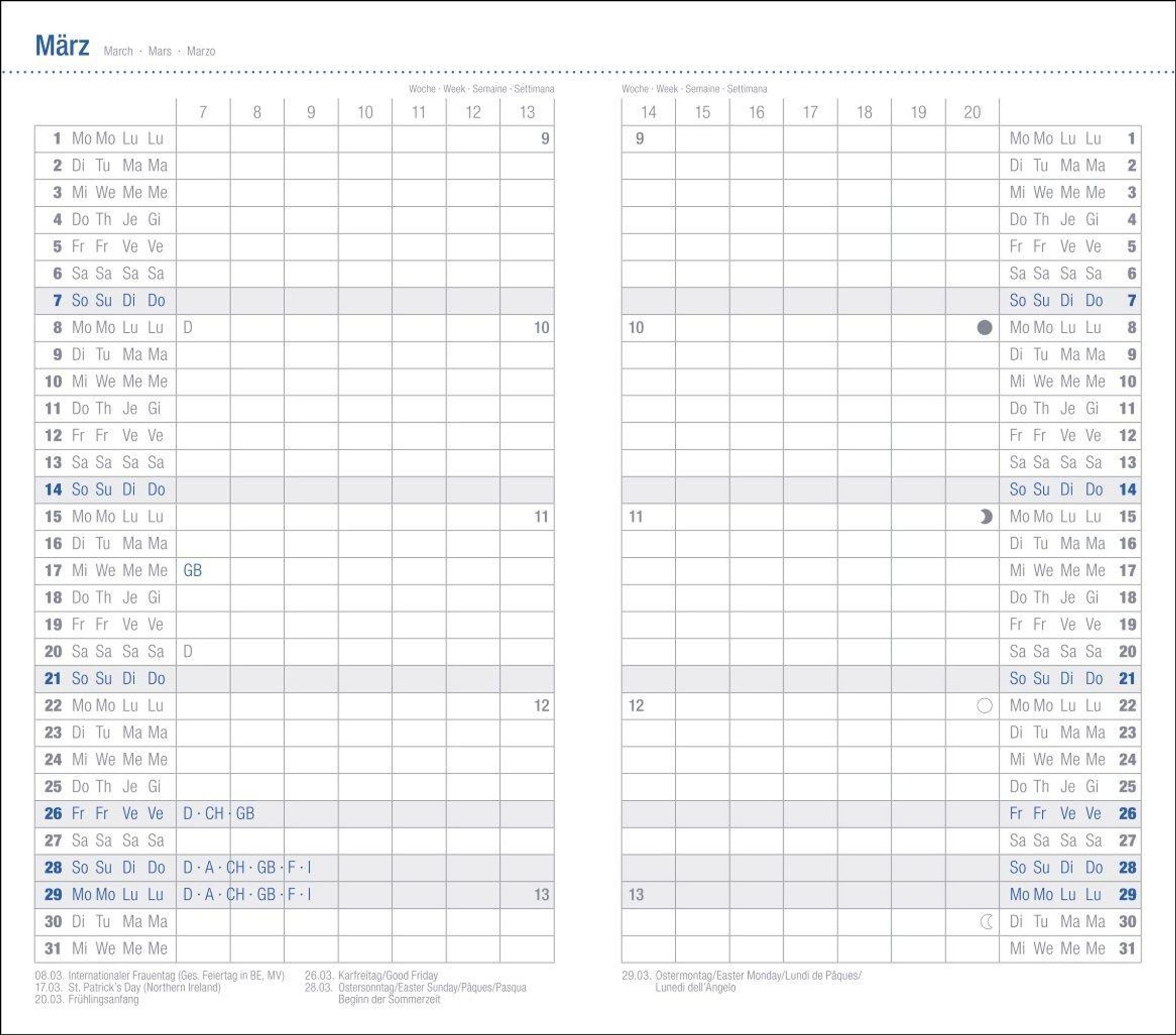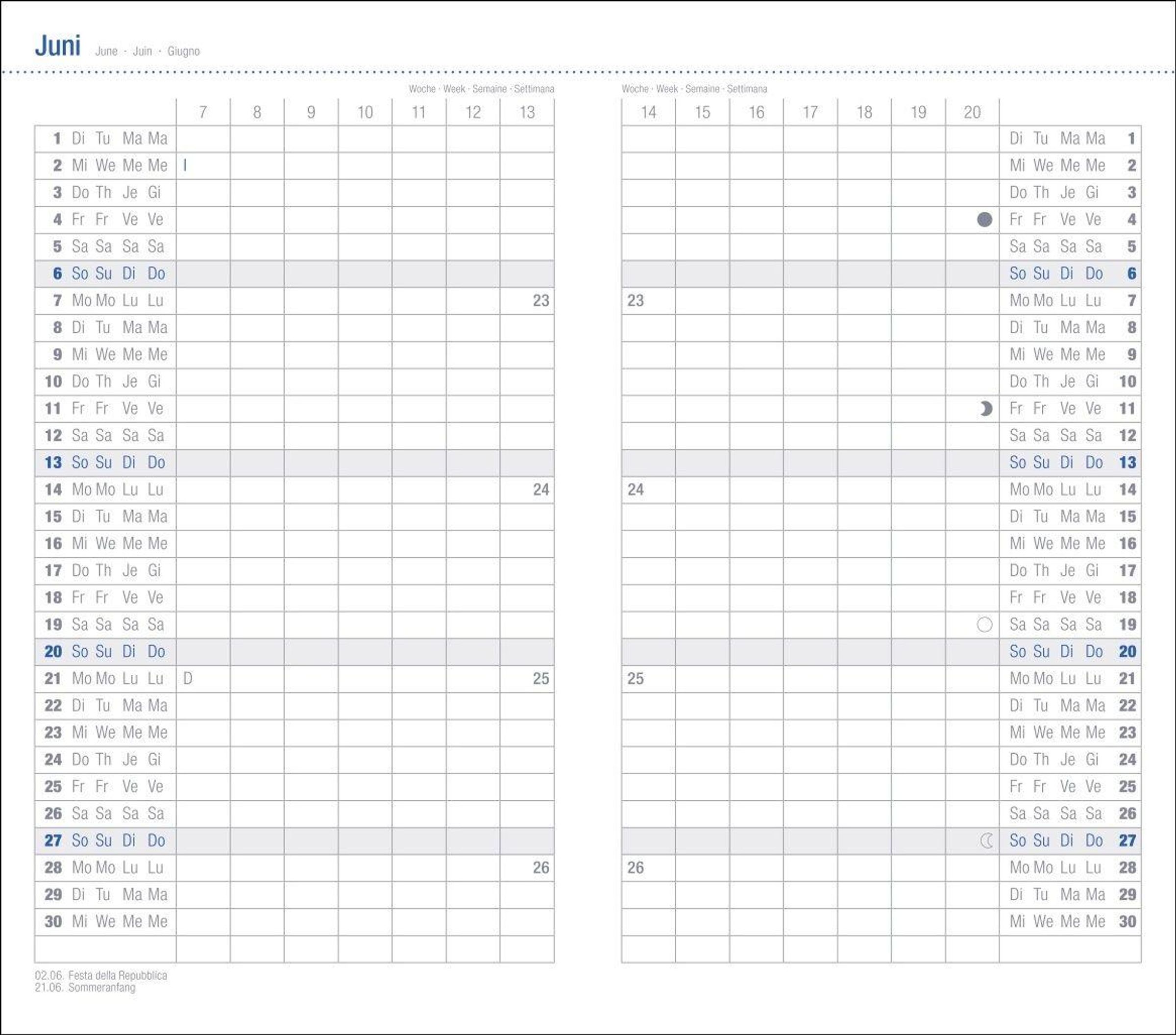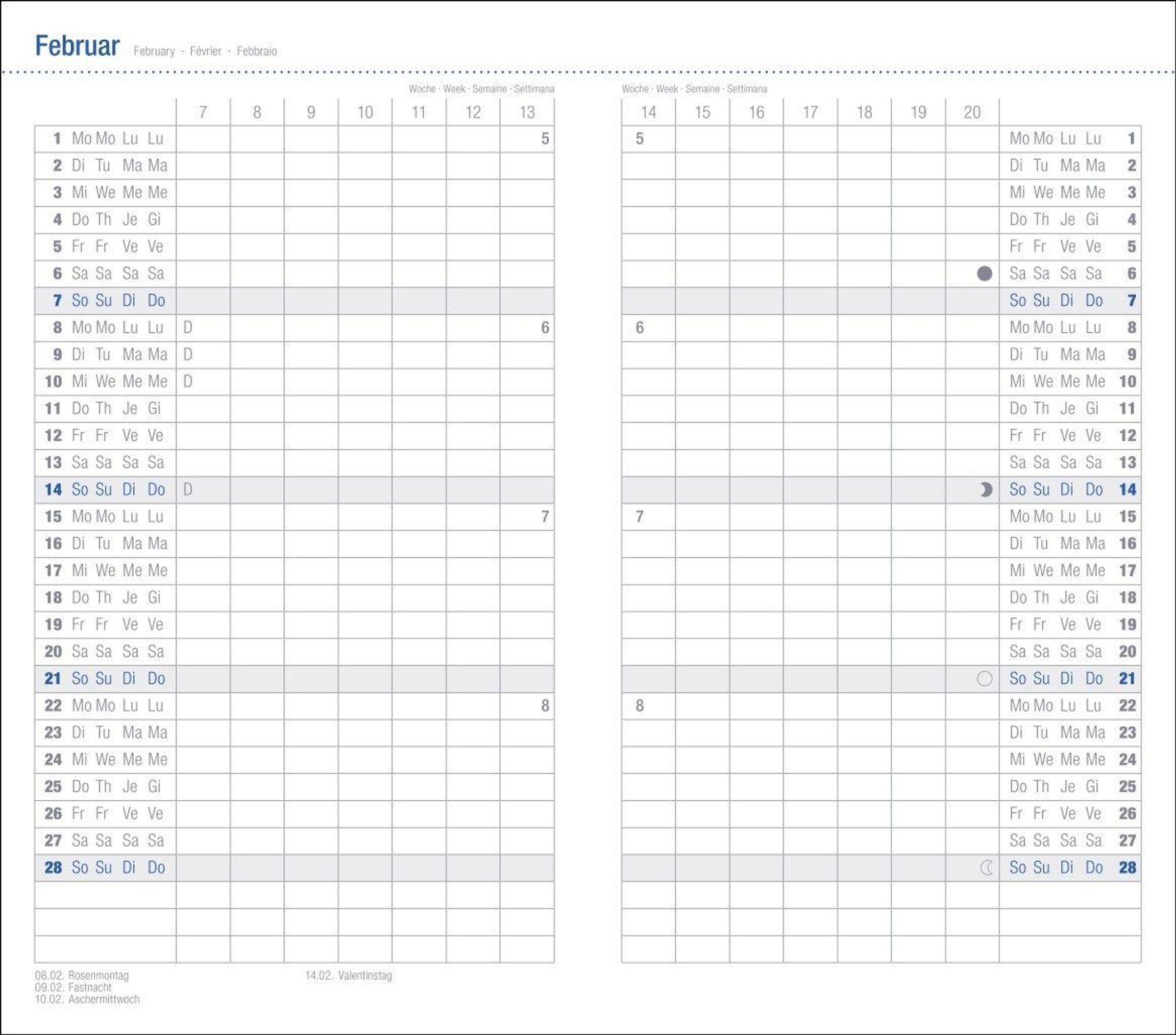 Das Büro für unterwegs: Jede Doppelseite mit Monatsübersicht und Platz für Notizen
