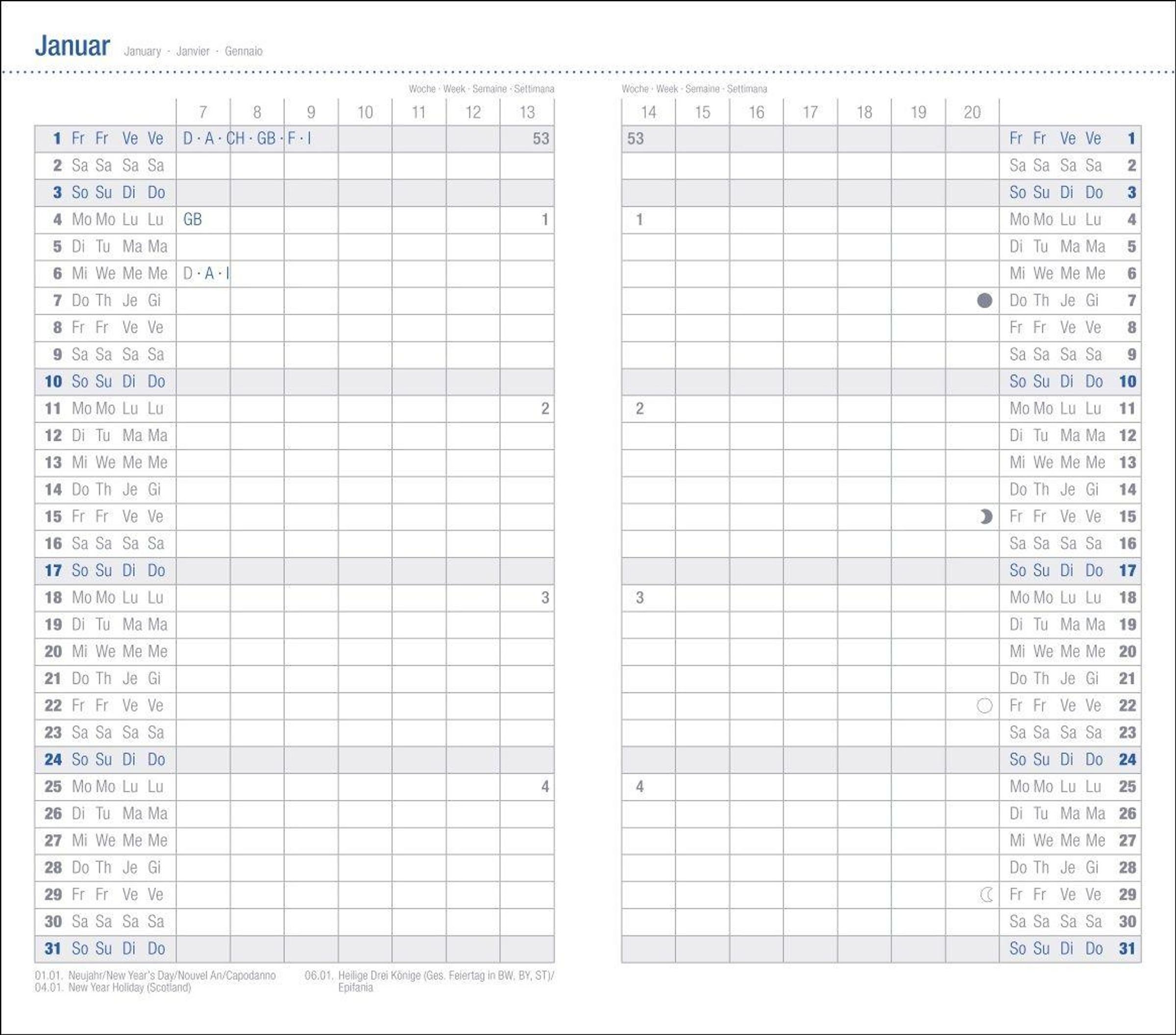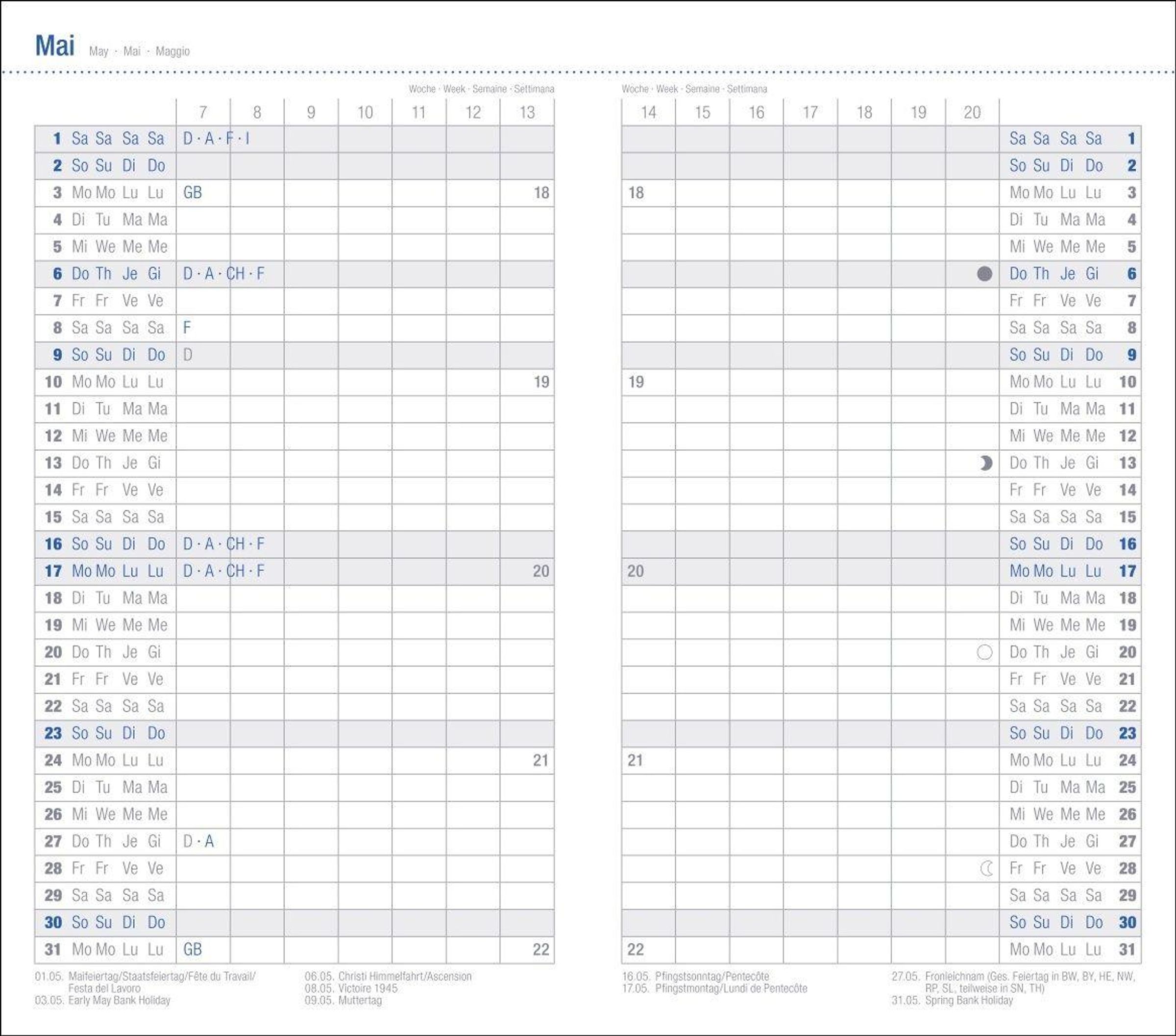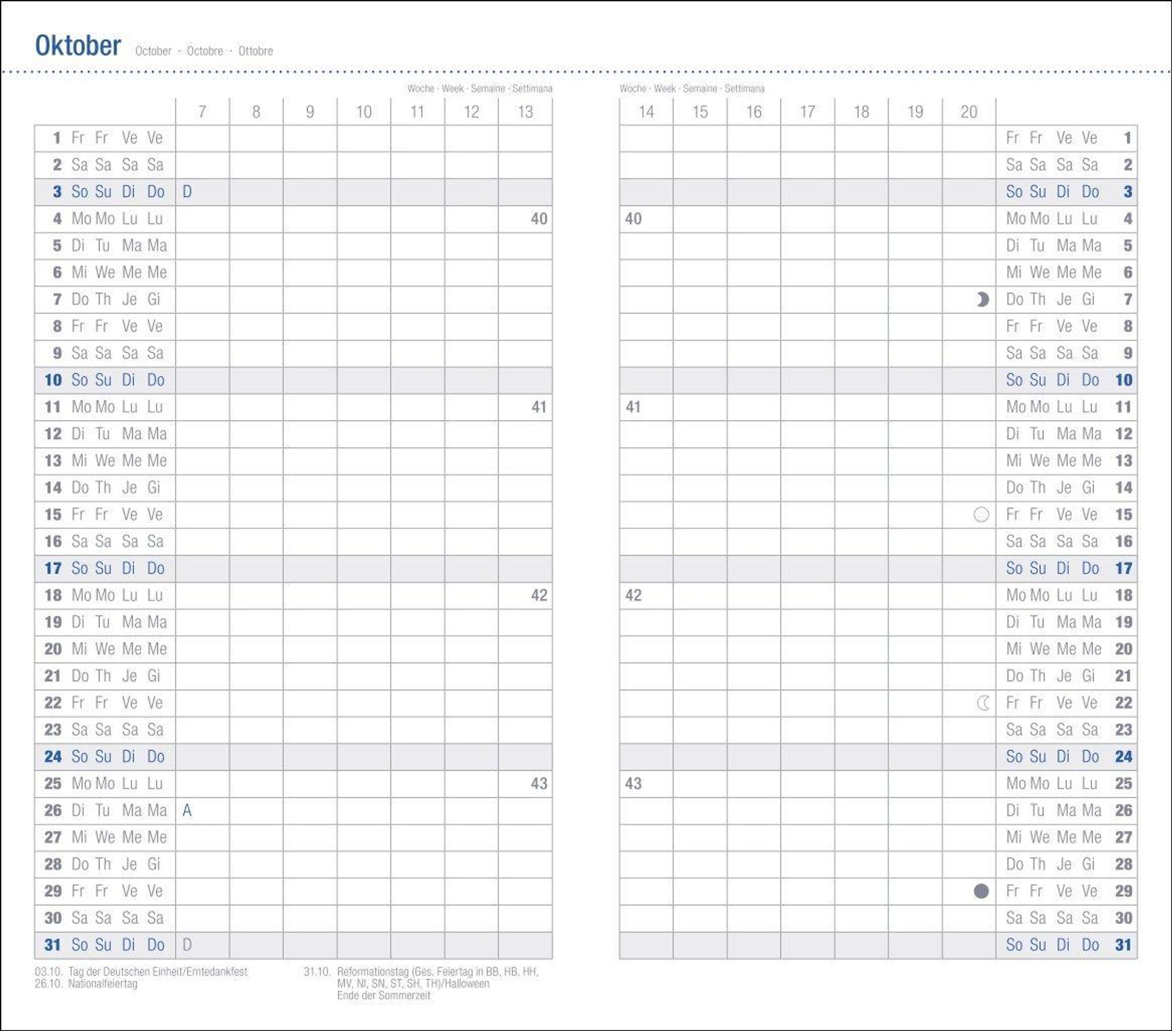 Das Büro für unterwegs: Jede Doppelseite mit Monatsübersicht und Platz für Notizen