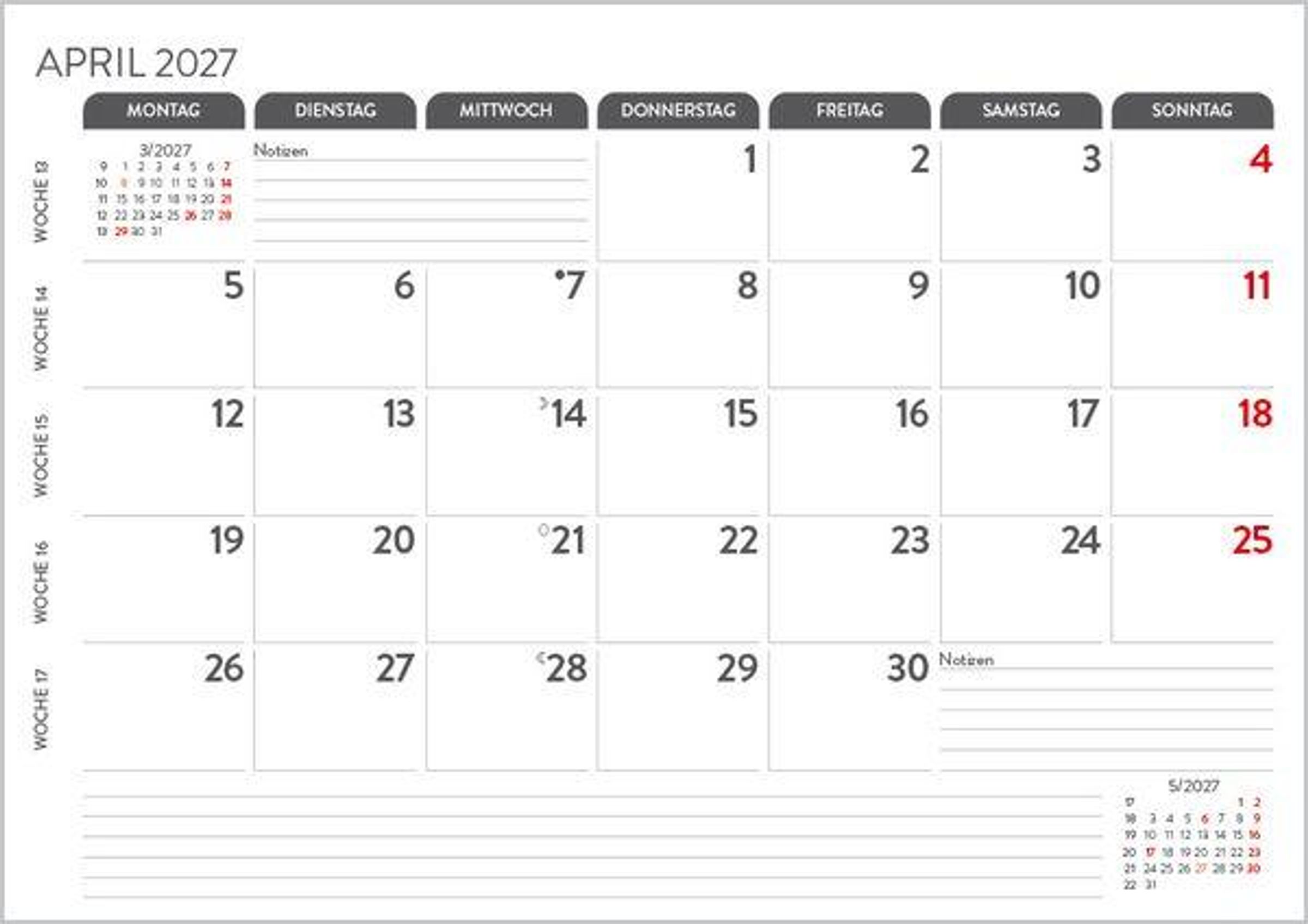 - Format: 29, 7 x 21 cm; Wandkalender mit viel Platz für Termine