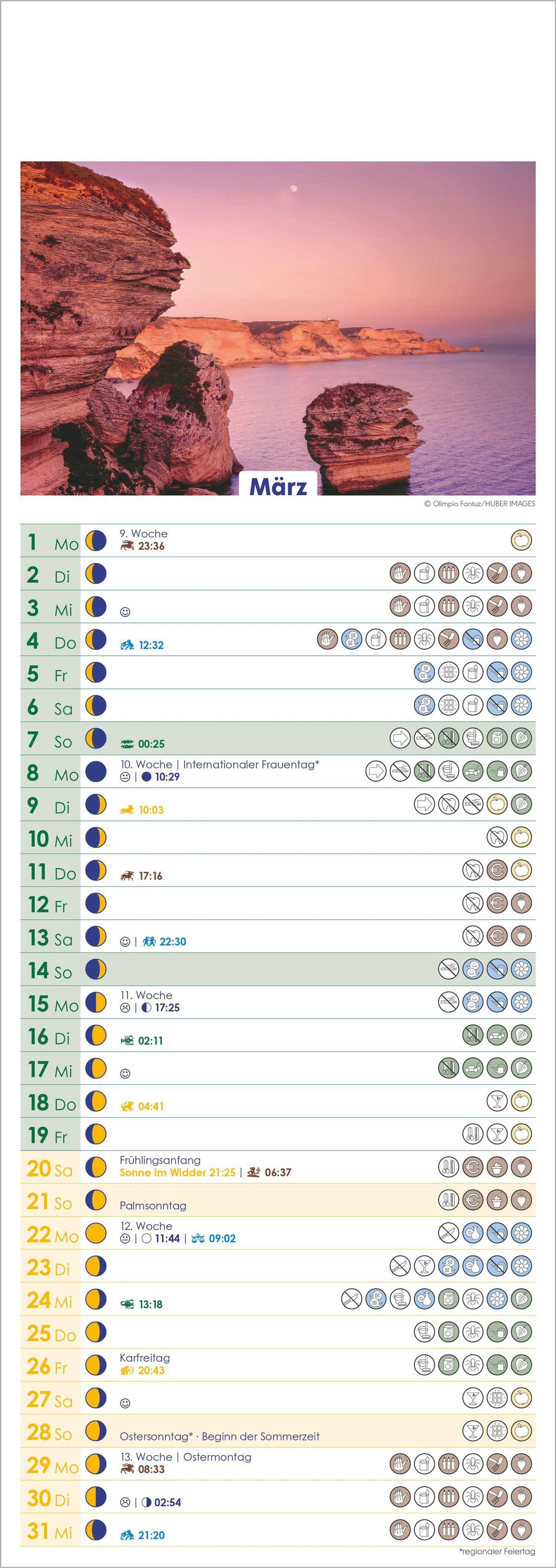 Umfassende Organisation: Mit 100-jährigem Kalender, minutengenauen Mondphasen & Tierkreiszeichenwechseln