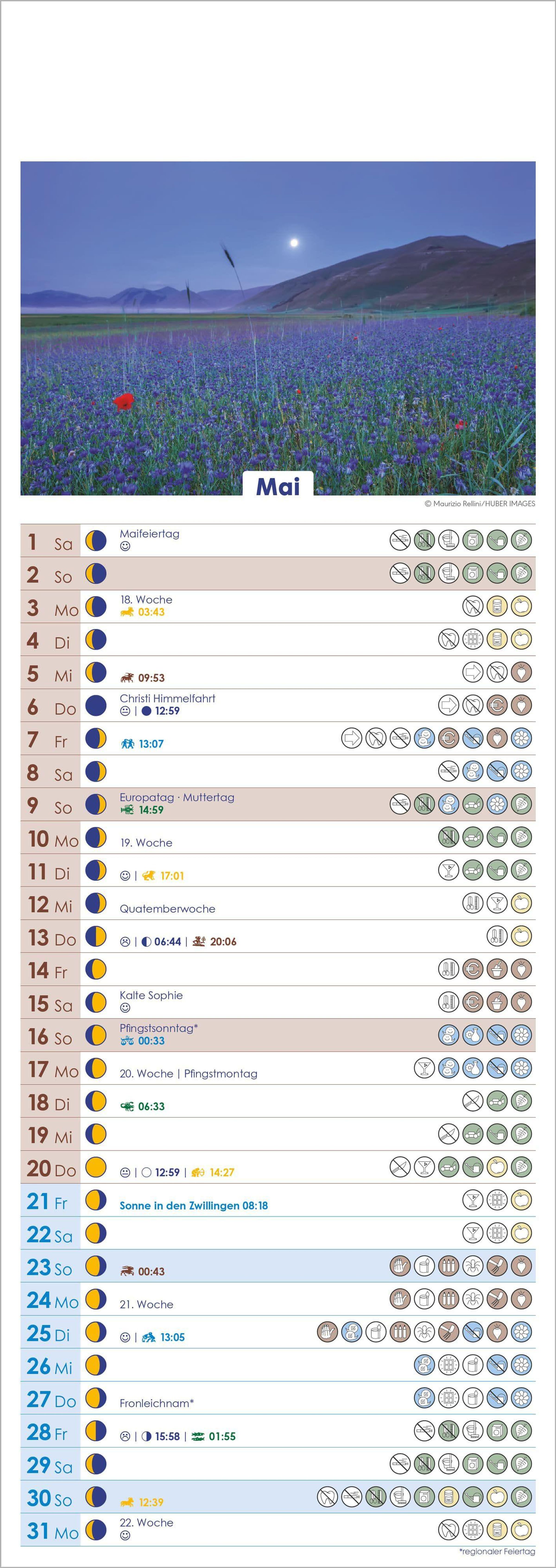 Praktische Zusatzinfos: Alltagstipps zu Haushalt, Garten und Gesundheit, Kennzeichnung günstiger & kritischer Tage