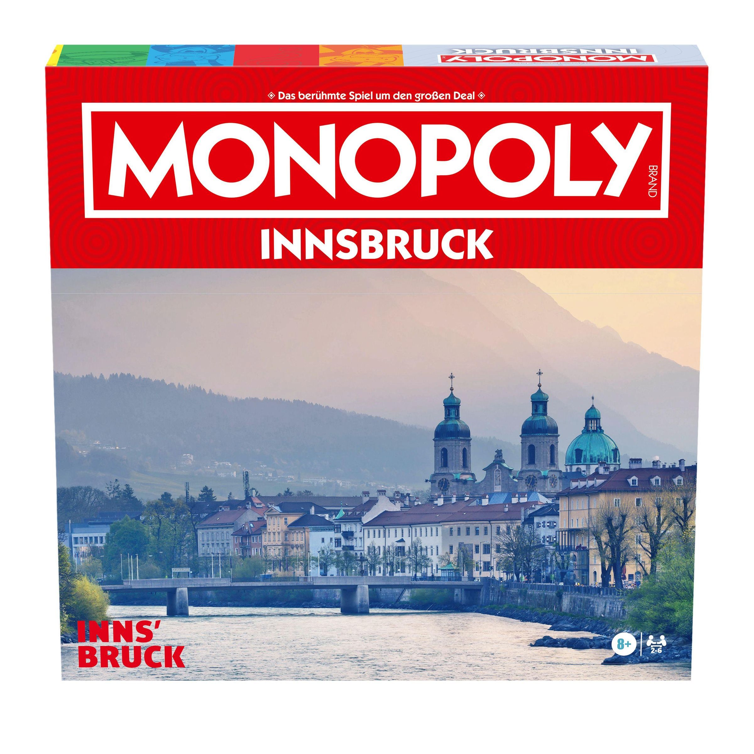 Mit der neuen MONOPOLY Innsbruck Edition begibst du dich auf eine spannende Reise durch die Tiroler Landeshauptstadt und entdeckst die schönsten Ecken auf spielerische Weise. Hier kannst du nicht nur flanieren, sondern auch investieren. Erwirb berühmte Sehenswürdigkeiten, lokale Betriebe und beliebte Plätze, baue Häuser und Hotels und bring deine Mitspieler mit klugen Schachzügen ins Schwitzen. MONOPOLY Innsbruck vereint Tradition und Moderne - perfekt für alle, die der Stadt verbunden sind oder sie ganz neu erleben wollen.