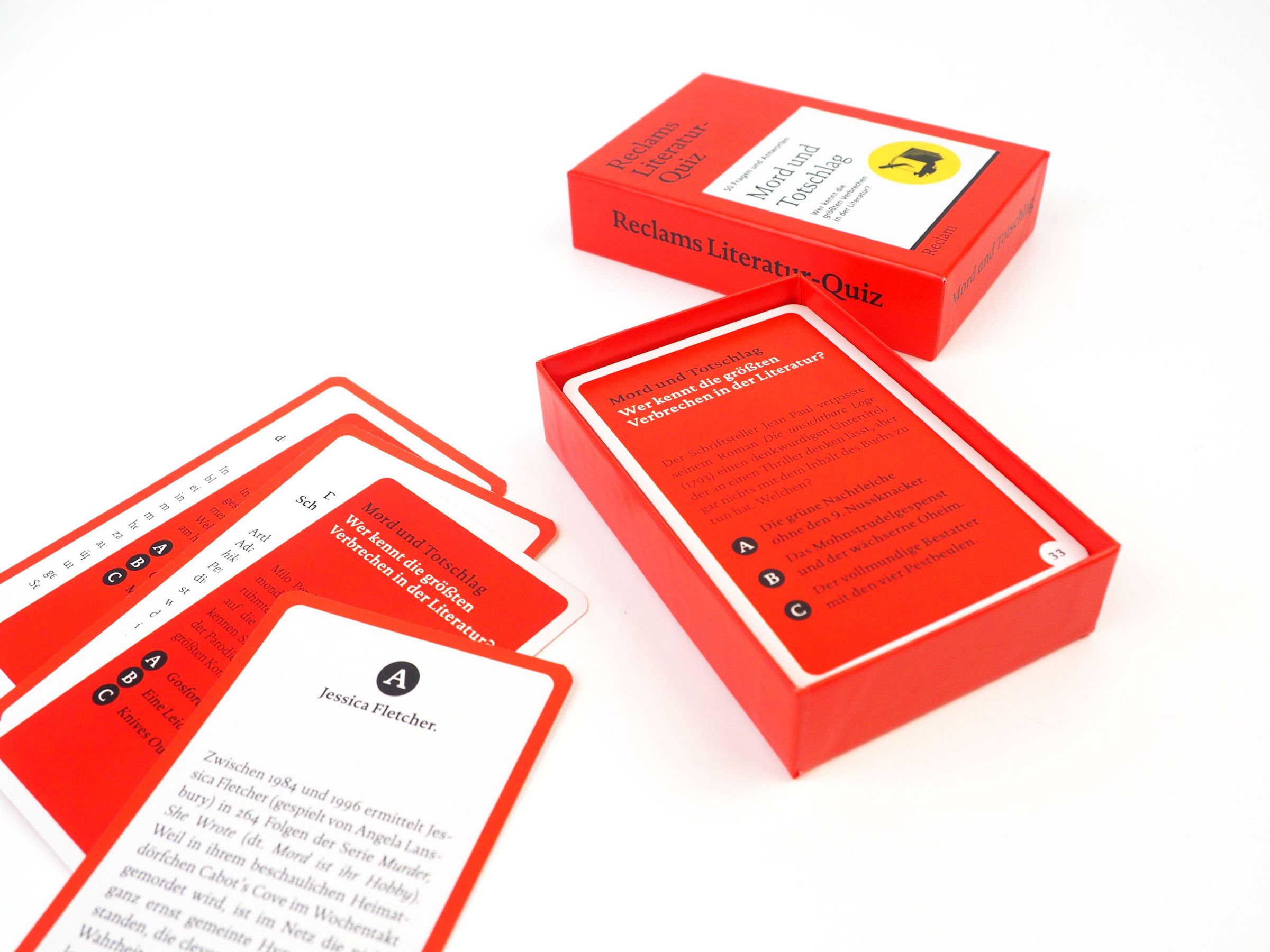 Spielerisch das Literaturwissen erweitern! Literaturquizzen macht Spaß und süchtig! Ob allein, zu zweit oder in der Gruppe: Reclams Literatur-Quiz ist ein unterhaltsamer Zeitvertreib für den Spieleabend, den Leseclub oder einfach für zwischendurch. Ein originelles Geschenk für Bücherfreund: innen und eine vergnügliche Herausforderung für Menschen, die meinen, schon alles gelesen zu haben.