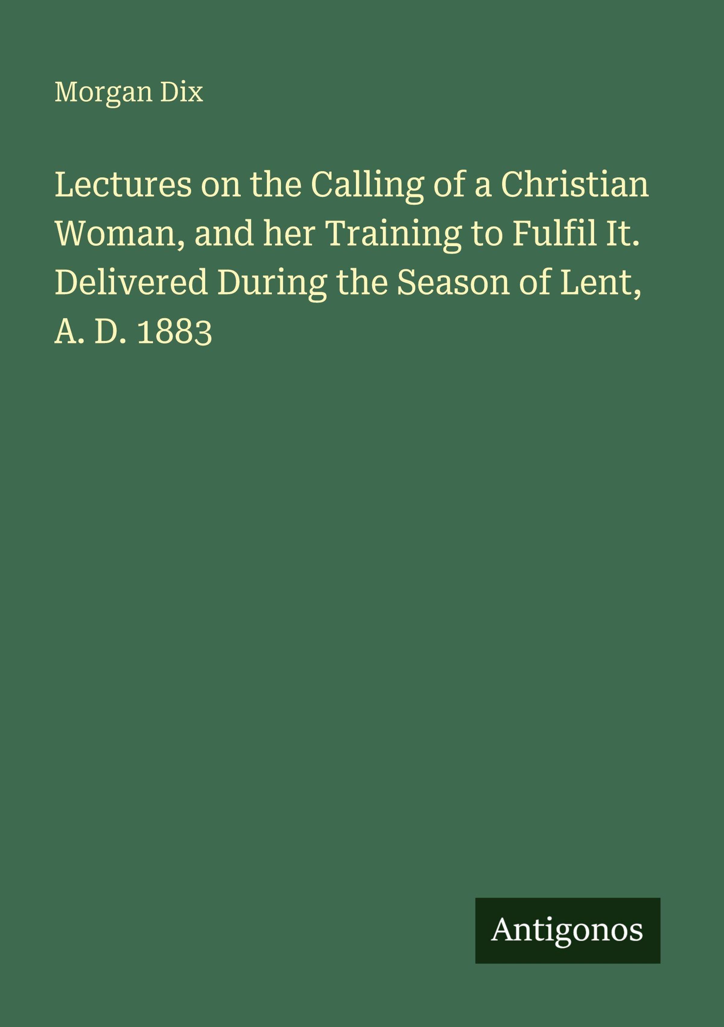 Morgan Dix: Lectures on the Calling of a Christian Woman, and her Training to Fulfil It. Delivered During the..., Kartoniert / Broschiert