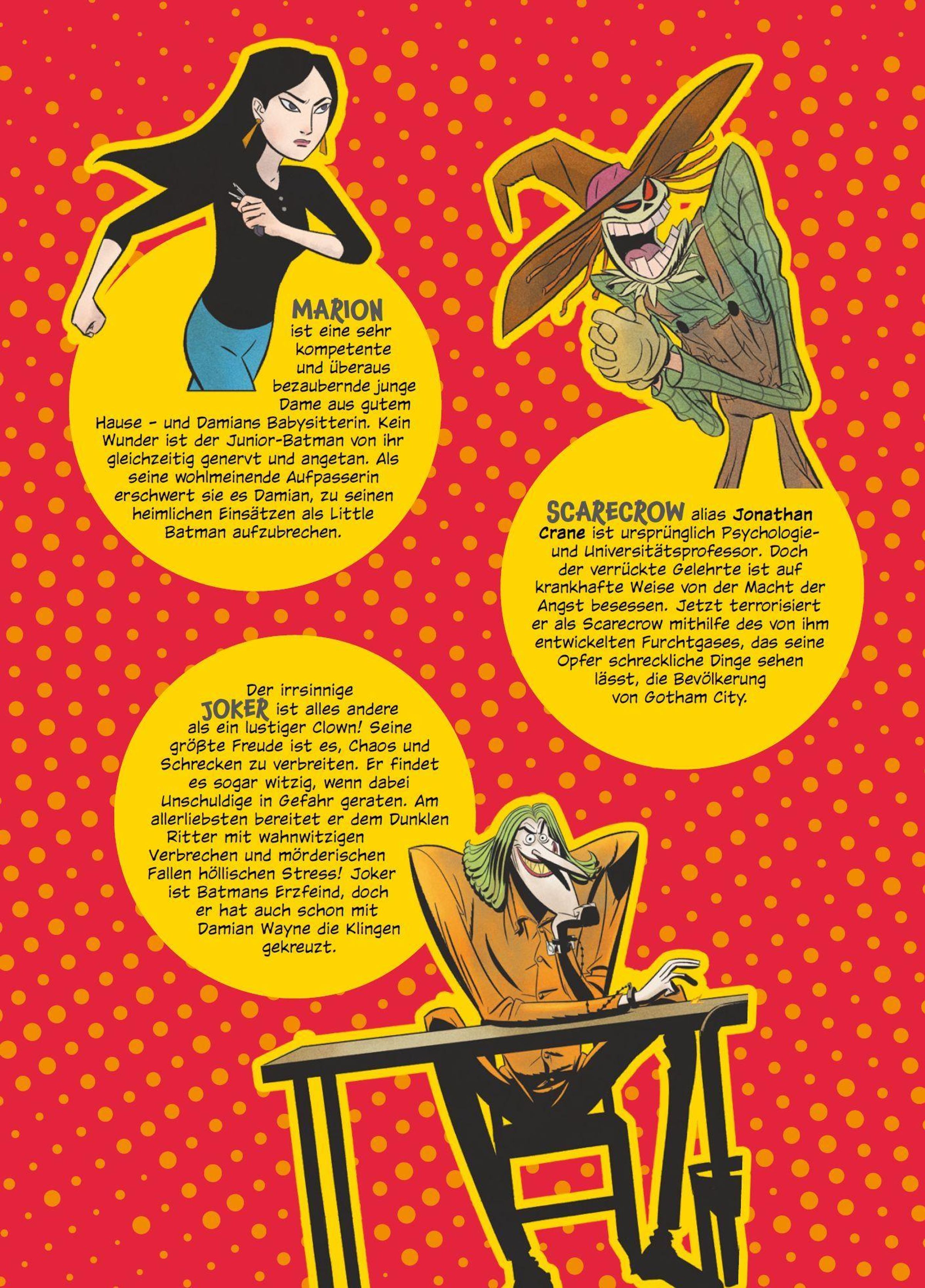 DER KLEINE RITTER KEHRT ZURÜCK! Batman wird von einem seiner schlimmsten Gegner gefangen gehalten. Doch Hilfe ist unterwegs, denn jetzt macht der Schrecken der Unterwelt Jagd auf den Übeltäter: Batmans Sohn Damian Wayne als Little Batman! Zwar muss sich der Nachwuchs-Flattermann mit üblem Abschaum wie dem Joker und dem Pinguin herumschlagen und landet bei seiner Mission sogar hinter Gittern, doch seine größte Herausforderung heißt Marion - und ist die junge Babysitterin des Kleinen Ritters.
