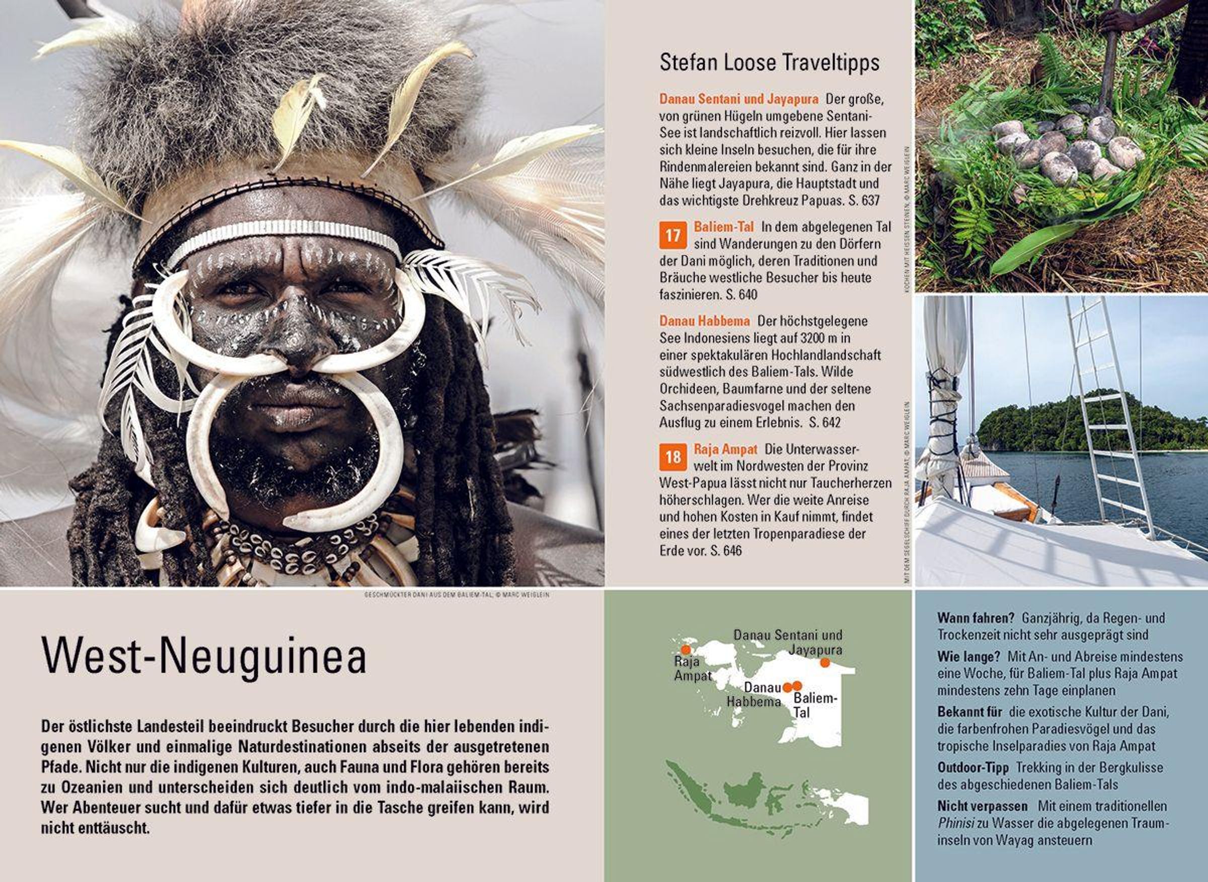 Indonesien auf eigenen Pfaden entdecken Jahrtausendealte Kulturschätze und schillernde Metropolen, üppige Dschungelregionen und bunte Unterwasserwelten, lebendige Traditionen und moderner Lifestyle - der Inselstaat Indonesien ist facettenreich und faszinierend. Das Stefan Loose Travel Handbuch Indonesien lädt dazu ein, den Archipel mit Sumatra, Java, Sulawesi sowie Teilen von Borneo und Neuguinea in all seinen Facetten zu erkunden. Was es dann noch braucht, sind Zeit und Geduld zum Zuhören und Beobachten sowie etwas Mut, sich auch abseits ausgetretener Pfade zu bewegen und auf Fremdes einzulassen.