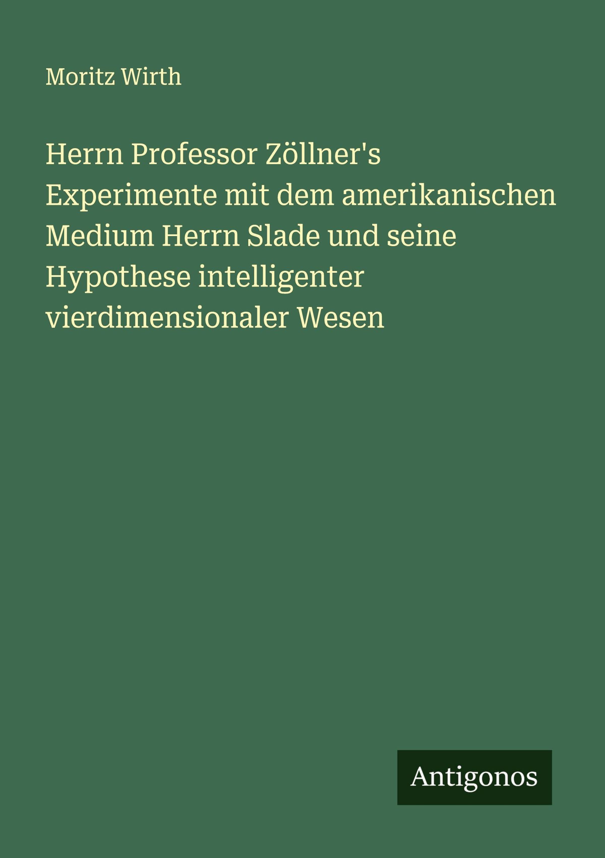 Herrn Professor Zöllner's Experimente mit dem amerikanischen Medium Herrn Slade und seine Hypothese intelligenter vierdimensionaler Wesen