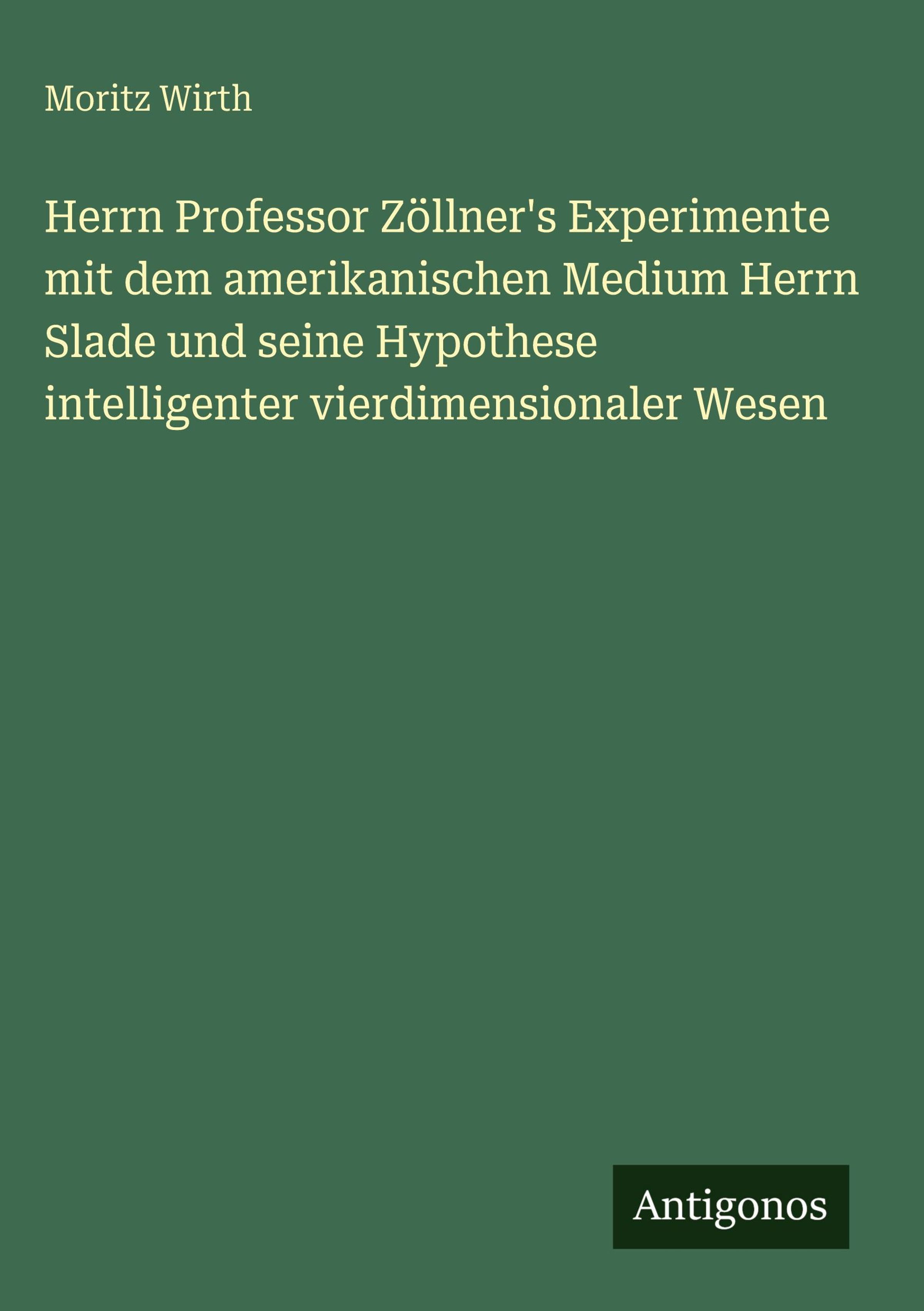 Moritz Wirth: Herrn Professor Zöllner's Experimente mit dem amerikanischen Medium Herrn Slade und seine..., Gebunden