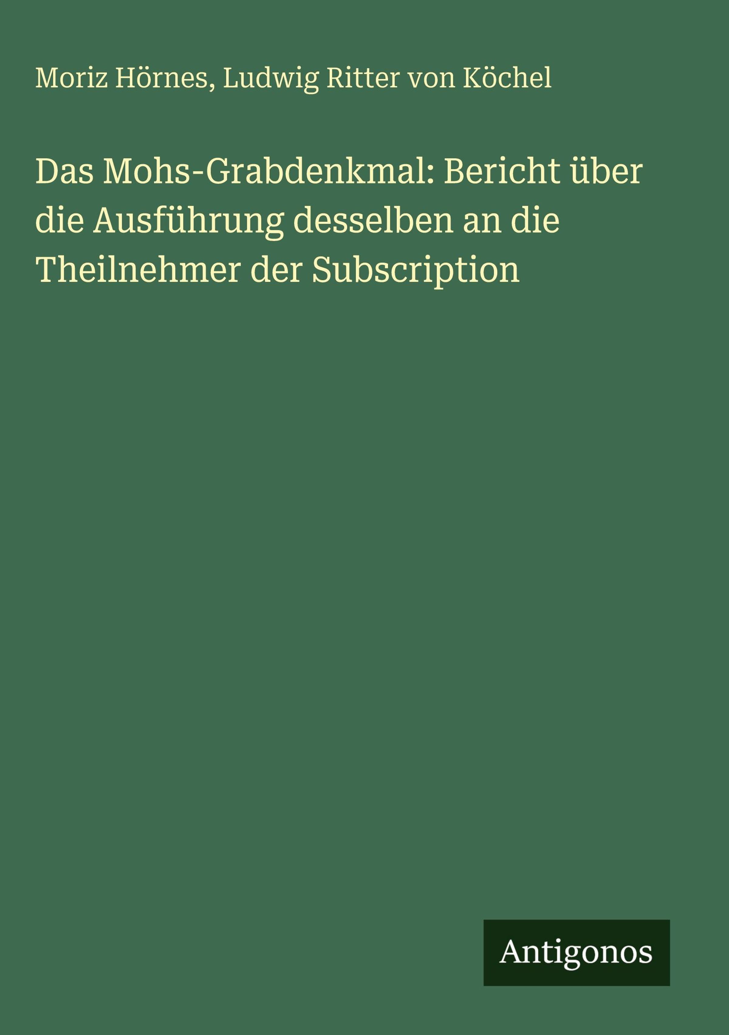 Moriz Hörnes: Das Mohs-Grabdenkmal: Bericht über die Ausführung desselben an die Theilnehmer der Subscription, Gebunden