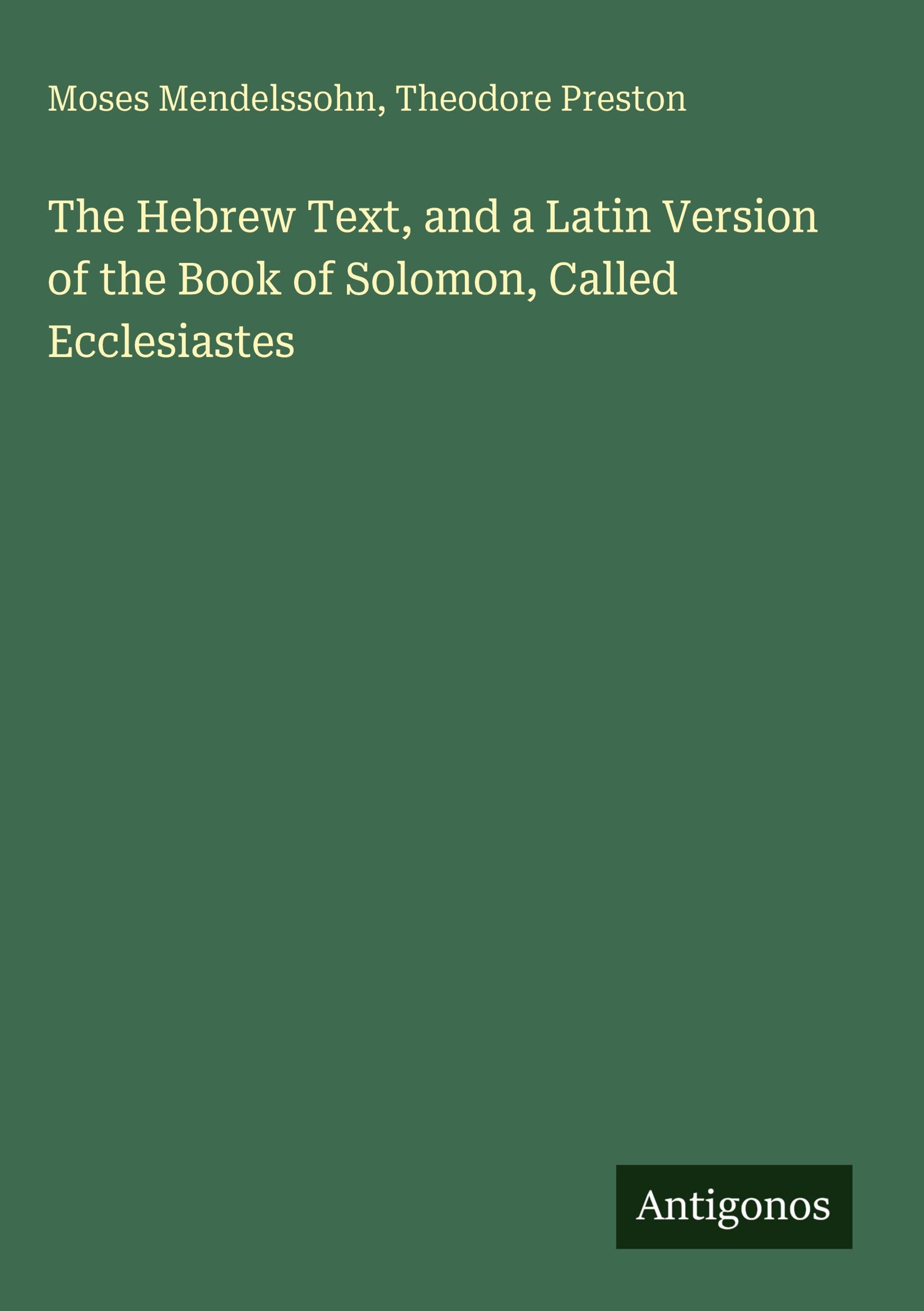 Moses Mendelssohn: The Hebrew Text, and a Latin Version of the Book of Solomon, Called Ecclesiastes, Gebunden