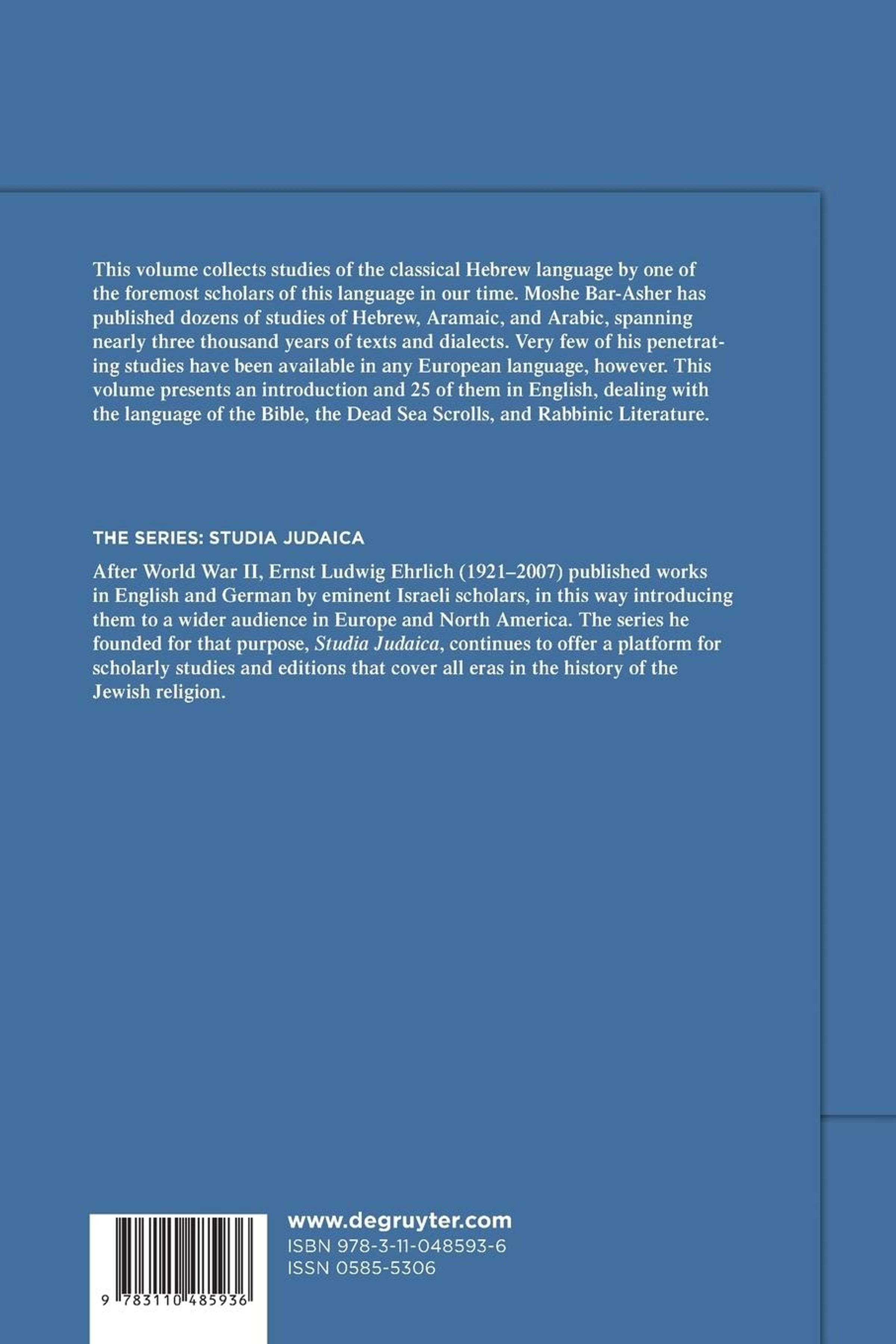 Professor Moshe Bar-Asher, Professor Emeritus at the Hebrew University and long-time president of the Academy of the Hebrew Language, has published more than 200 articles and sixteen books and edited aboout 90 books and collections. The vast majority of his work has been accessible, however, only to specialists who read modern Hebrew or French. Bar-Ashers groundbreaking articles on the dialects of rabbinic literature are classics. In more recent years he has brought the same breadth and depth of grammatical knowledge, and philological acumen, to the study of older classical Hebrew texts, including literary and epigraphic texts. This volume presents studies of individual words and verses within the Bible, as well as broader thematic discussions of biblical language and its long reception-history, down through medieval scribes and modern lexicographers. Also represented are Bar-Ashers penetrating studies of Qumran texts and languages, which illuminate both the linguistic traditions reflected in these texts and the scribal culture from which they emerged. The third section contains studies of Mishnaic Hebrew. There are both sweeping surveys of the field and its accomplishments and challenges, and studies of specific phonological, morphological, syntactic and lexical features.