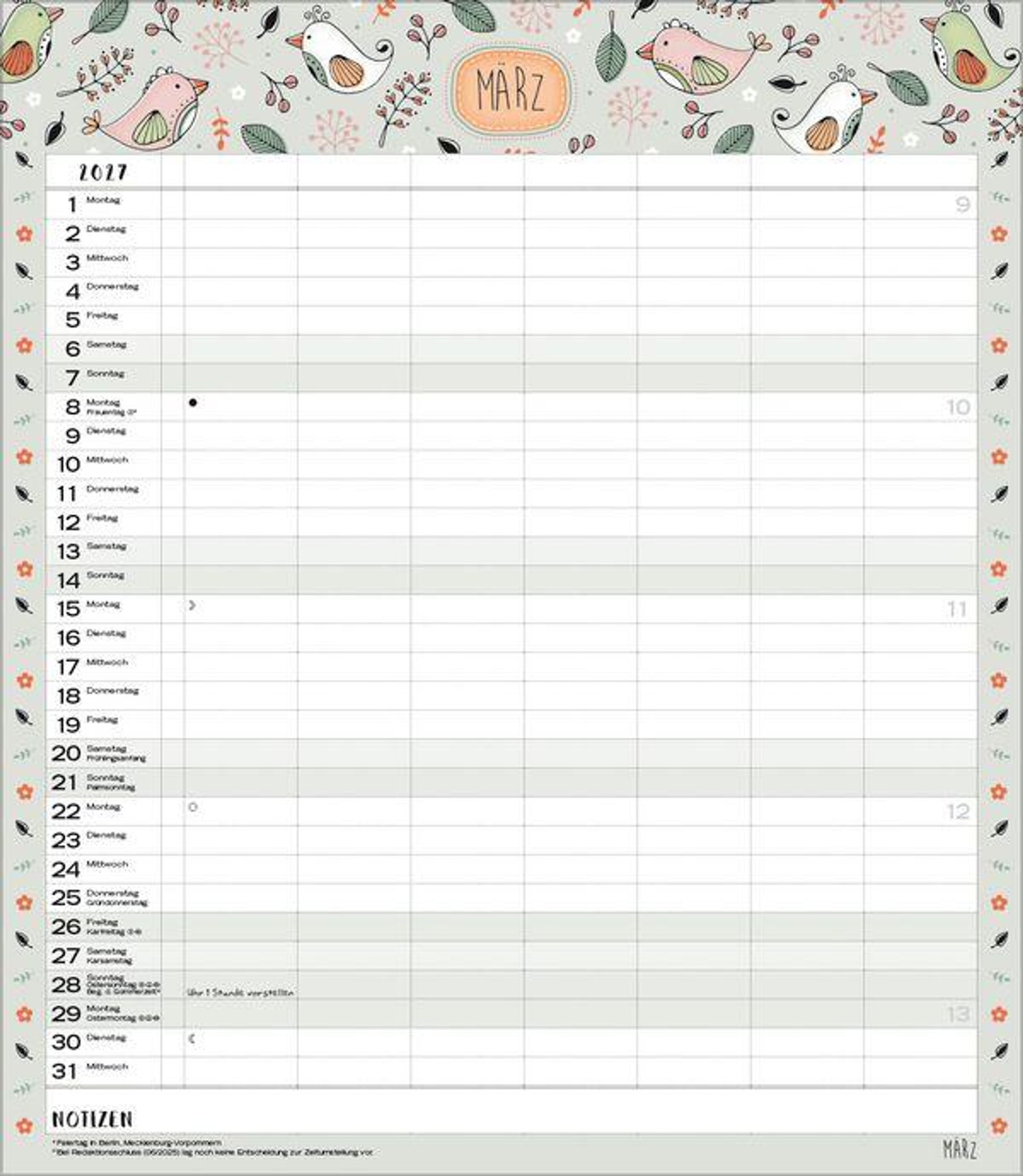 - Terminkalender mit viel Platz für Eintragungen, ohne störende Bilder in den Spalten