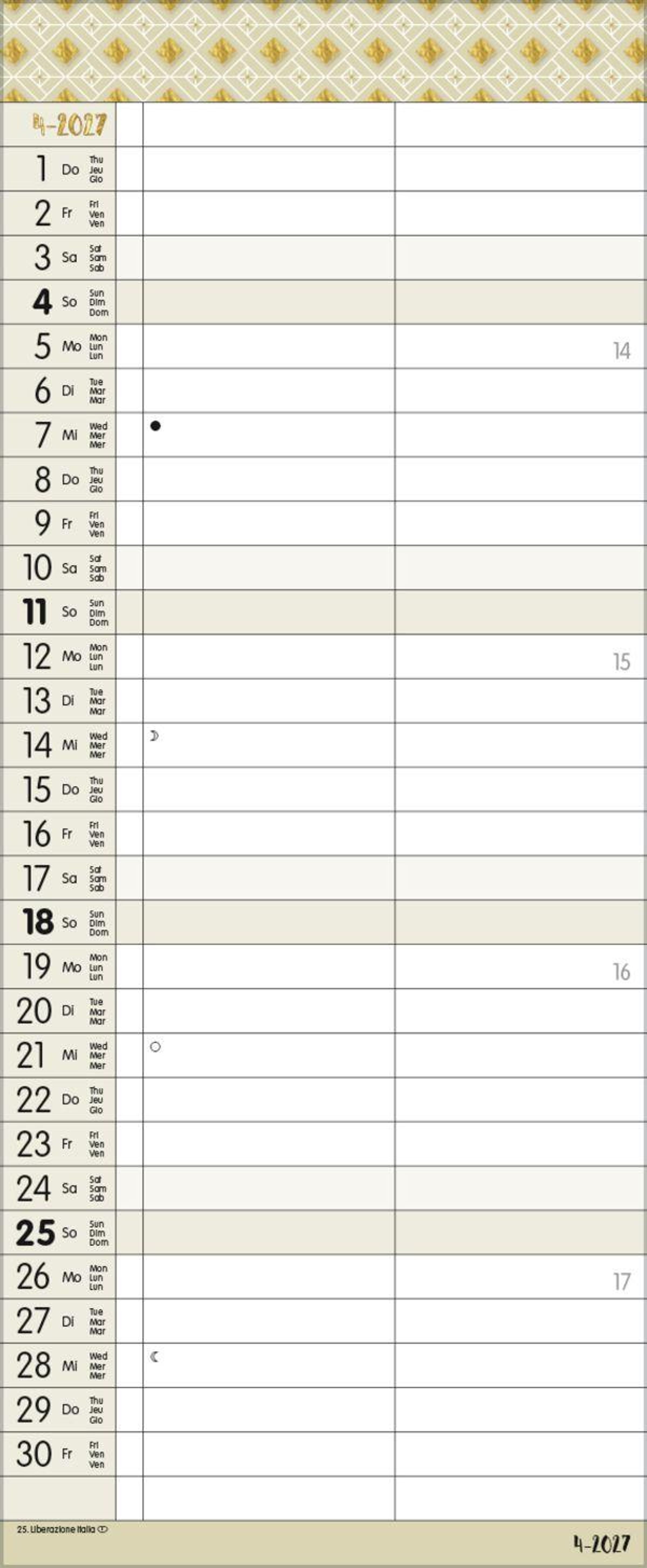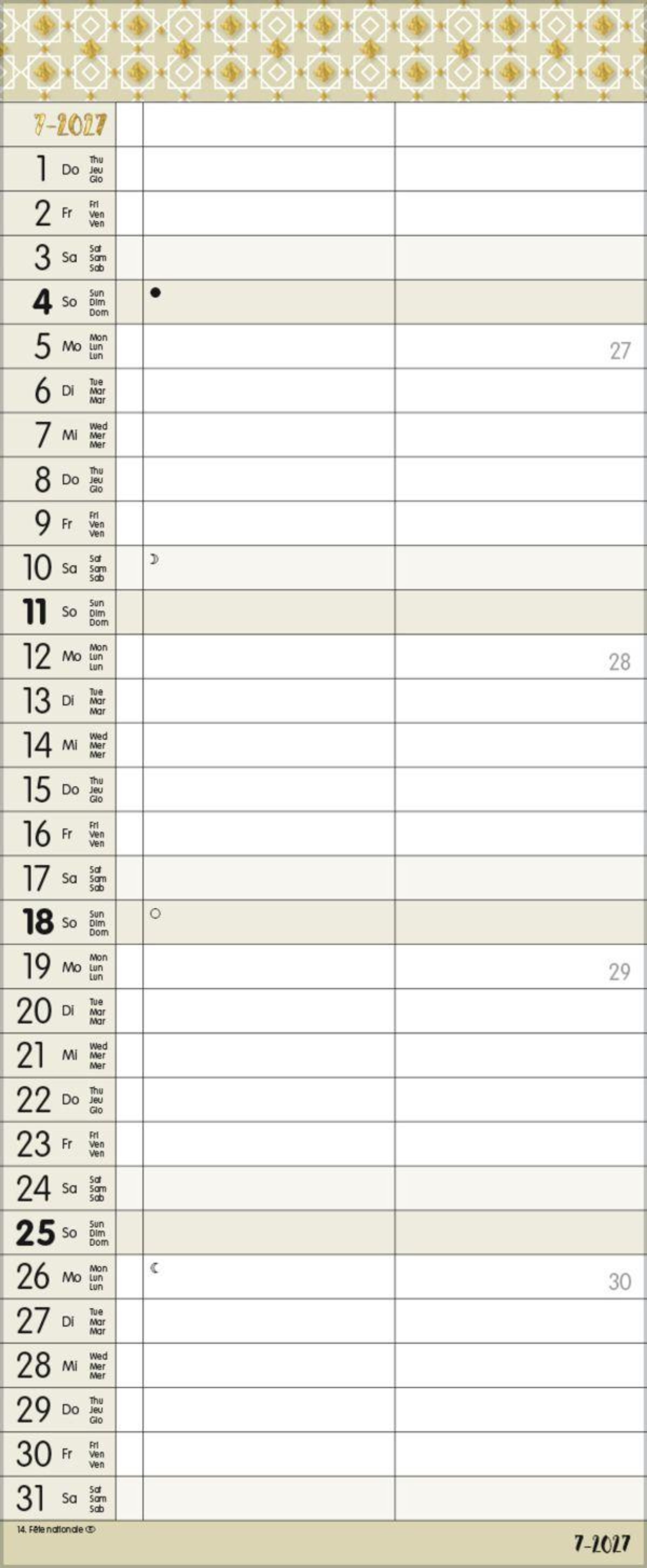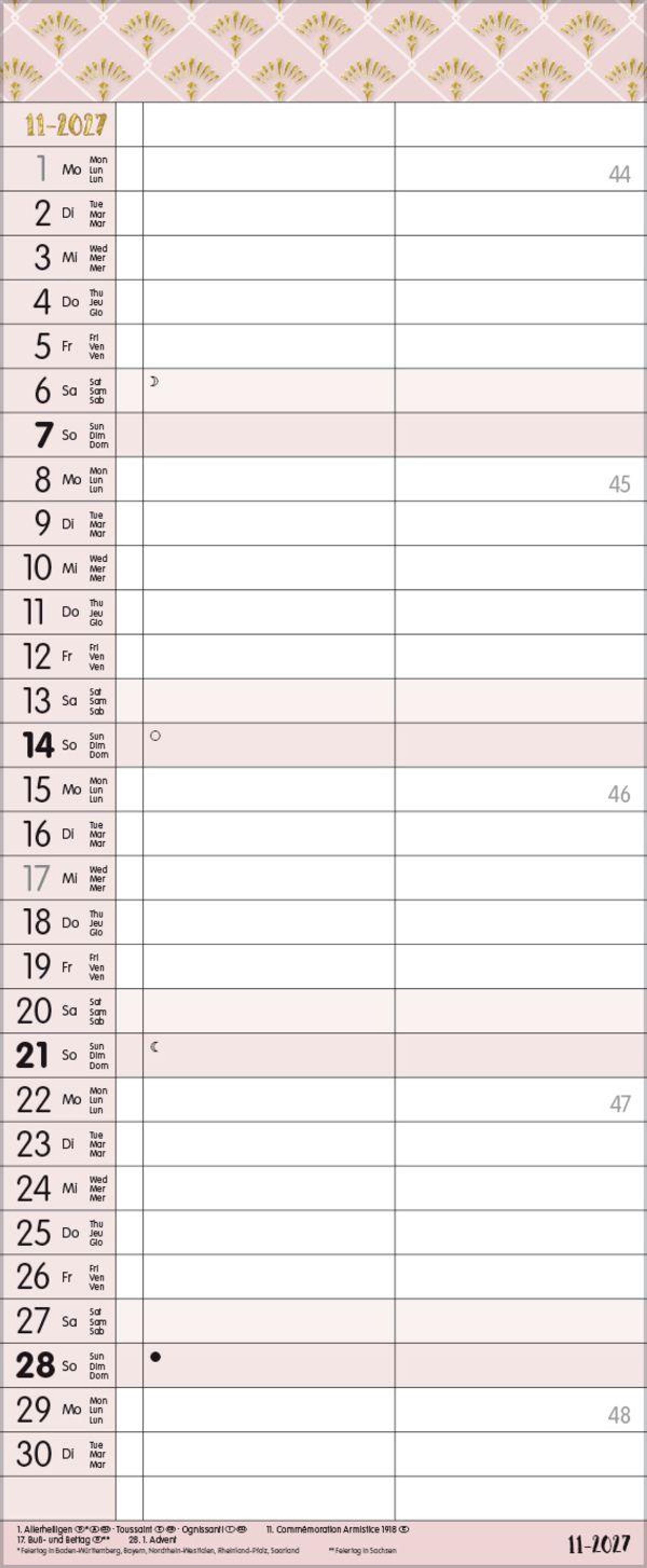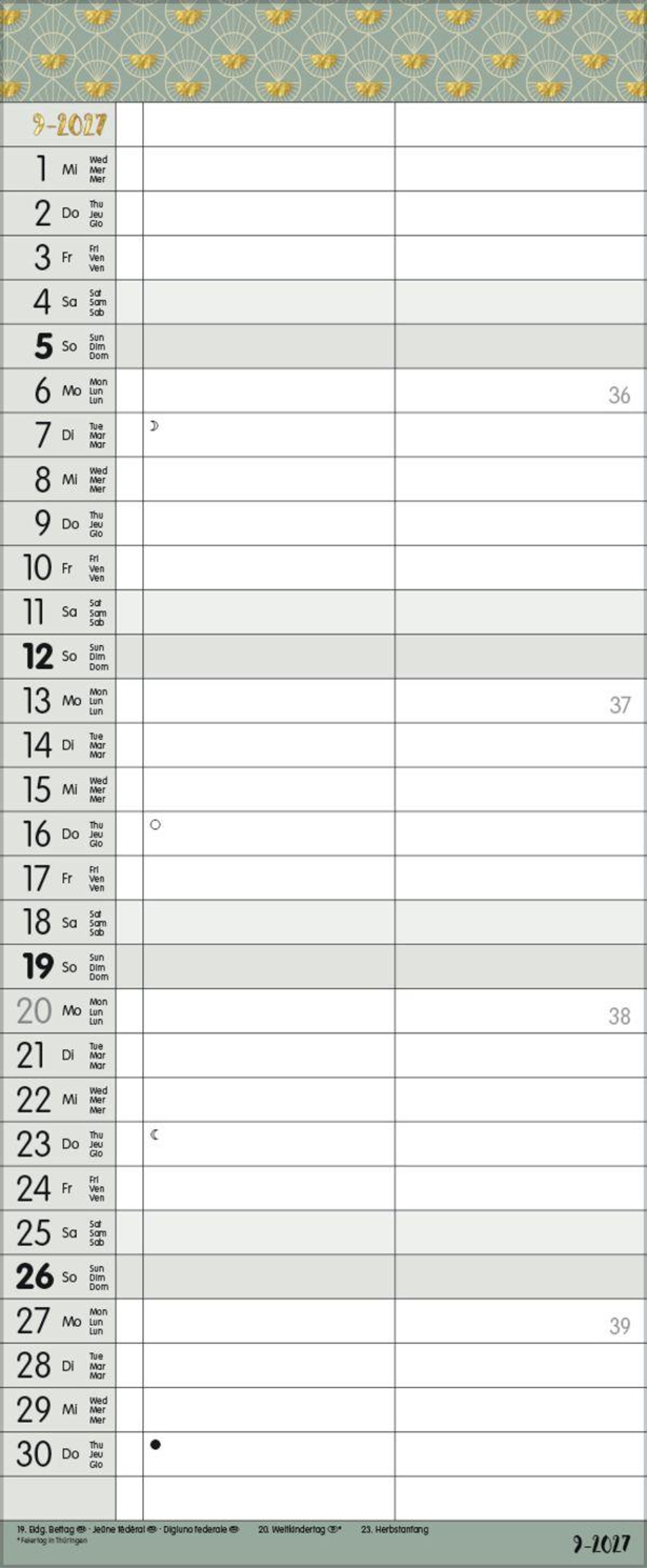 - TypoArt Familienplaner mit 2 breiten Spalten. Edler Familienkalender mit Ferienterminen und Vorschau bis März 2027.