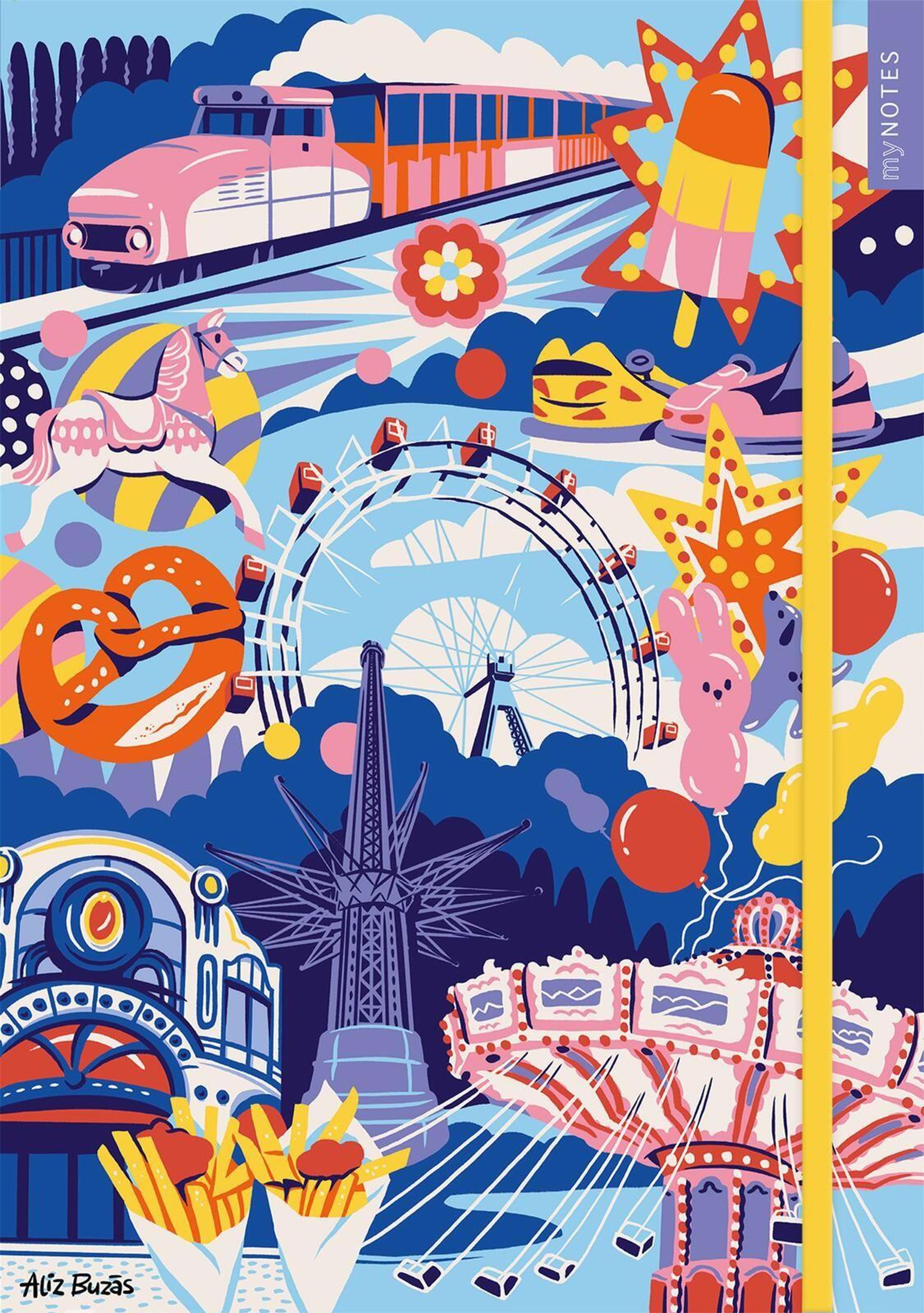 - **Wunderschön gestaltet von Aliz Buzas:**Die verspielte und farbenfrohe Illustration zeigt den ikonischen Wiener Prater in all seiner bunten Vielfalt - ein Stück Wiener Lebensgefühl für deinen Schreibtisch
