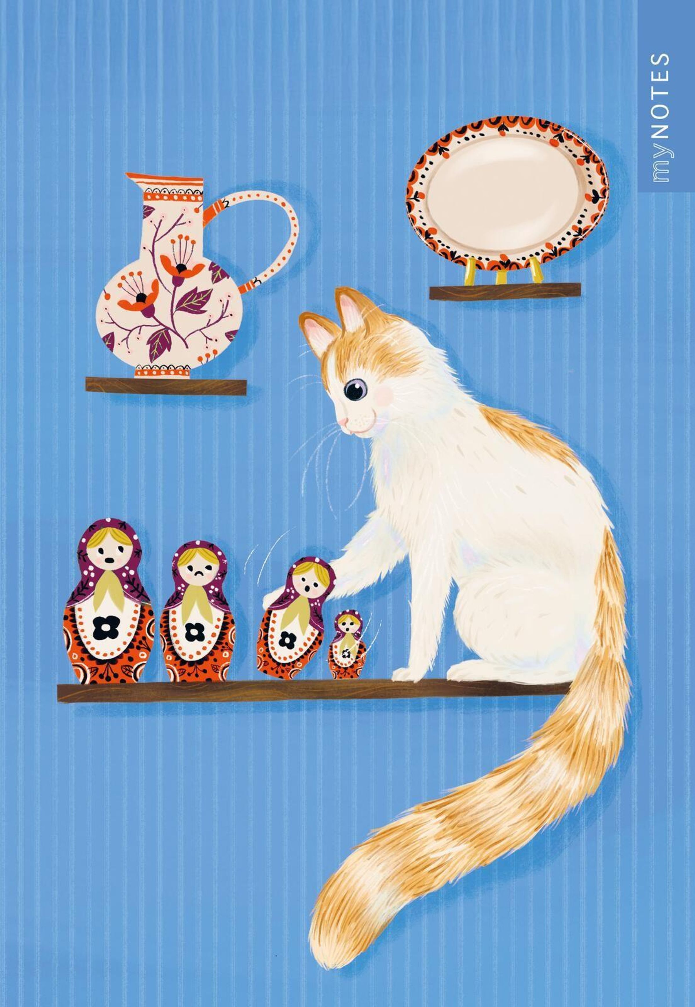 - **Zuckersüßes Katzenmotiv:**Das liebevoll illustrierte Cover mit frechem Stubentiger im Regal auf leuchtend blauem Hintergrund zaubert nicht nur Katzenfans ein Lächeln ins Gesicht und ist ein echter Hingucker auf deinem Schreibtisch