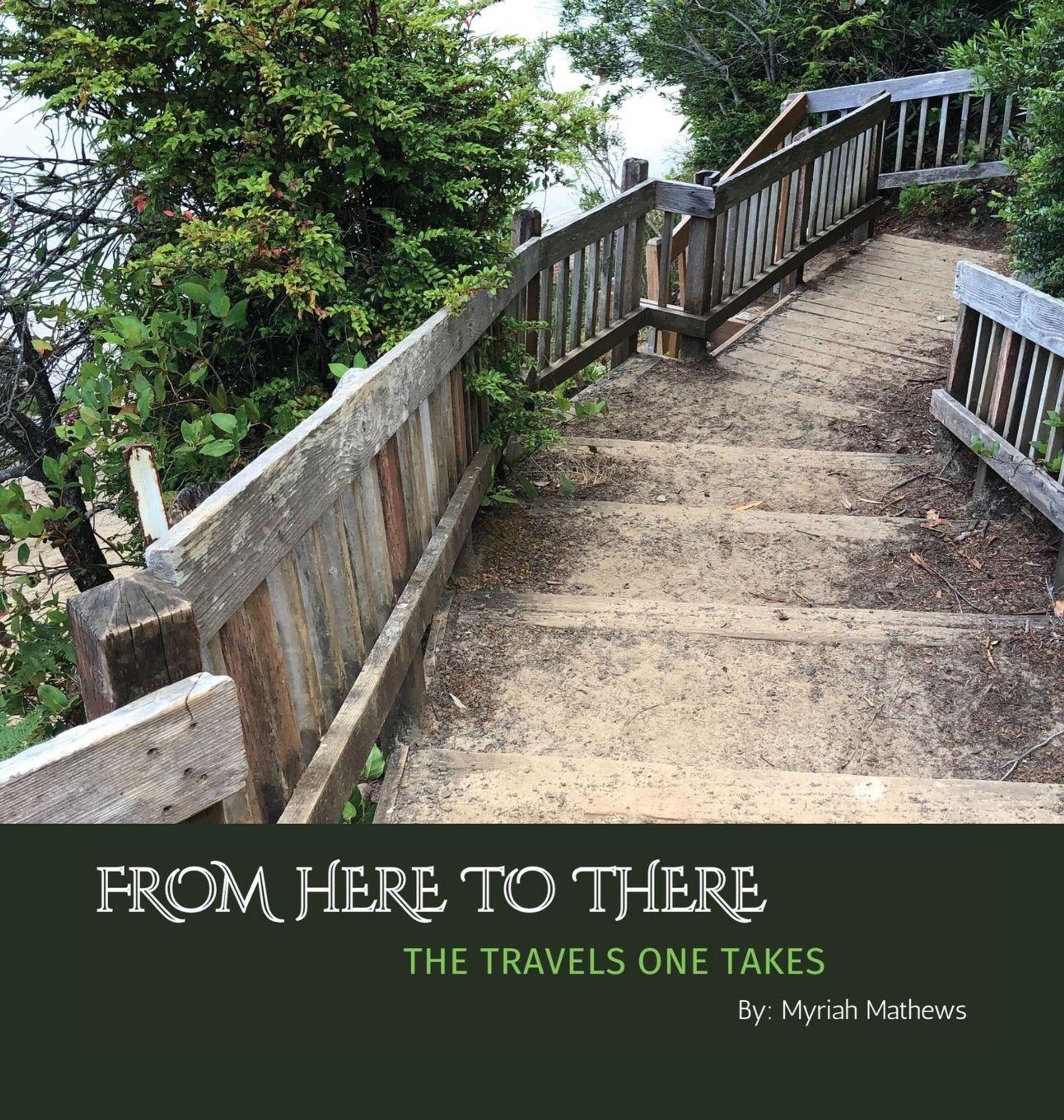 "FROM HERE TO THERE: THE TRAVELS ONE TAKES" von Myriah Mathews. Ein hölzerner Pfad in der Natur., Buch