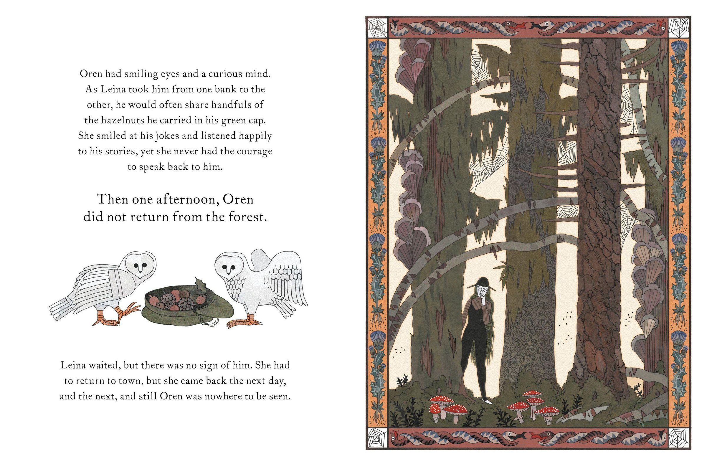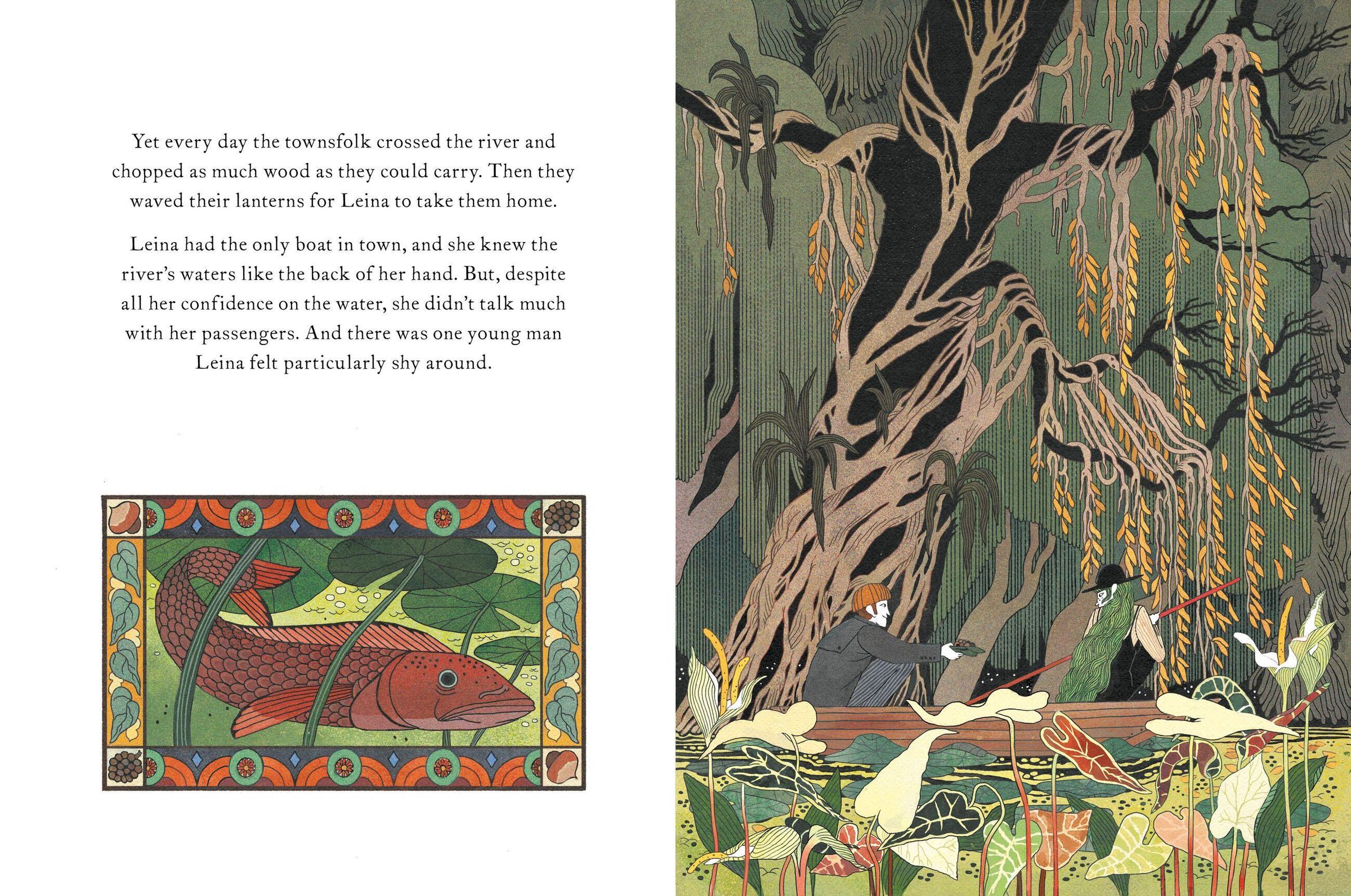 When the townsfolk want to collect wood in the forest across the river, Leina is the one who takes them there and back in her boat. But, one day, her passenger - a young man named Oren - never appears for his return trip. Leina is worried. She's heard that the forest is haunted. That some people who go in never come out. So, when she finally spots the lantern across the river signaling that someone is waiting for her, she's relieved. Only, it isn't Oren. It's a strange toad who calls himself the Lord of the Toadstools. And Leina's odyssey to uncover the mystery of the missing townspeople is about to begin ...