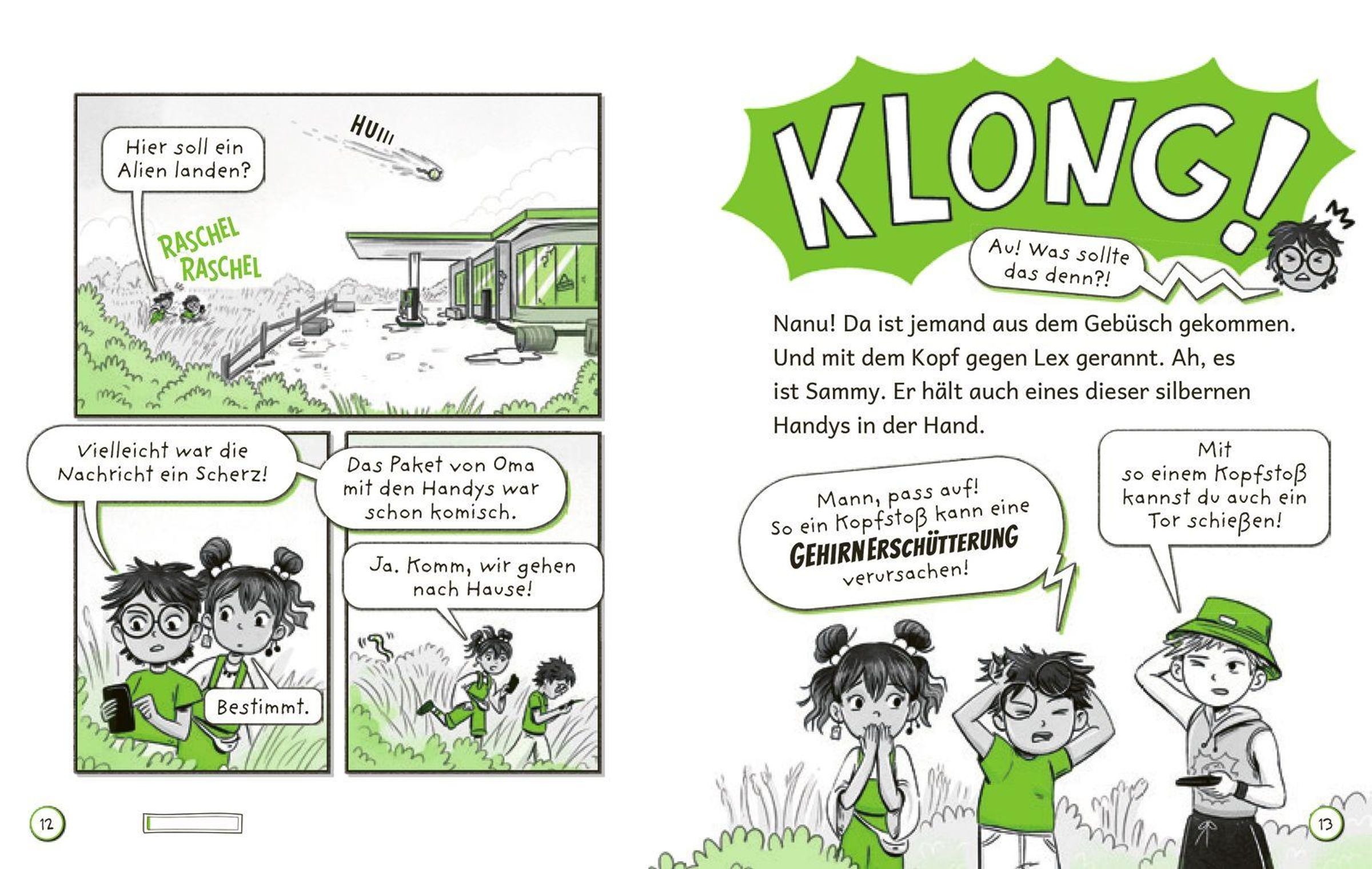 Als Lex, Lupe und Sammy eine merkwürdige Nachricht erhalten, stolpern sie in das abgefahrenste Abenteuer ihres Lebens. Mit von der Partie: Ein kugelrundes Alien mit Schoko-Sucht namens Koko, schleimige Monster, schräge Agenten-Gadgets - und N. A.S. E., die geheime Alien-Agentenorganisation mit einem besonderen Auftrag. Die Freunde müssen knifflige Rätsel lösen, Koko retten und eine gefährliche Schurkin stoppen! Also eigentlich ein ganz normaler Tag im Leben von Alien-Agenten.