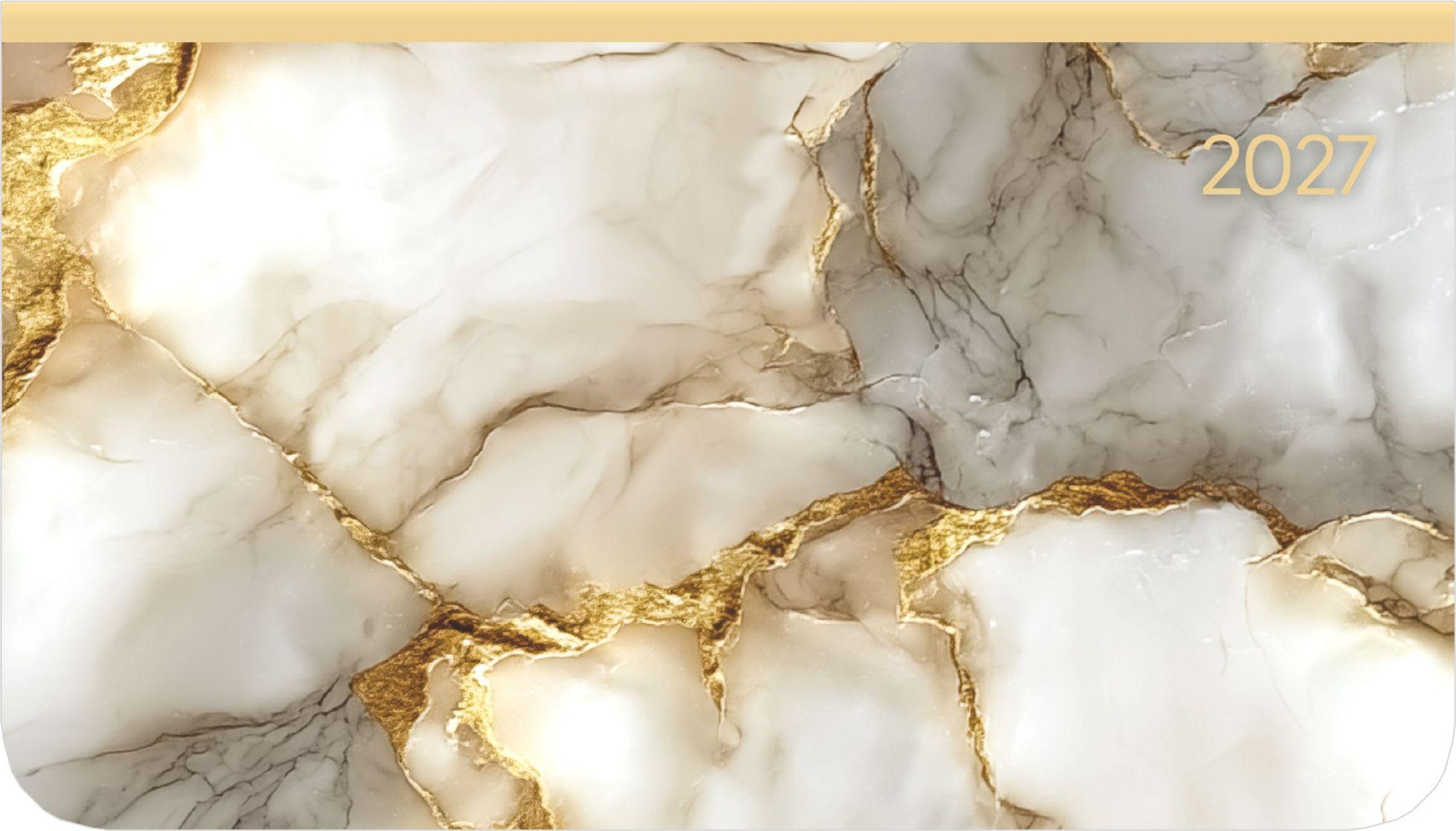 Organisieren Sie Ihren Alltag stilvoll -- mit dem „MyTimer Pad Marble 2027". Das elegante Marmordesign trifft auf ein praktisches Querformat und eine durchdachte Wochenübersicht -- perfekt für Schule, Beruf und unterwegs.