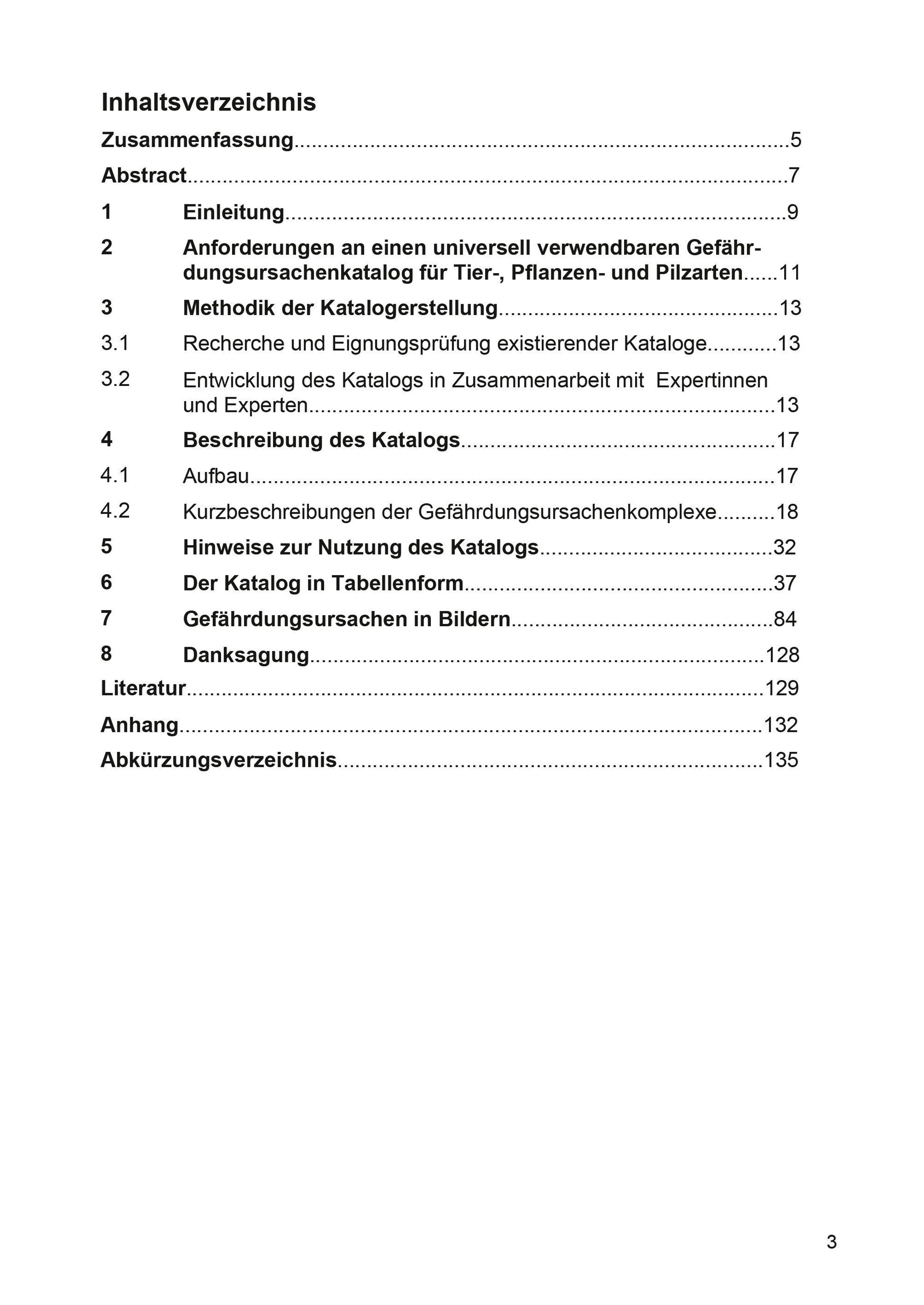 Darüber hinaus enthält die vorliegende Publikation einen Abriss zur Methodik der Erstellung, eine Beschreibung sowie Hinweise zur Nutzung des Katalogs. Vervollständigt wird der Band durch Abbildungen einiger Gefährdungsursachen.