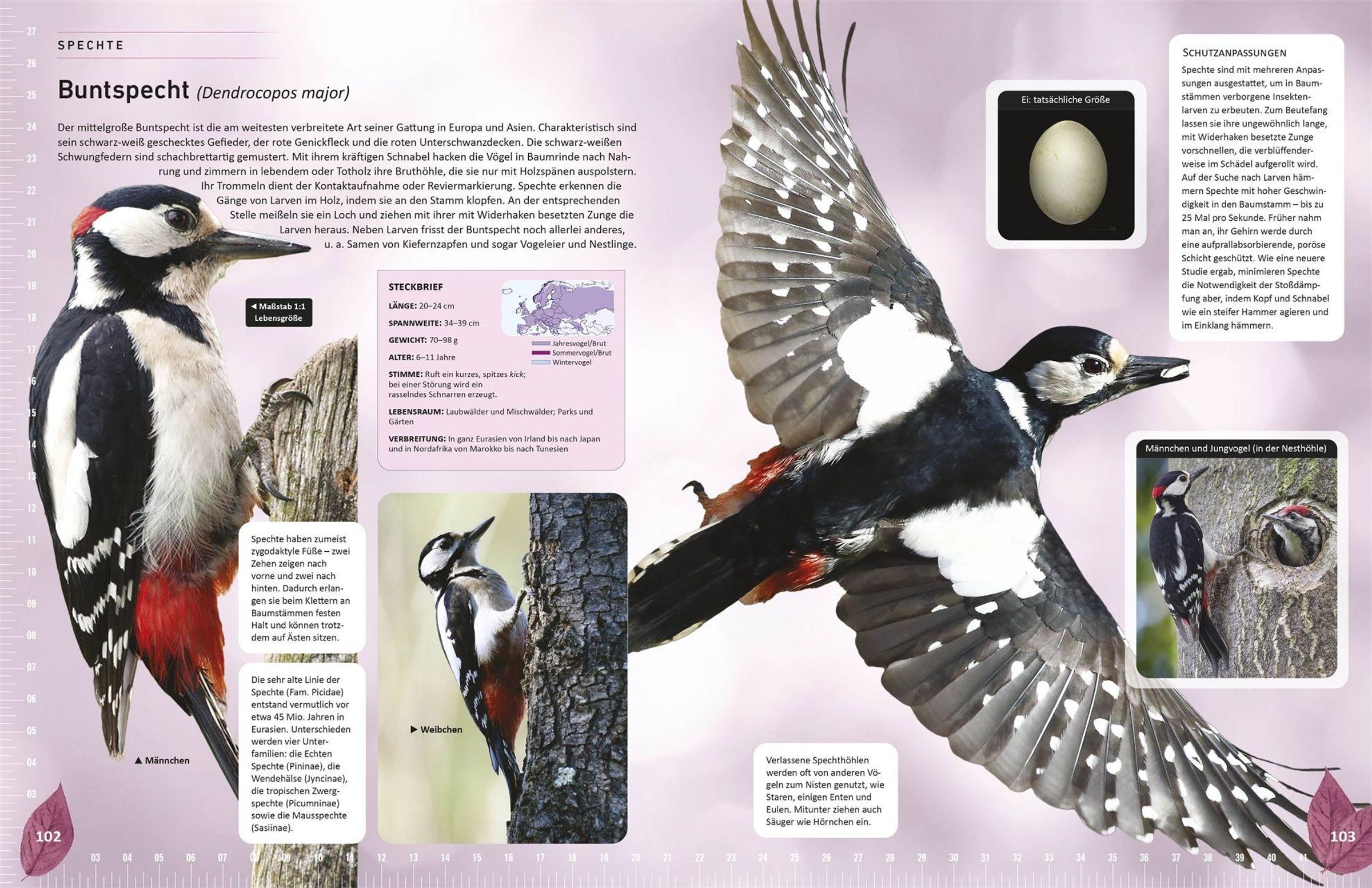 Dieses reich bebilderte Buch über heimische Vögel gewährt einen umfassenden Einblick in die Vogelwelt Deutschlands - von ihrer Entstehung bis zu den heute bei uns lebenden Vogelarten . Übersichtliche, doppelseitige Porträts stellen 100 heimische Vögel in Originalgröße vor. Jeder Vogel-Steckbrief enthält spannende Fakten zu Lebensraum, Verbreitung und typischen Merkmalen sowie ein lebensgroßes Foto des jeweiligen Vogels. Ergänzende Seiten widmen sich Themen wie Nestbau , Vogelzug und Vogelschutz . Nützliche Tipps zu Ausrüstung und den besten Standorten zur Vogelbeobachtung runden das Vogel-Buch ab. Ein umfassender und bildgewaltiger Begleiter für Naturfans, die die Vielfalt der heimischen Vogelwelt schätzen.