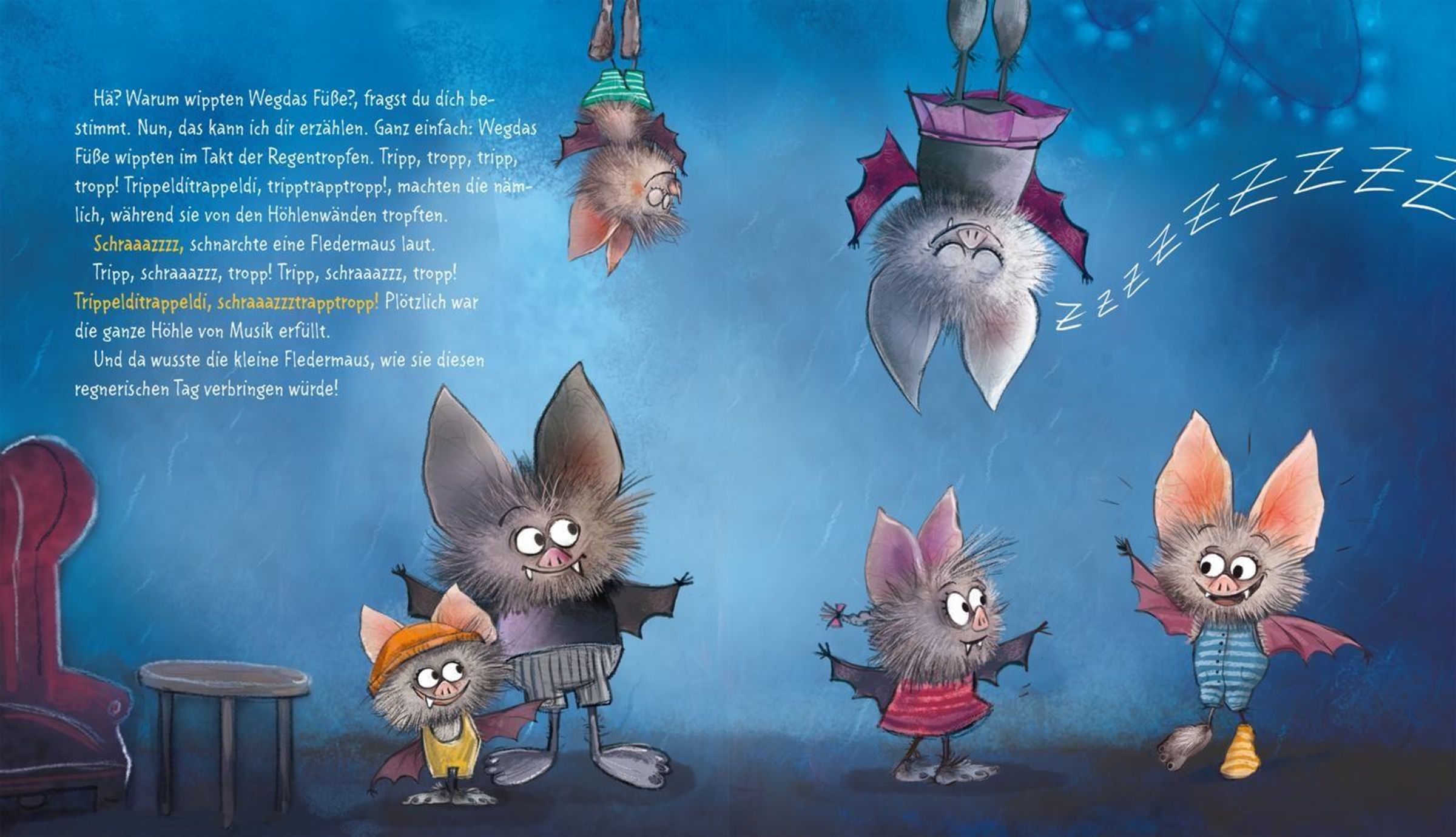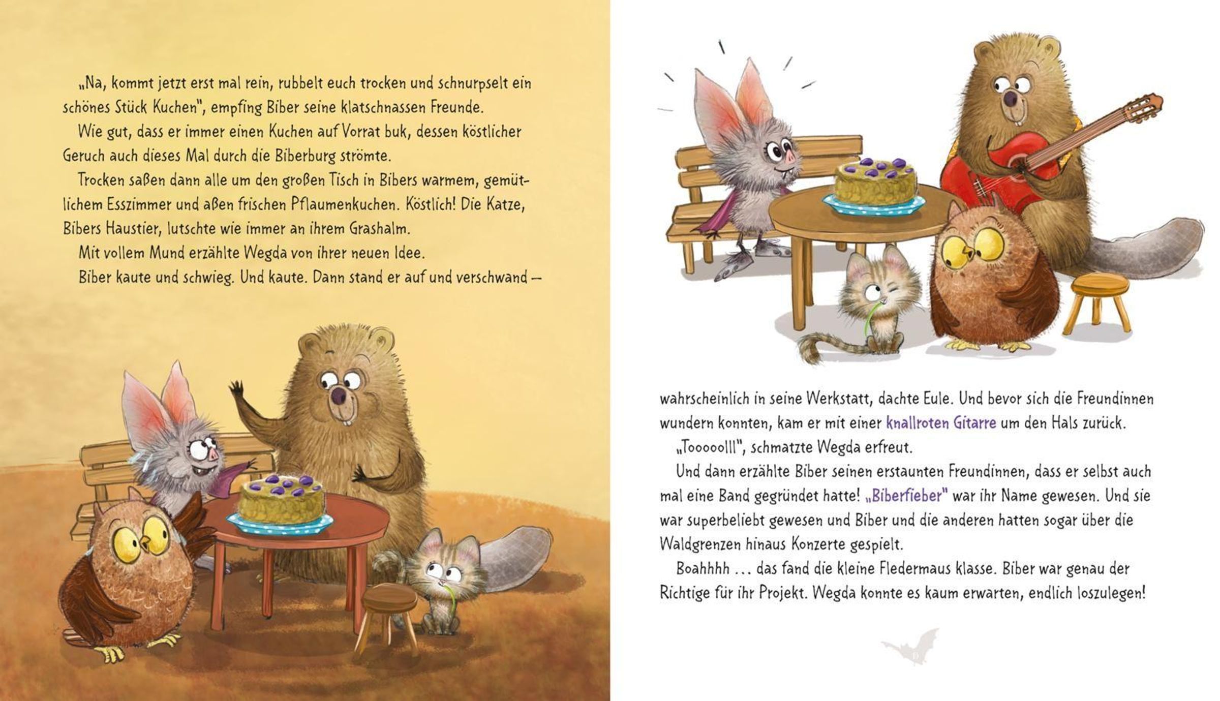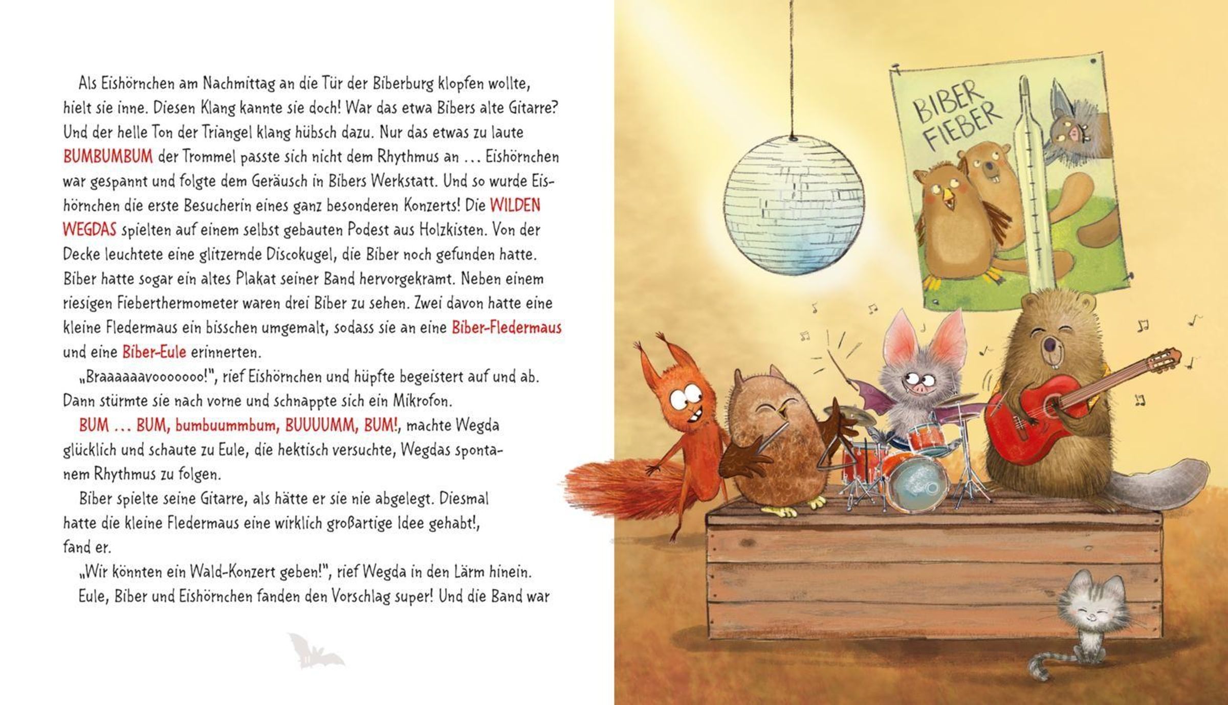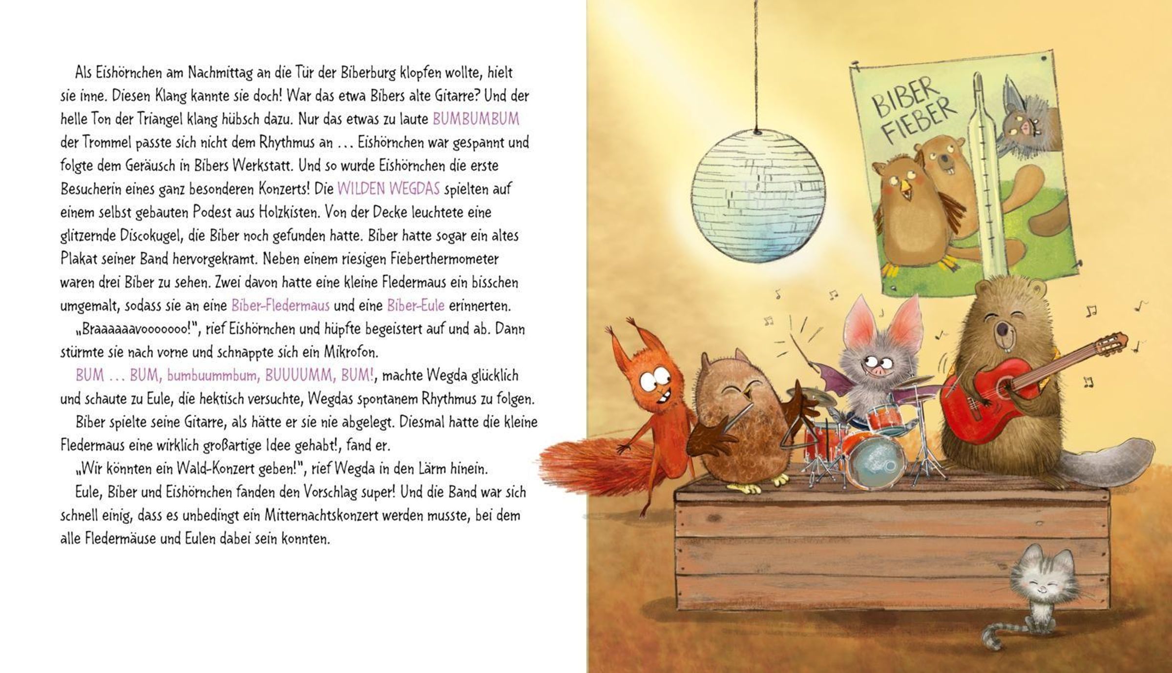 Die süßeste Fledermaus aller Zeiten ist zurück! In diesem wundervollen Vorlesebuch erlebt die kleine Fledermaus mit den großen Füßen mit ihren tierischen Freund*innen wieder jede Menge Alltagsabenteuer. Wegda macht Musik - und zwar am Schlagzeug, weil das soo schön laut ist! Sie wünscht sich einen Garten und sät Kresse aus - weil die soo schnell wächst und Wegda natürlich nicht die geduldigste Fledermaus der Welt ist. Außerdem macht sie einen Ausflug (mit Übernachtung, yippie!) und geht zum Kinder- ... äh, Waldtierturnen. Als Wegda traurig ist, wird sie getröstet. Und als Biber Hilfe braucht, ist Wegda für ihn da!