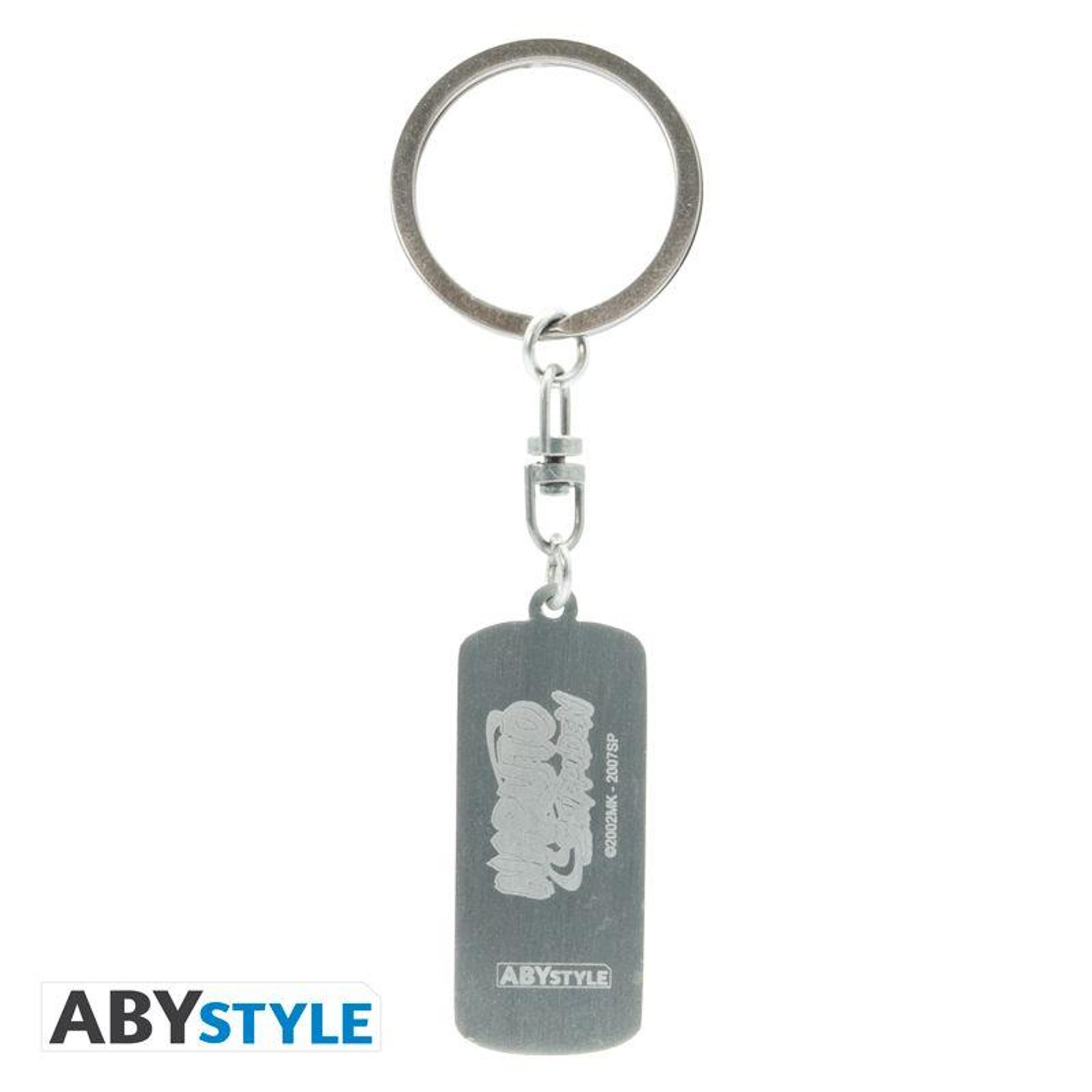 This Naruto Shippuden keychain by ABYstyle represents the metal plate that Itachi wears after deserting the village of Konoha.