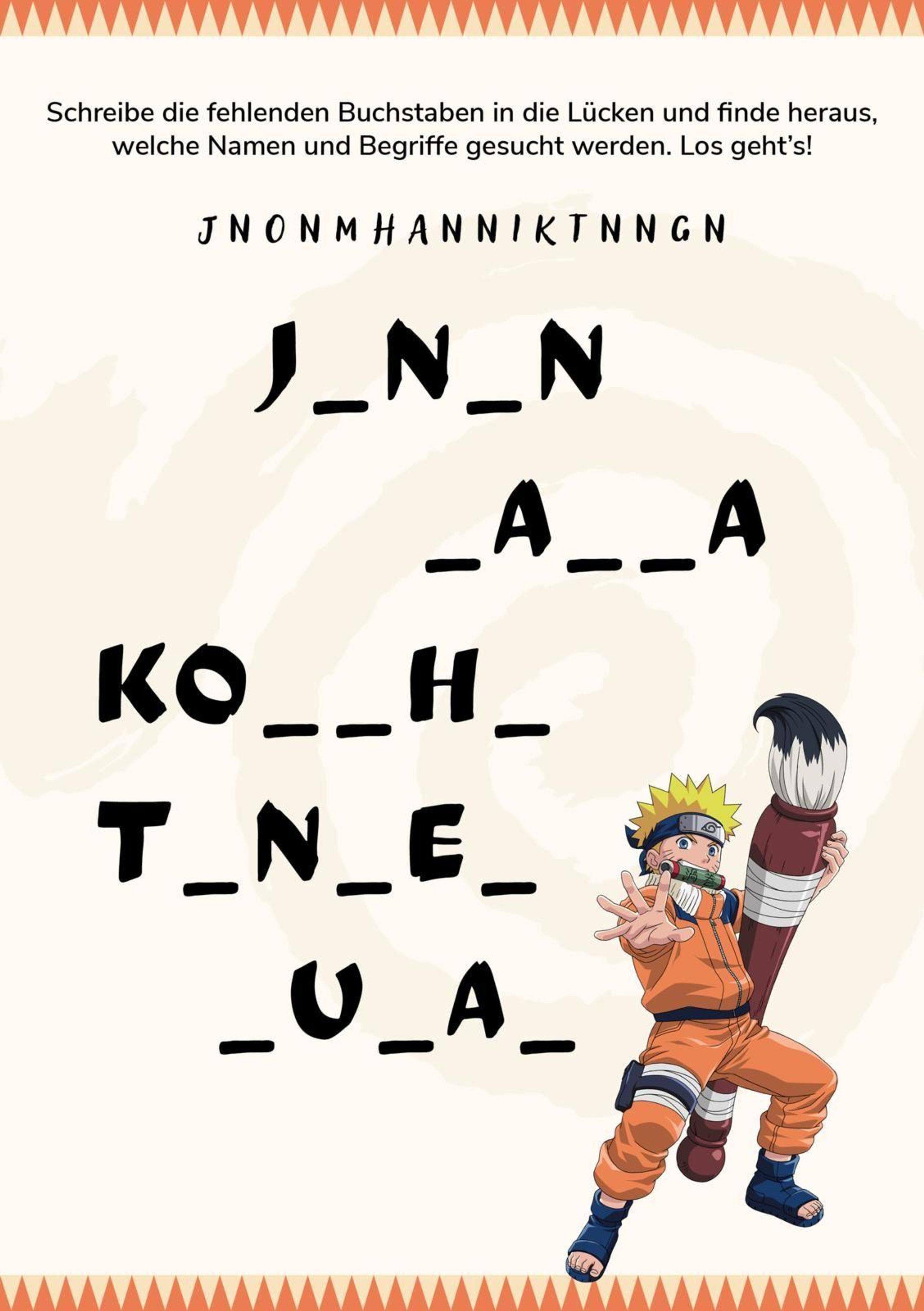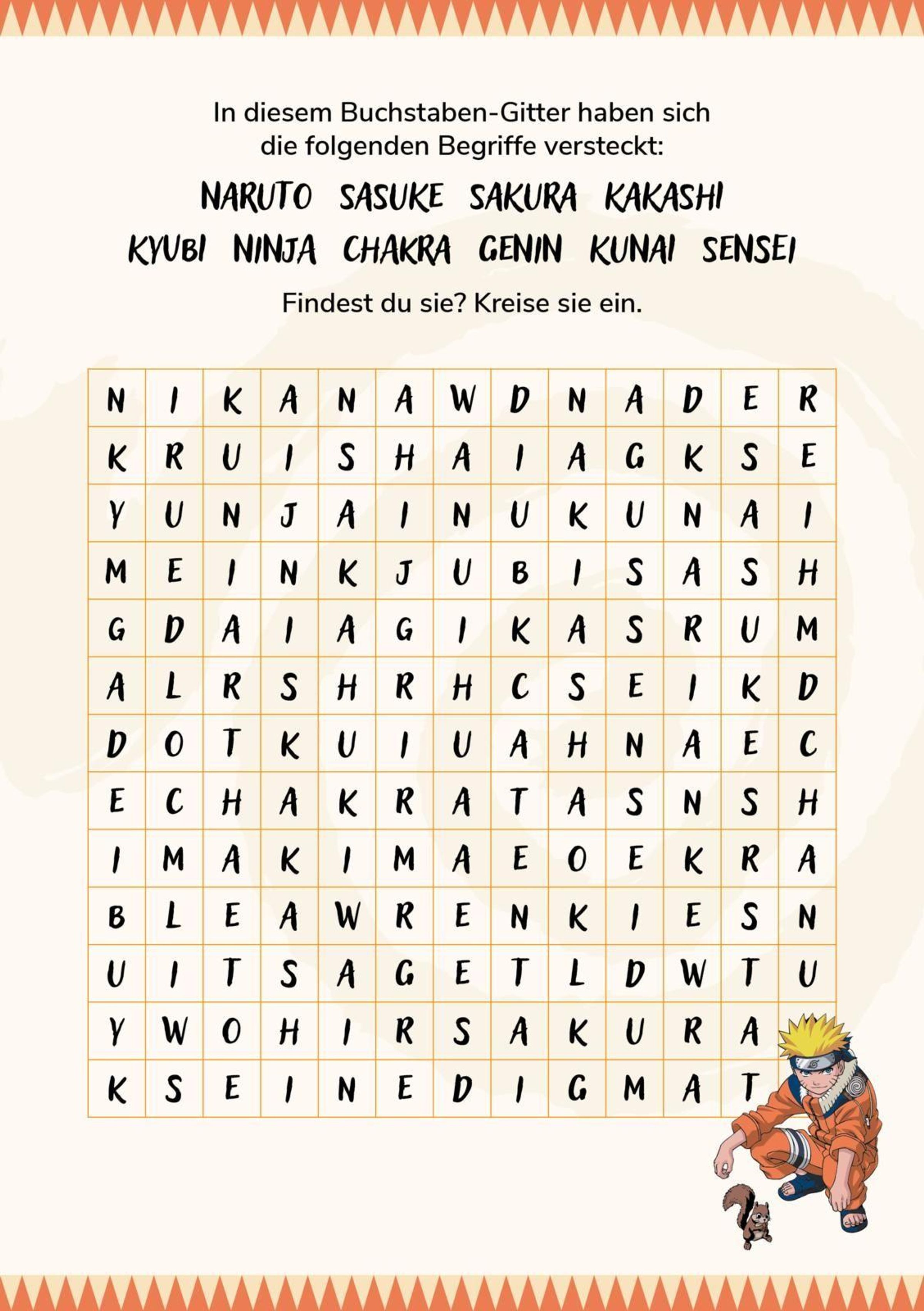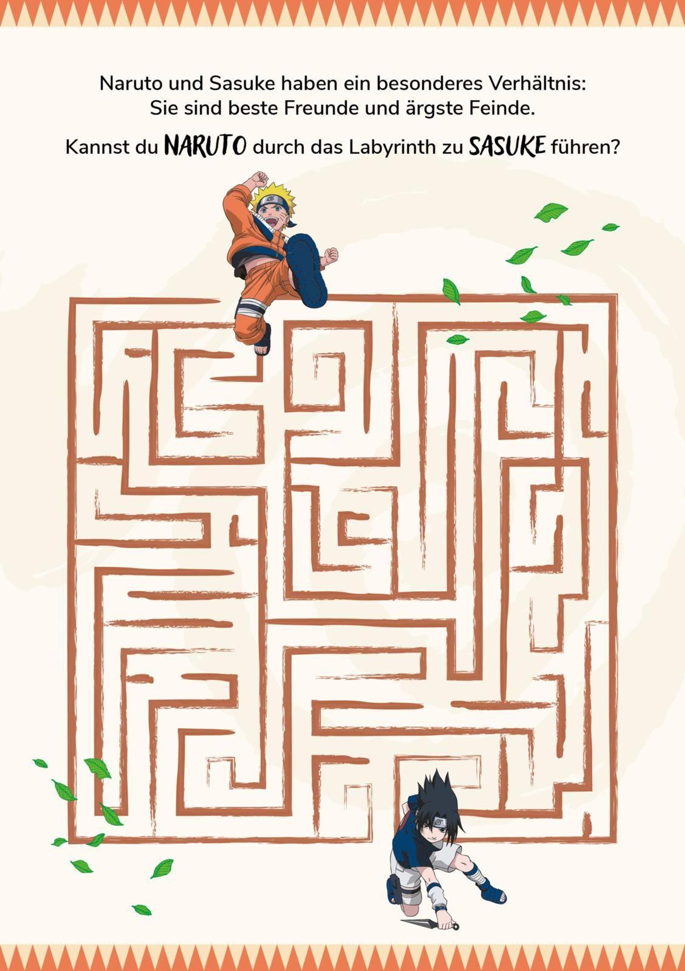 Dieser Beschäftigungsblock enthält Rätsel, Labyrinthe, Denkspiele, Buchstabengitter und vieles mehr. Die Ninjas aus NARUTO führen dabei durch die Aufgaben.