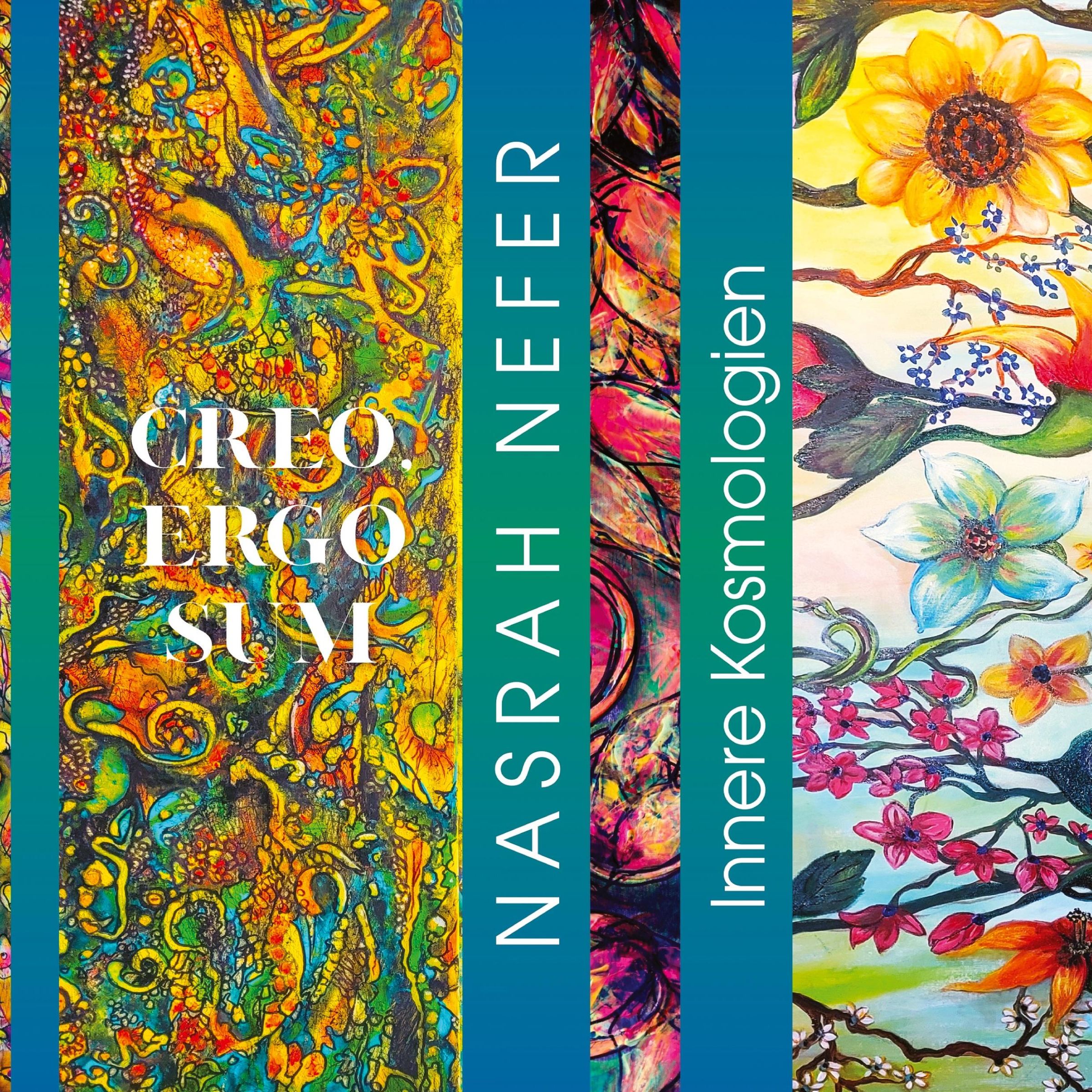 "CREO ERGO SUM", "NASRAH NEFER", "Innere Kosmologien". Bunte, abstrakte und florale Illustrationen mit lebhaften Farben., Buch