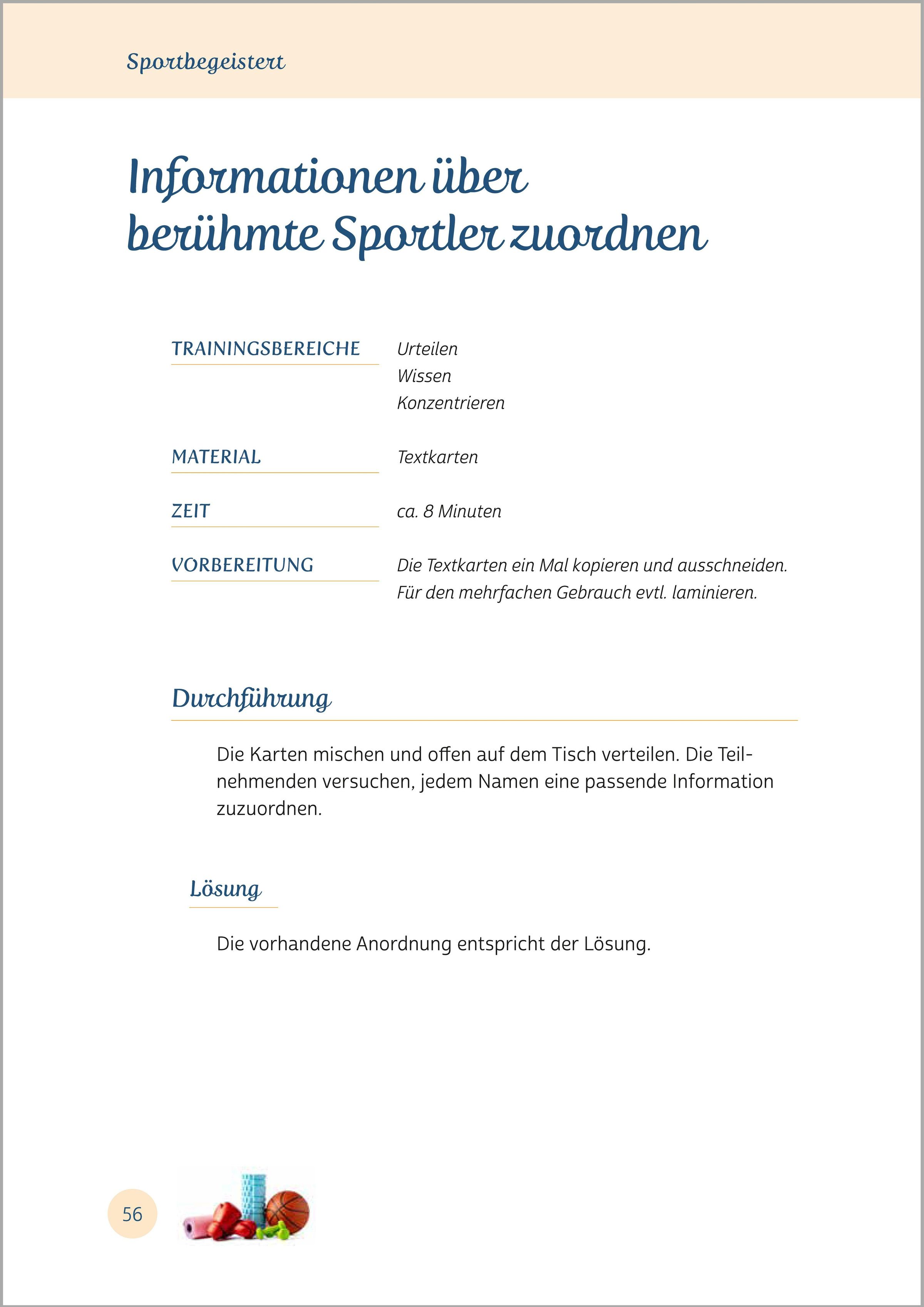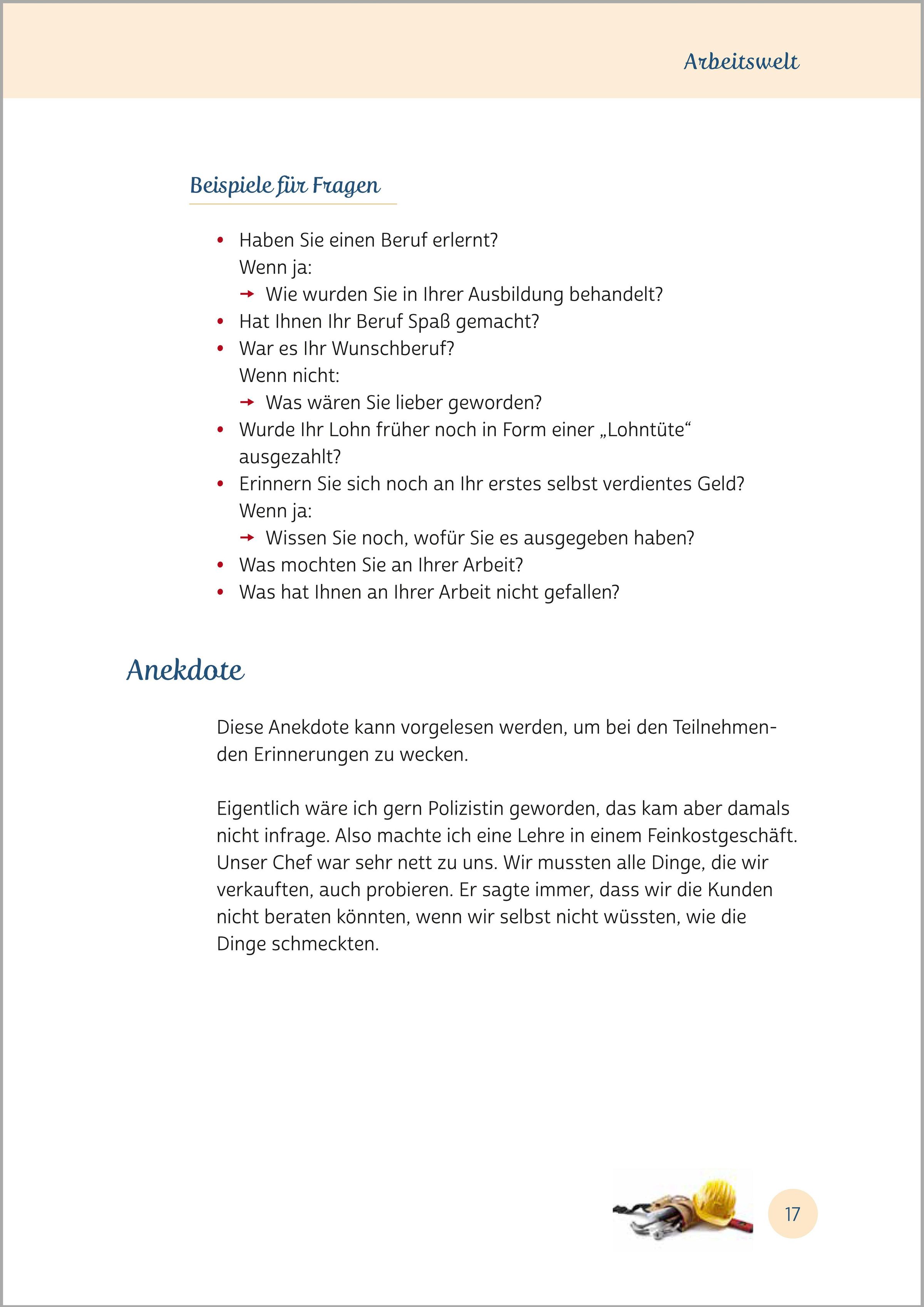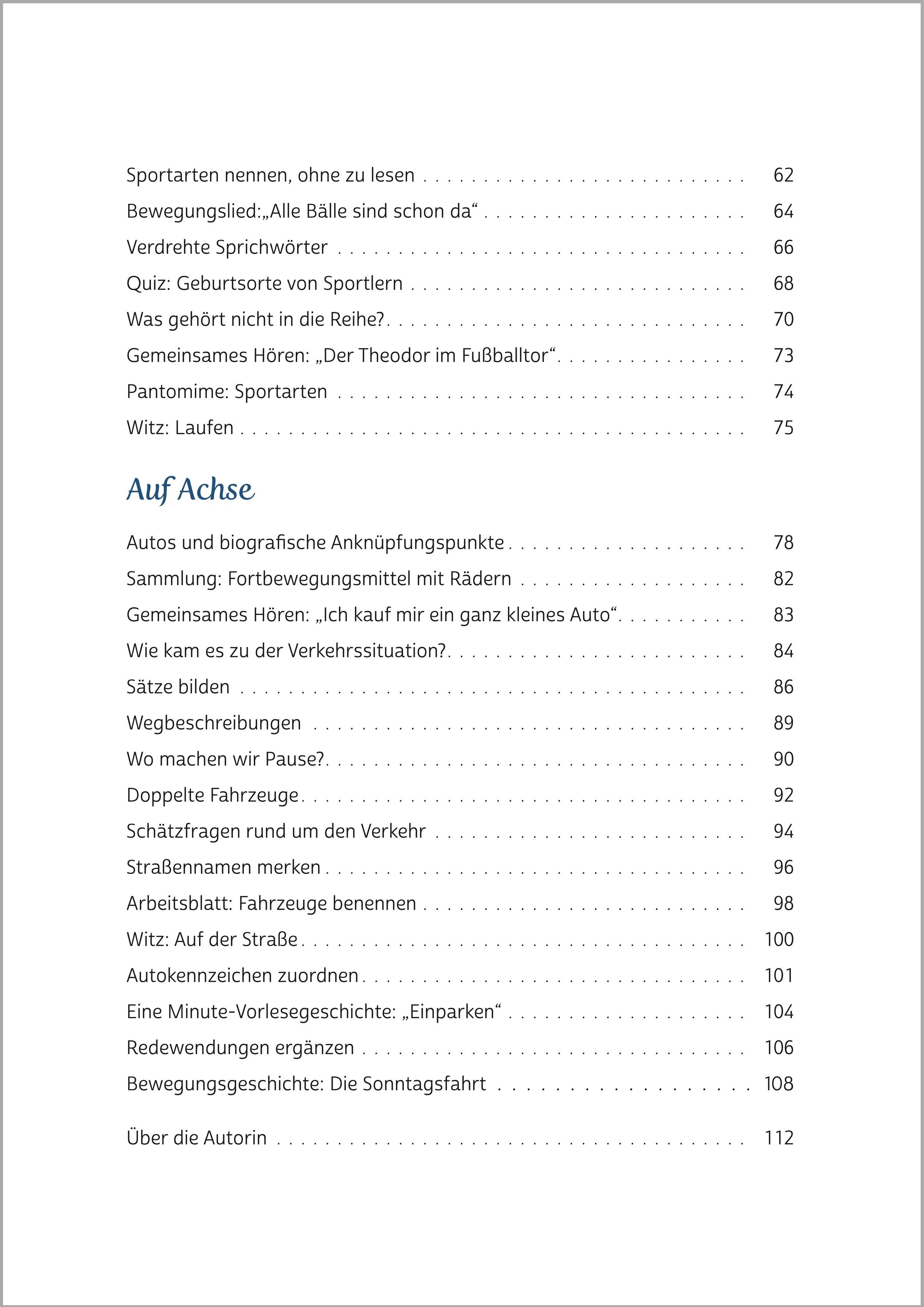 Ob Gesprächsimpulse, Rätsel oder Sinnesanregungen - alles ist alltagsnah gestaltet und bietet zahlreiche Anknüpfungspunkte für persönliche Erlebnisse und Erinnerungen.