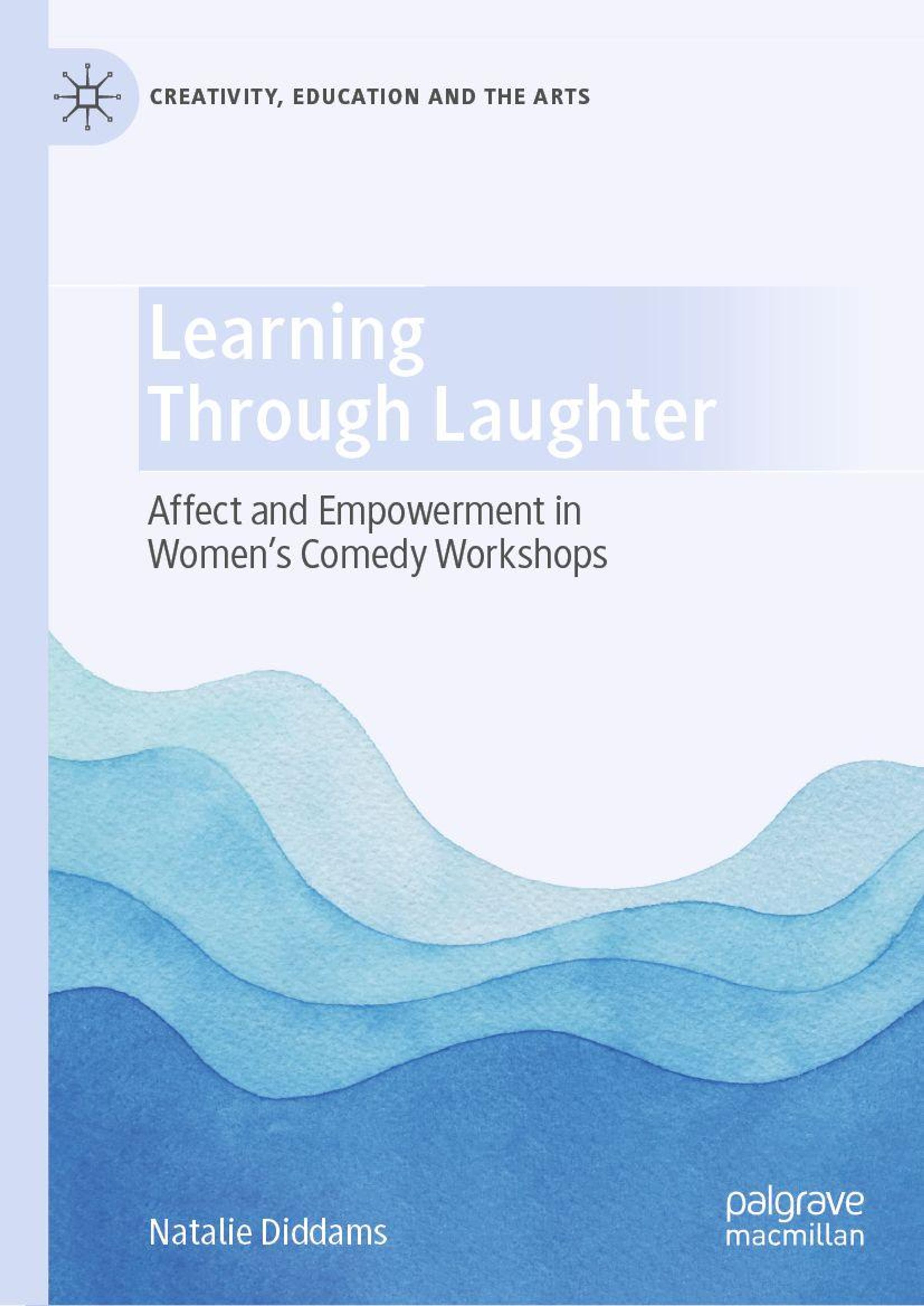 "Learning Through Laughter" und "Natalie Diddams" in großen Lettern. Aquarellartige, blaue Wellen im Hintergrund., Buch