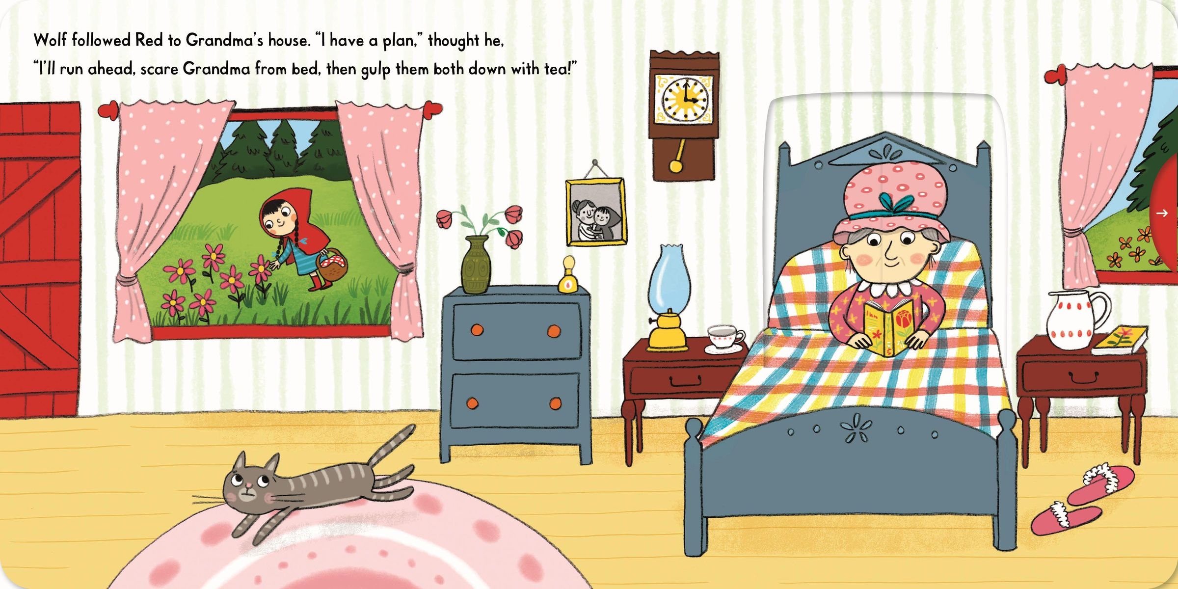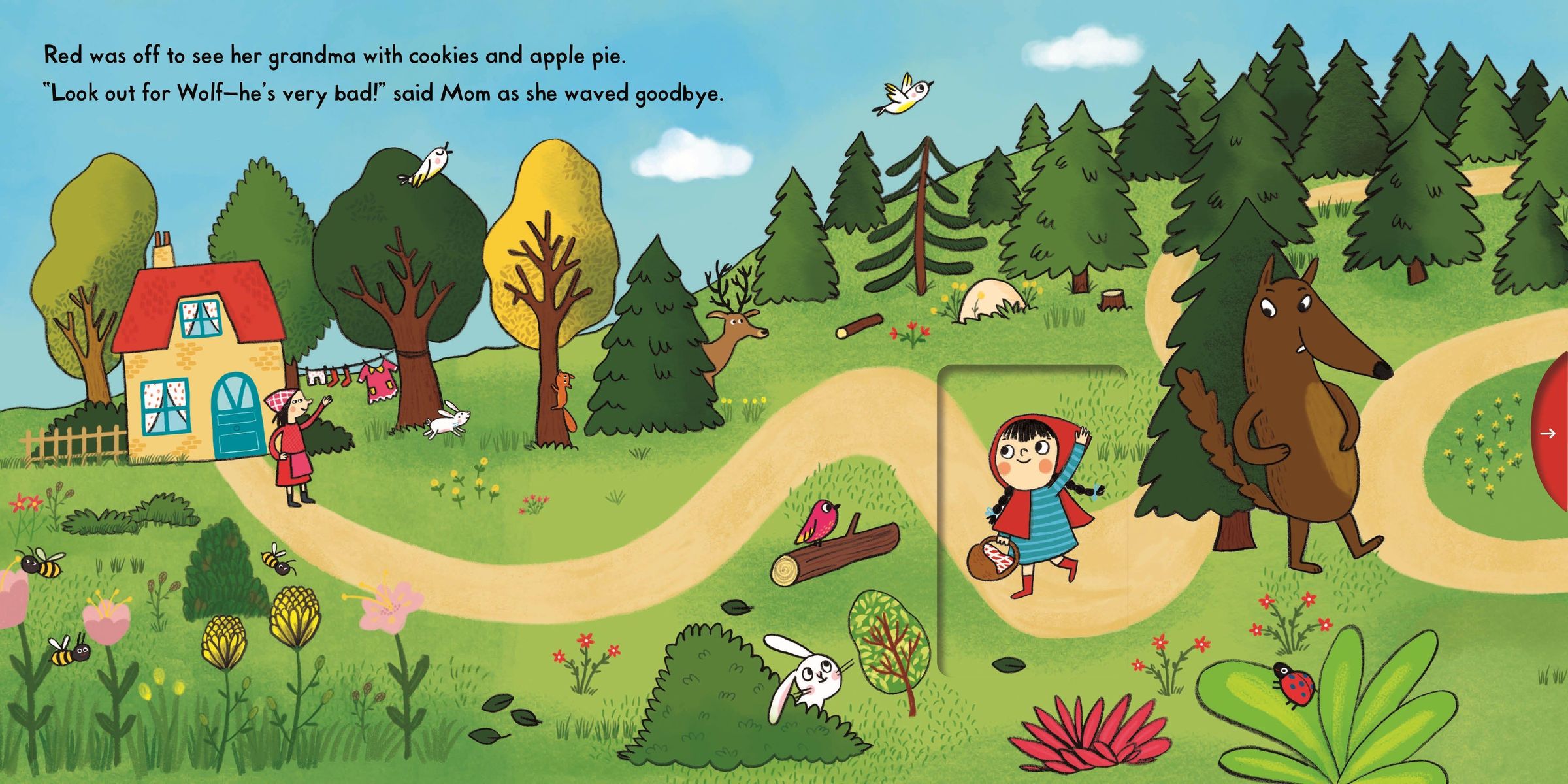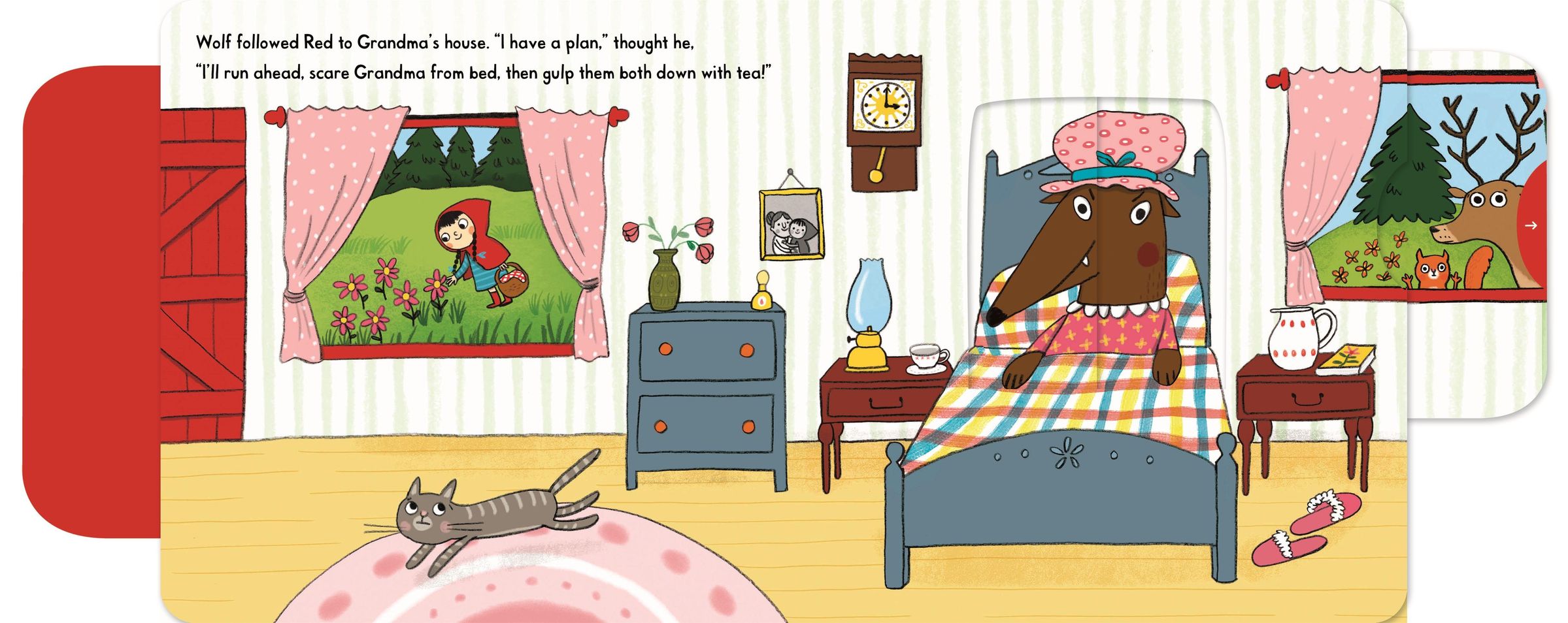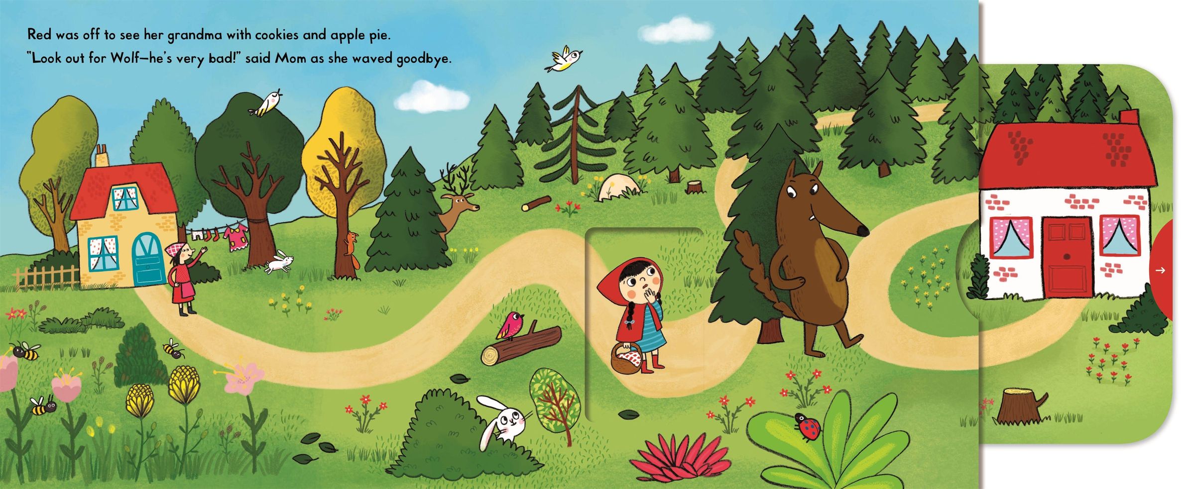 Push, pull, and slide the scenes to bring the classic fairy tale of Little Red Riding Hood to life.