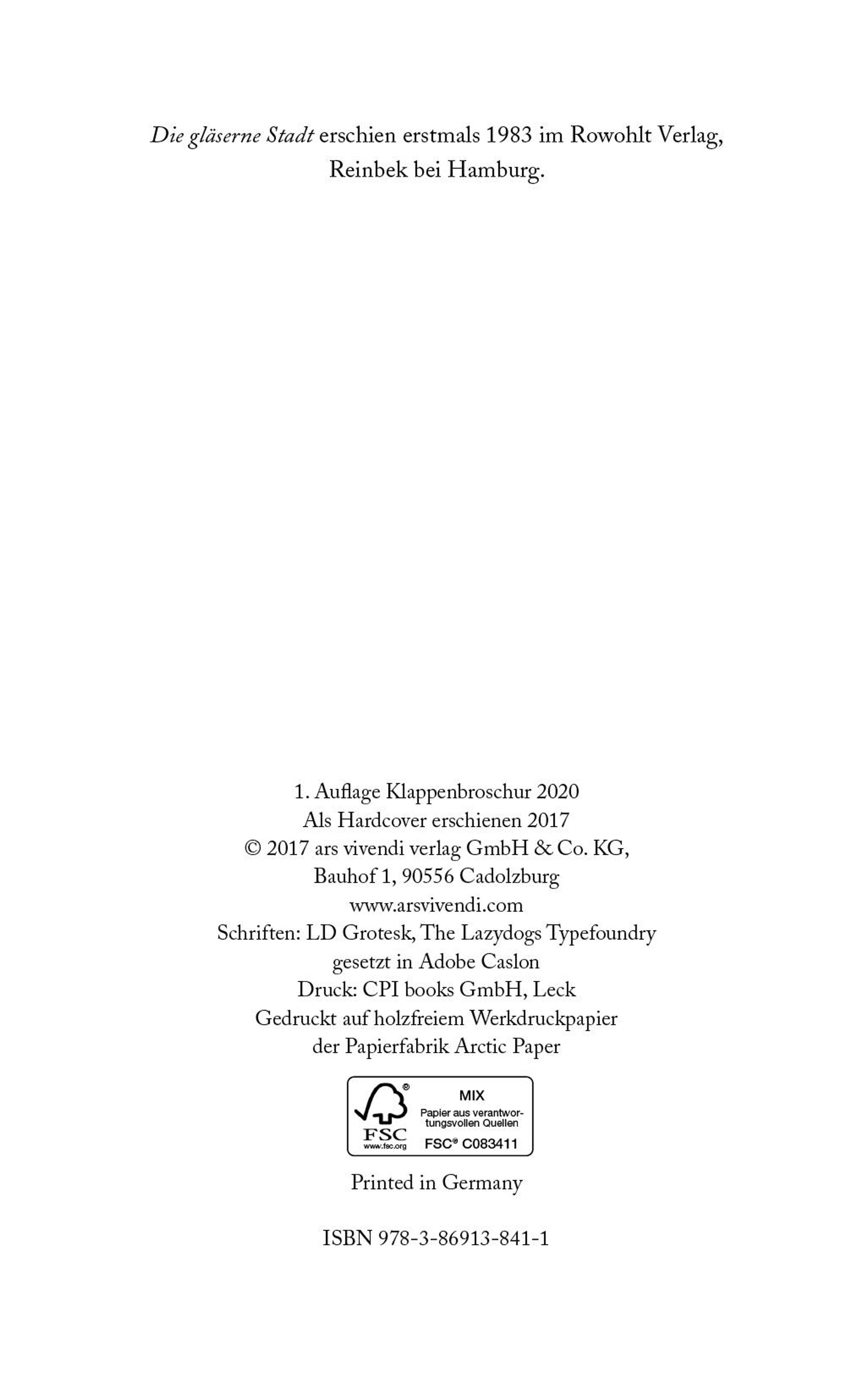 Natascha Wodin: Die gläserne Stadt, Flexibler Einband