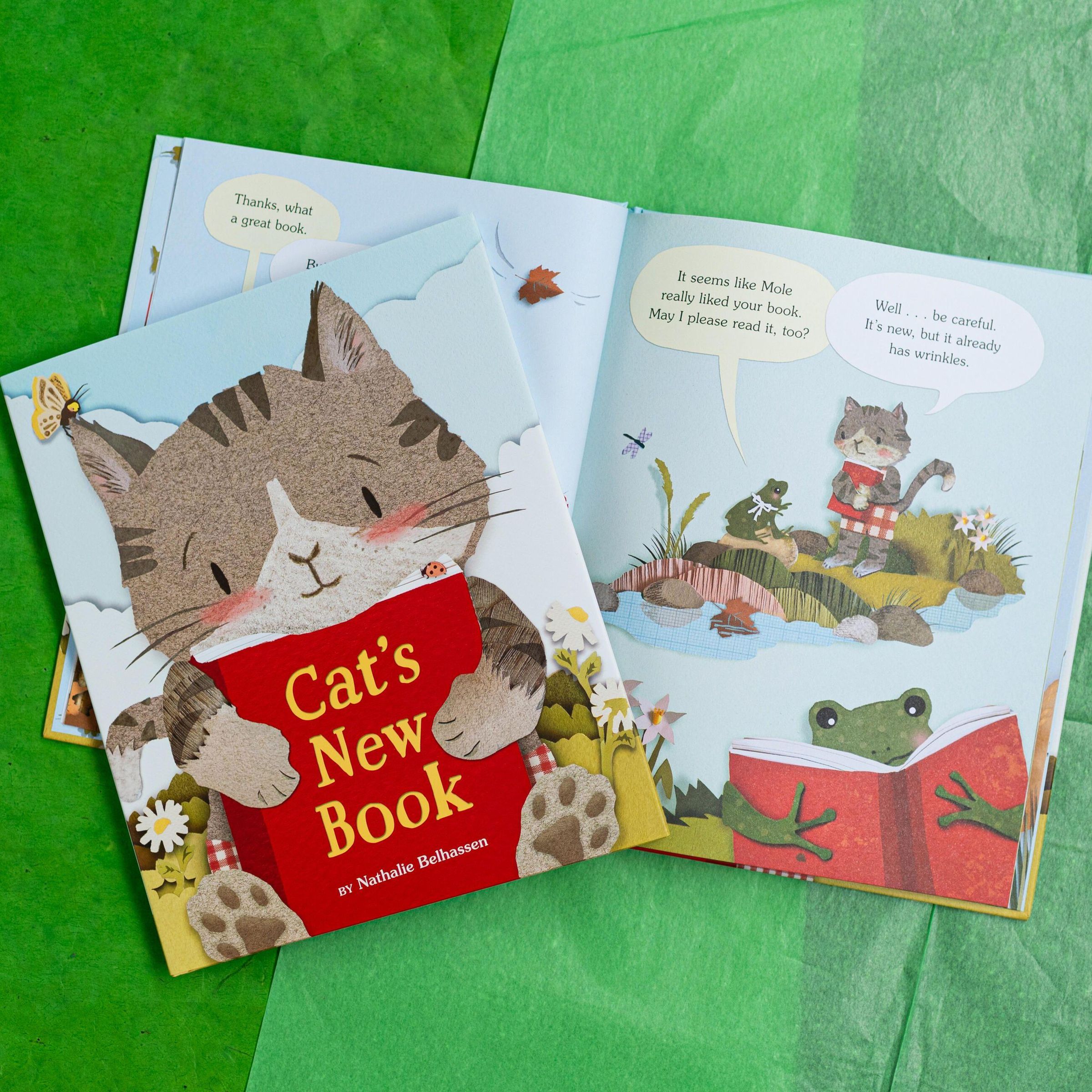Cat's brand new book has the cleanest cover and the smoothest pages. It even smells good! He can read it whenever he wants to because it's all his, and he plans to keep it looking new forever. But then Mole asks to read it. And then Frog. And then Turtle. After so much sharing, Cat's perfect new book is sandy and stained and...not so new anymore. This makes Cat sad. Will a new perspective from Squirrel be enough to teach Cat about what really make a book special?