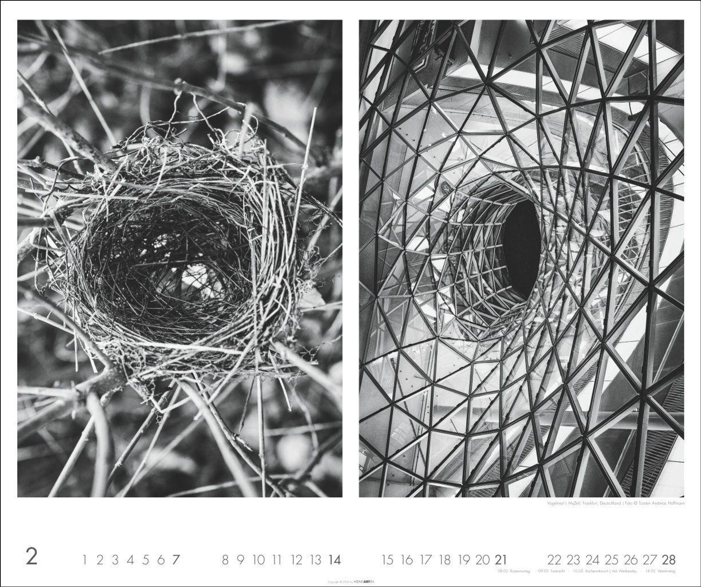 Ein Fotokalender zum Staunen: Im direkten Vergleich wird deutlich, an welchen natürlichen Formen Architekten für ihre Bauten Maß genommen haben