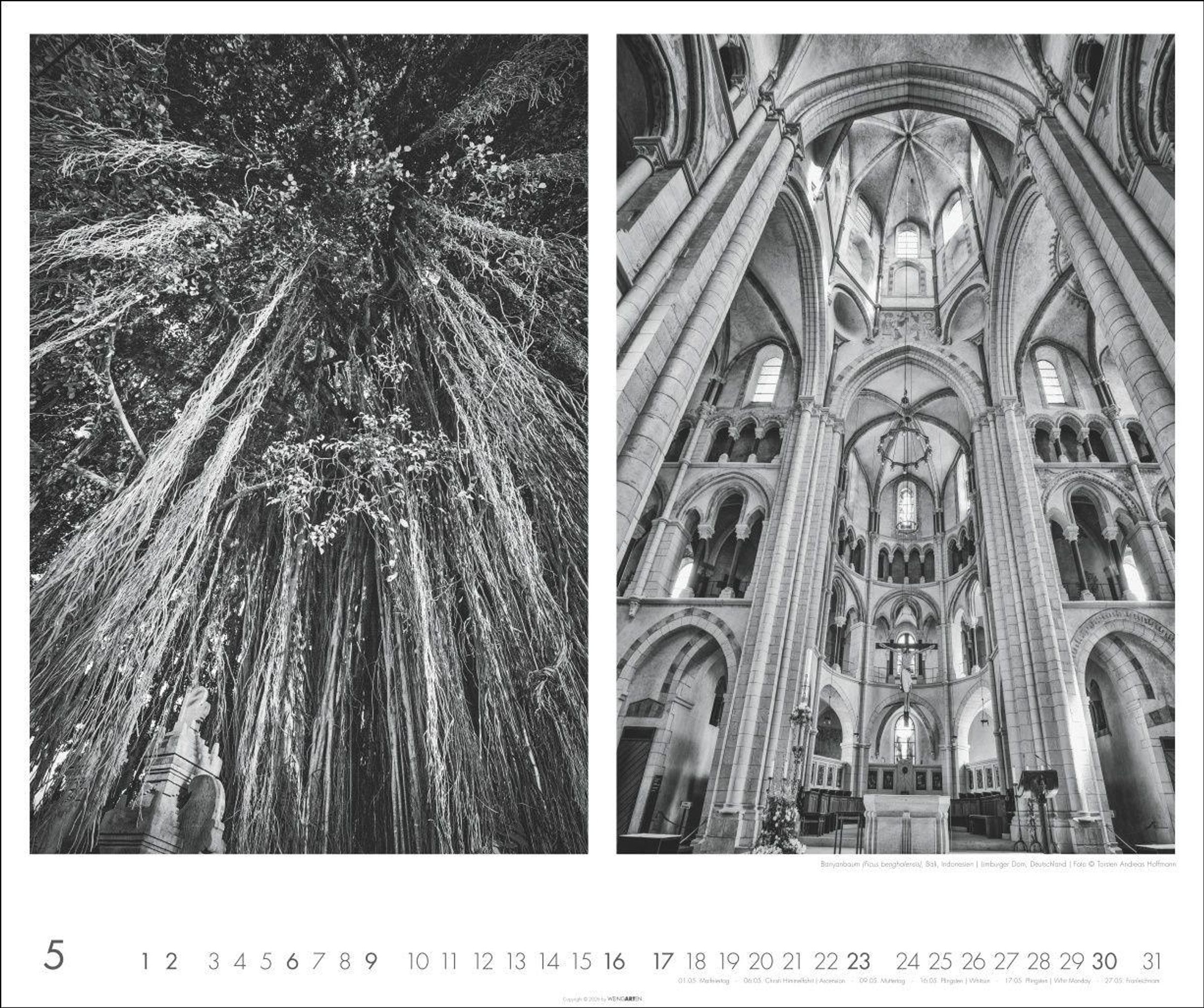 - Architektonische Inspiration aus der Natur: beeindruckende Gegenüberstellungen in Schwarz-Weiß. Großer Wandkalender im Format 55 x 46 cm