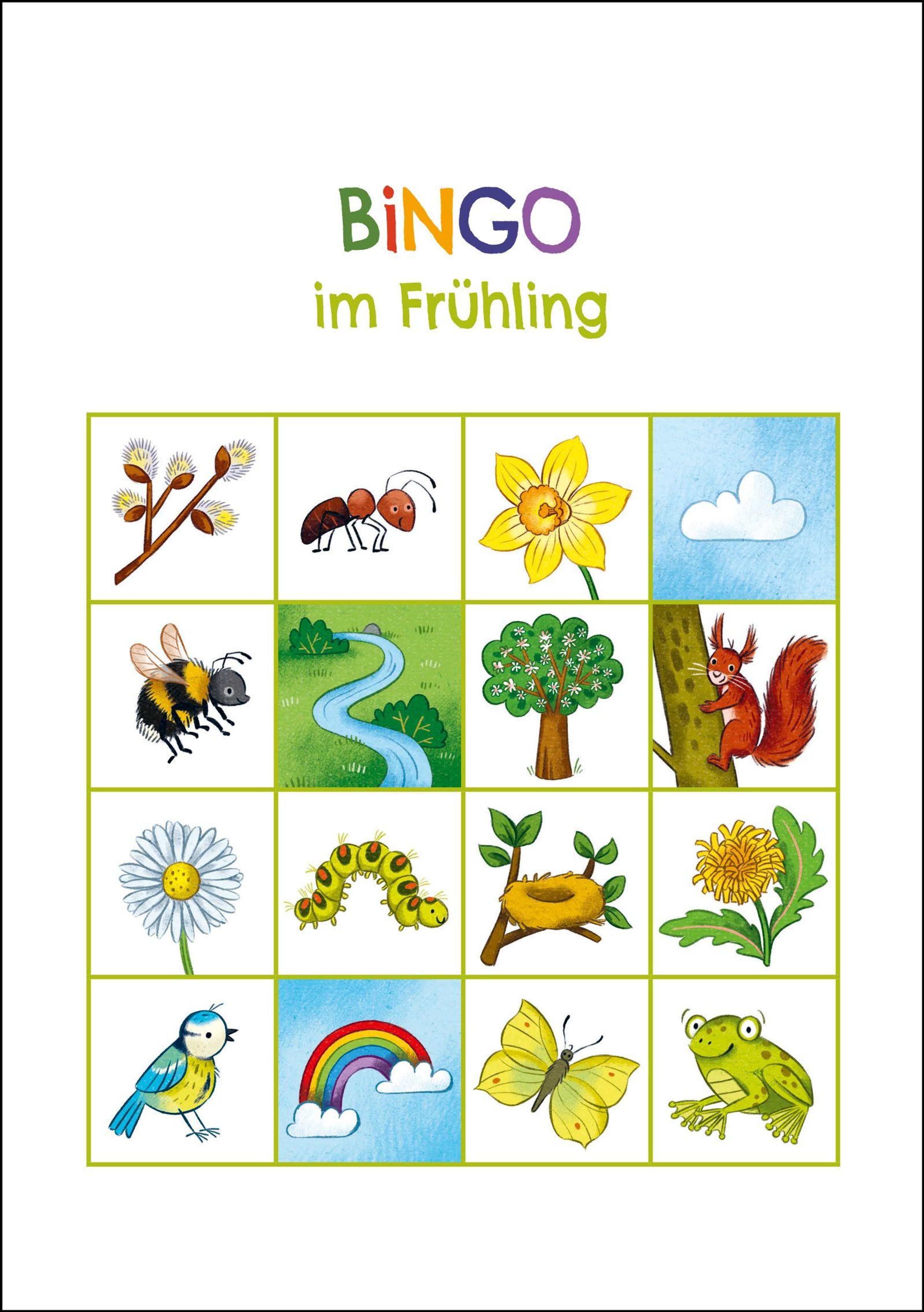 Egal ob im Frühling, im Sommer, im Herbst oder im Winter: Dieser kunterbunte Block mit Natur-Bingos und weiteren Suchspielen für Kinder ab 5 Jahren macht jeden Spaziergang oder Ausflug zu einem Abenteuer! Sieben unterschiedliche Bingo-Kategorien bieten Spaß zu jeder Jahreszeit und werden durch lustige Suchaufgaben nach Farben, Formen und Zahlen abgerundet. Für keines der Spiele muss man lesen können und alle sind allein oder in der Gruppe spielbar.