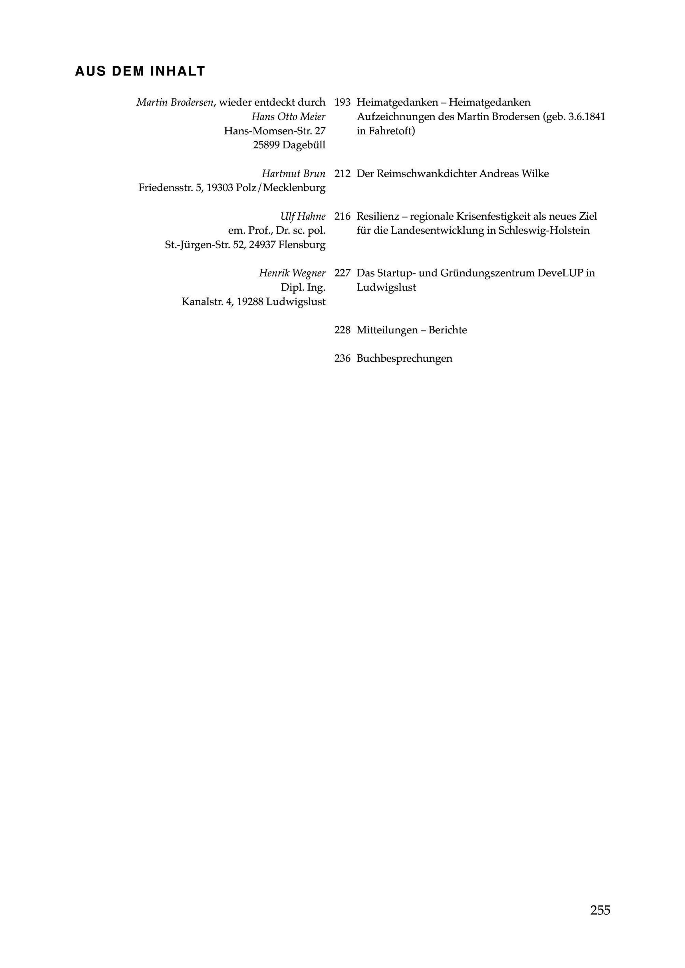 Das Jahrbuch enthält ausschließlich Erstveröffentlichungen und leistet einen wichtigen Beitrag zur Landeskunde und Landesgeschichte von Schleswig-Holstein, Hamburg und Mecklenburg.