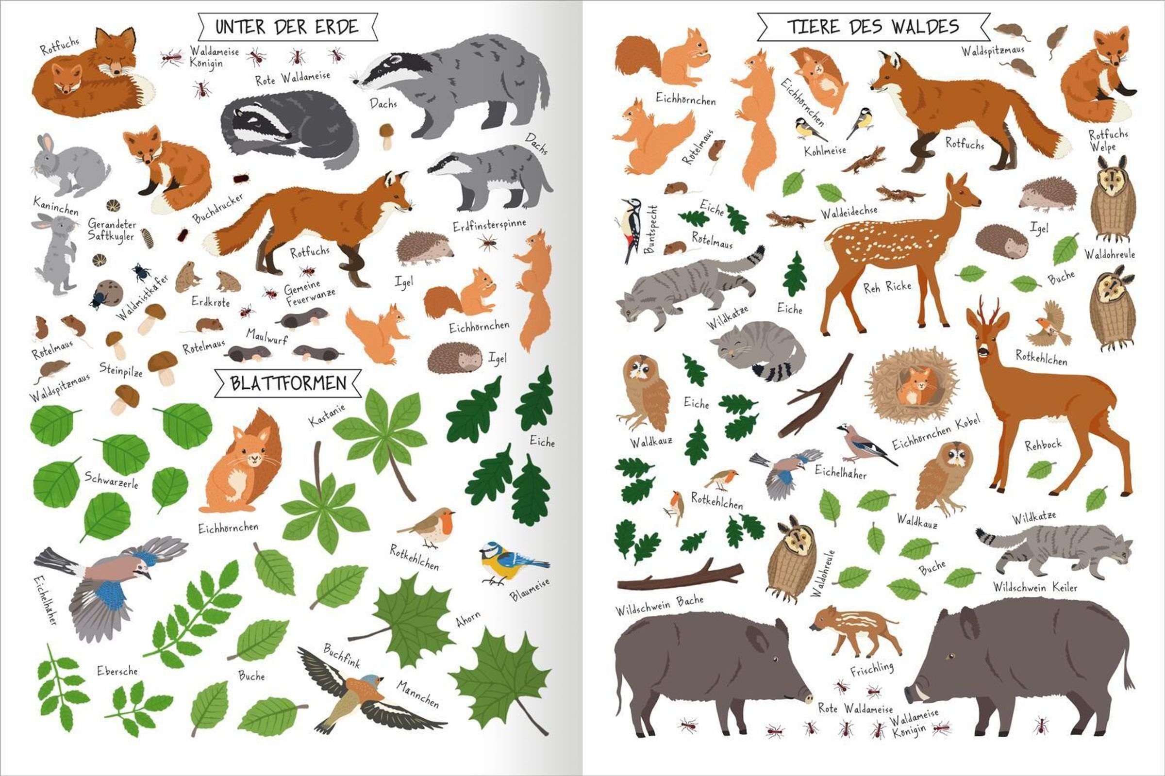 - Lerneffekt: Egal ob Reh, Fuchs, Eichelhäher oder Waldmistkäfer - hier ist für jeden was dabei. Jedes Tier ist auf dem Stickerbogen benannt - ein toller Lerneffekt!